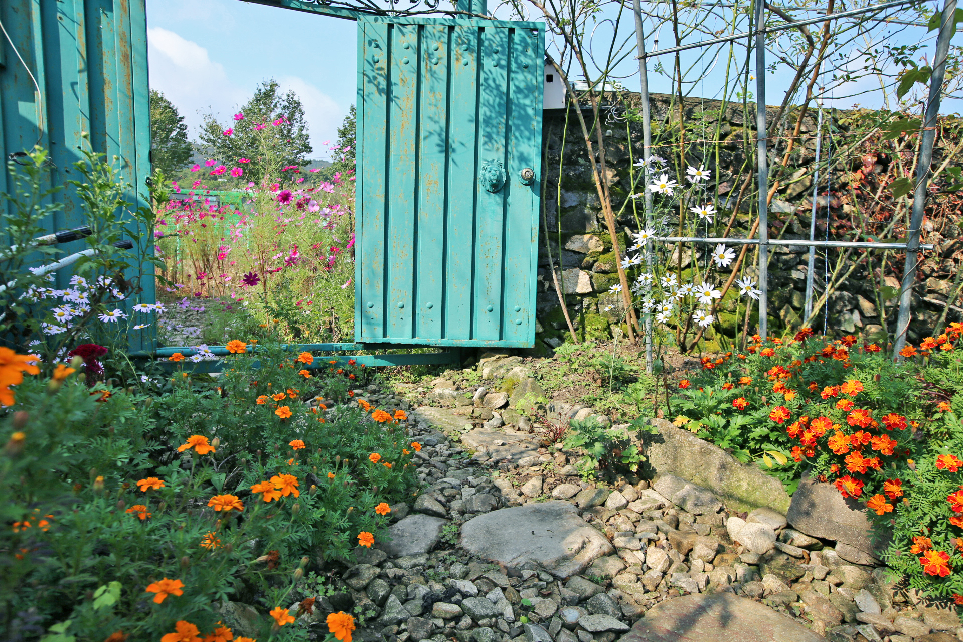 성북동집 꽃밭에서 주워낸 돌을 처분하는 방법으로 마이산 탑사처럼 돌탑을 쌓을까 하다가 통로에 돌을 깔았다. 배수 잘 되고 풀이 덜 나는 장점이 있지만 돌 틈에서 화초도 자란다. 여러 사람들이 통행하는 것이 아니라 어지간하면 화초는 뽑아내지 않고 그대로 둔다. 좀 불편하기도 하고 부주의해서 밟기도 하지만 피해서 다니는 재미가 있다.