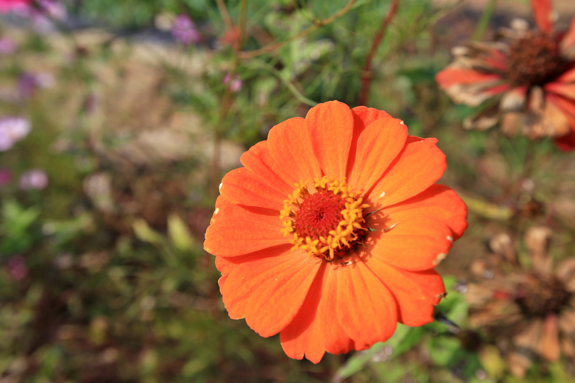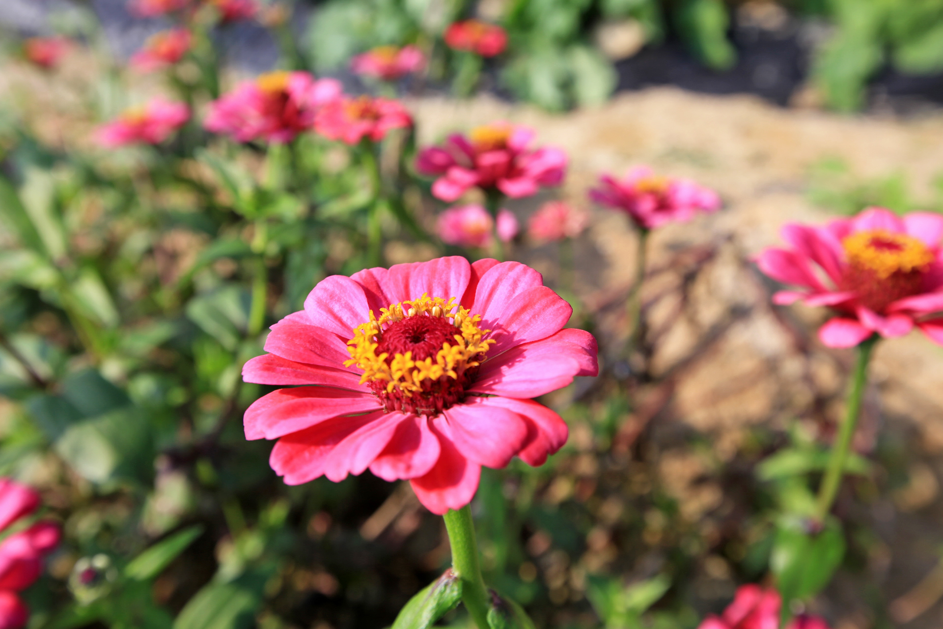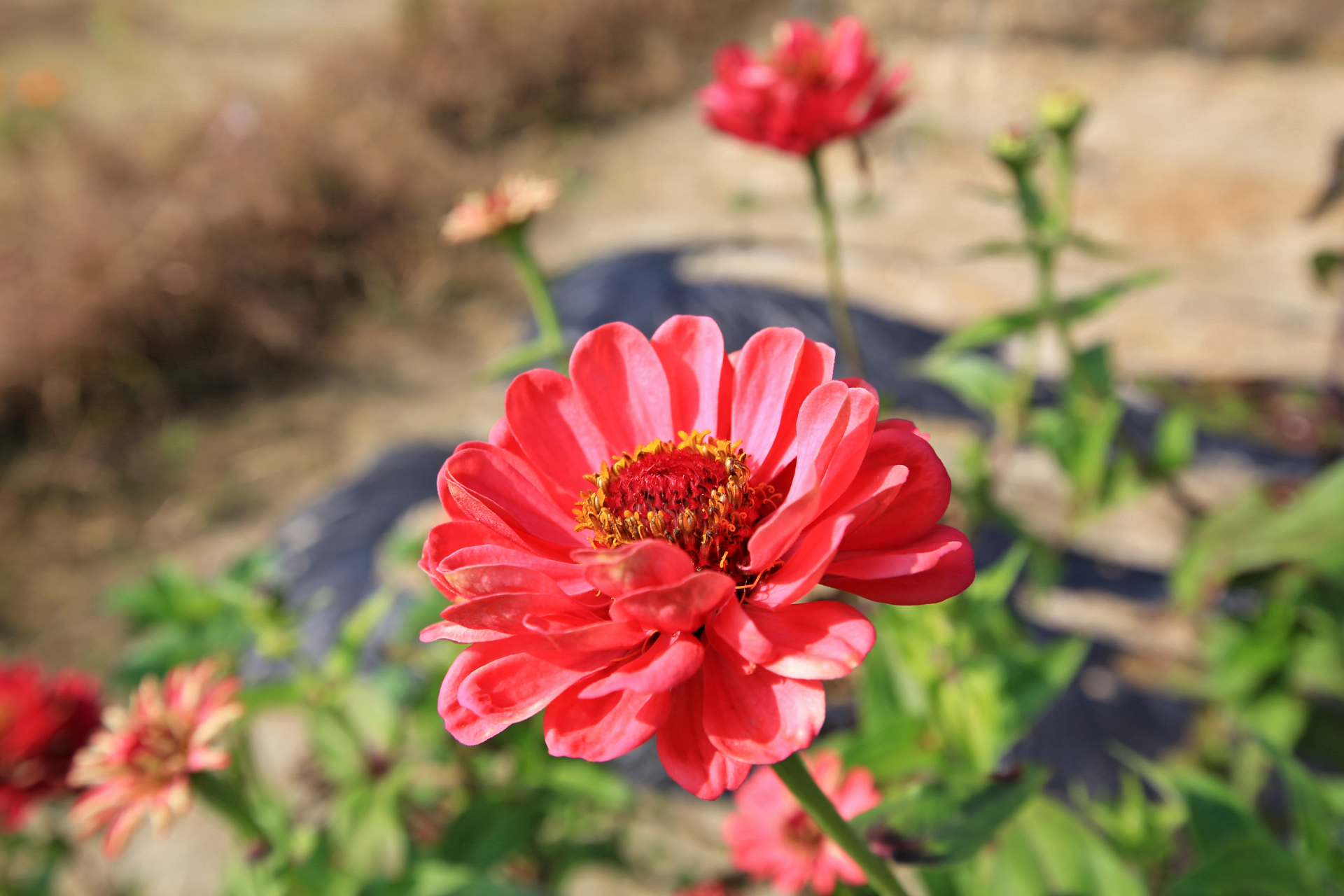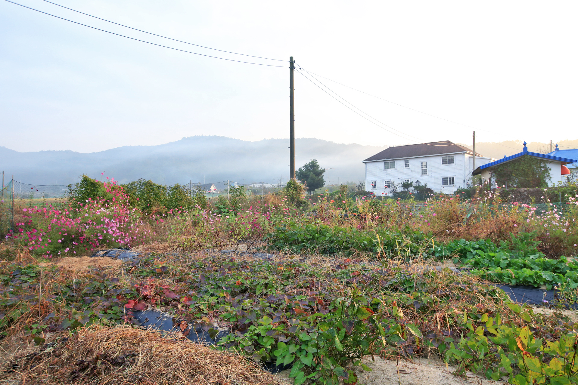 앞밭 주변에 꽃씨를 뿌려서 이른 봄에는 샤스타데이지와 꽃양귀비와 수례국화와 금계국이 만발하였고, 여름 이후로는 백일홍과 코스모스가 만발하였다. 아내가 병원치료를 받느라 여름부터는 제대로 가꾸지도 못하였는데 울안 꽃밭보다 앞밭 주변이 더 풍성하게 꽃이 피었다. 특히 앞밭에 자급할 농작물을 모두 심는 대신에 한 이랑에 백일홍 씨앗을 파종한 것은 아내의 말대로 신의 한 수였다.