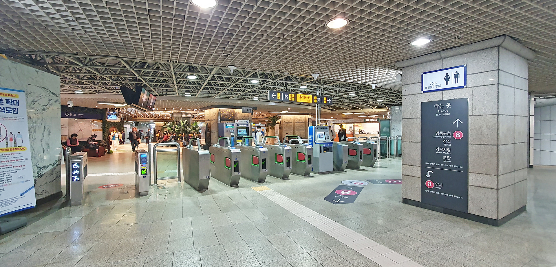 8호선과 5호선의 환승역으로 대합실의 상당부분을 공유하고 있다.