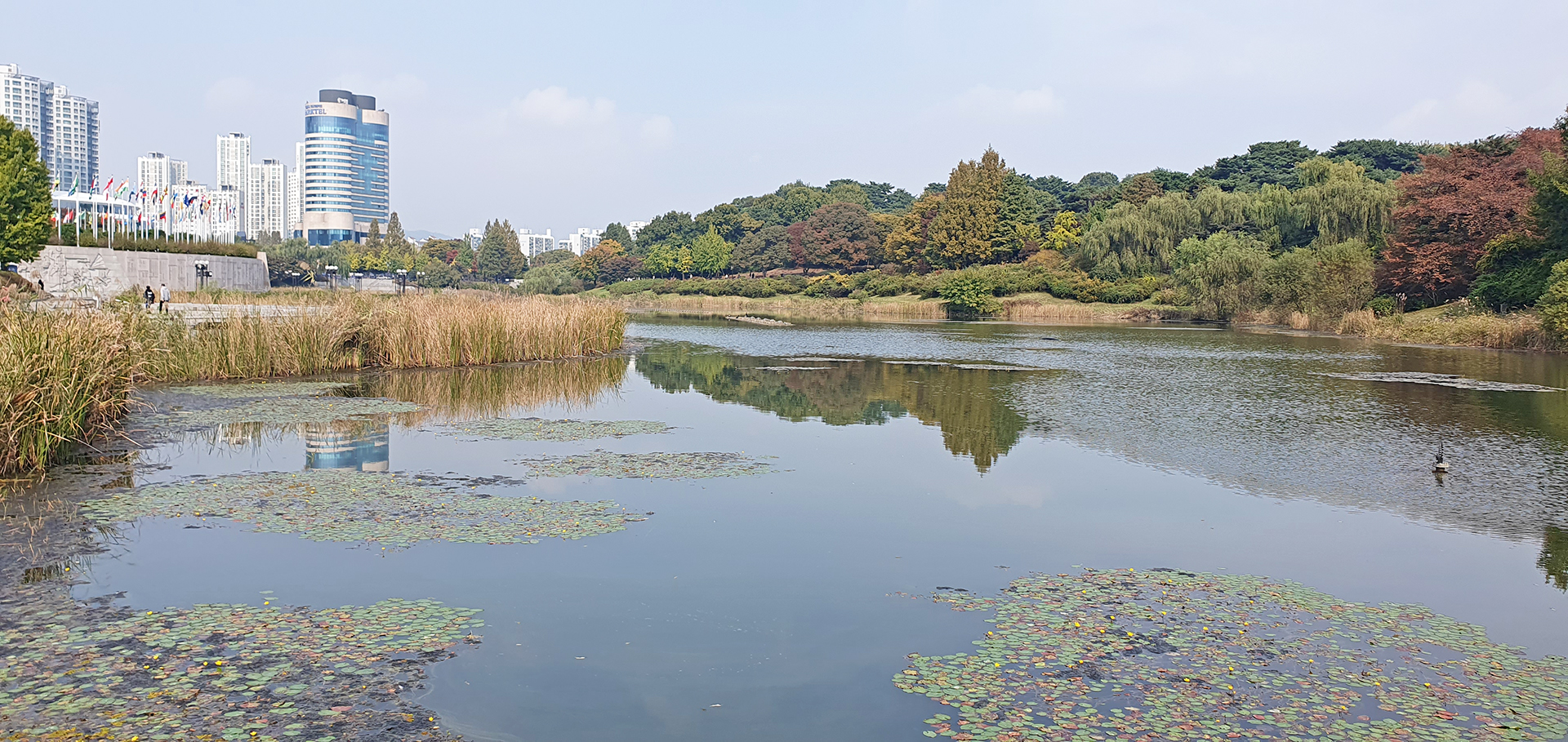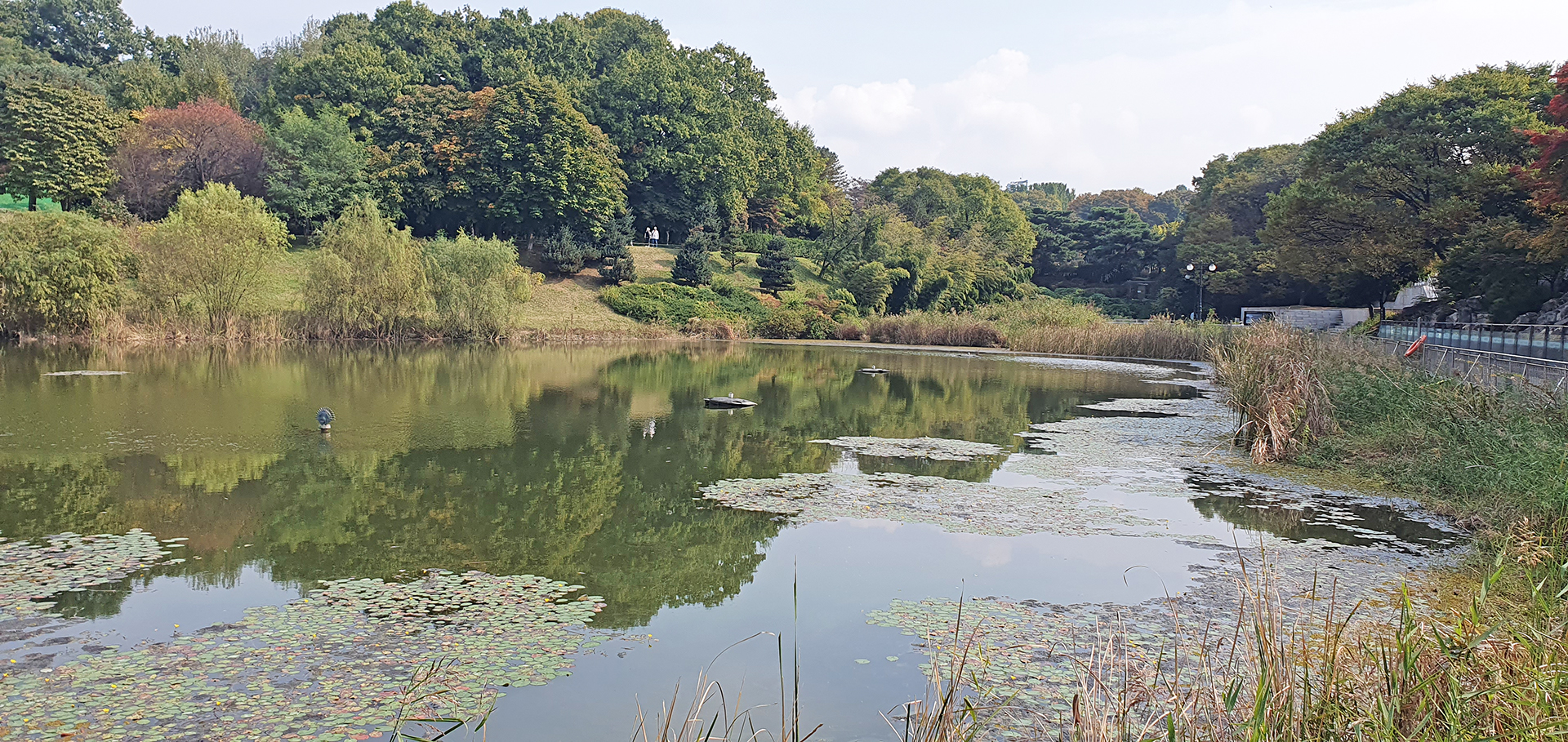 점심시간을 이용해서 올림픽공원을 다녀왔다. 호수에서 멀리 떨어진 나무들은 단풍이 든 상태이지만 몽촌호 주변은 단풍이 들기 시작하였다.