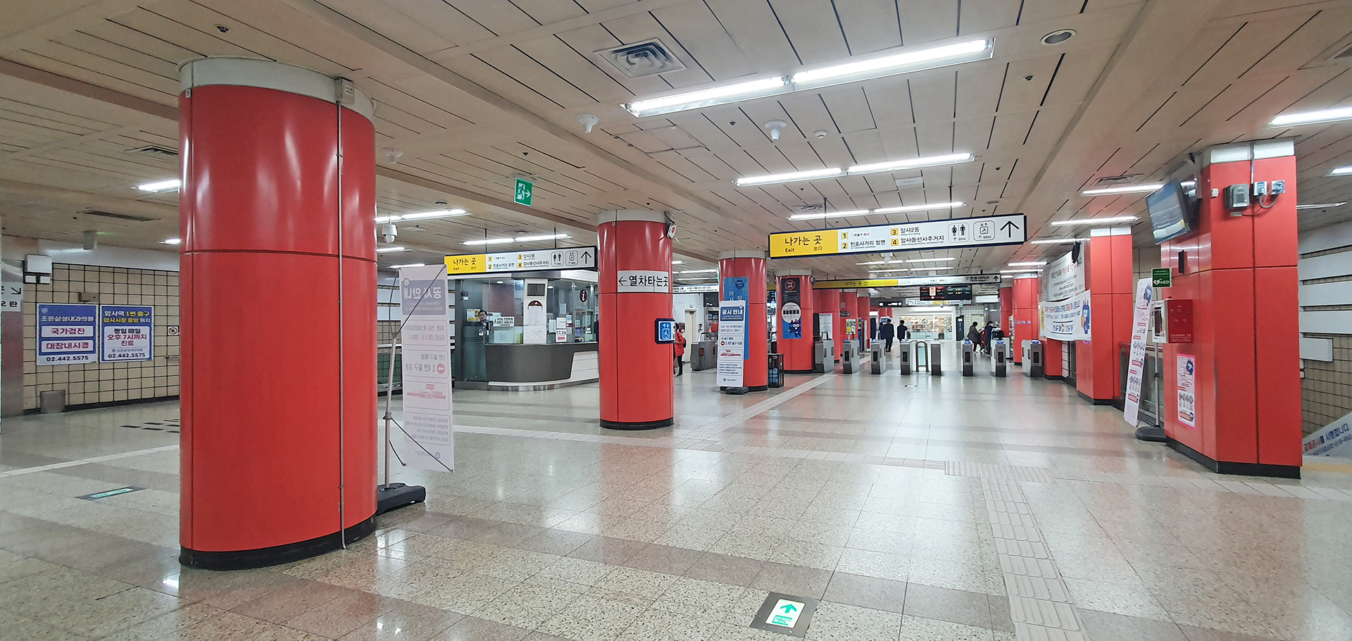 환승 부분은 원형으로 여러 개의 계단이 있다. 안내 표지판을 보고 가면 문제가 없겠지만 혼란스럽다.