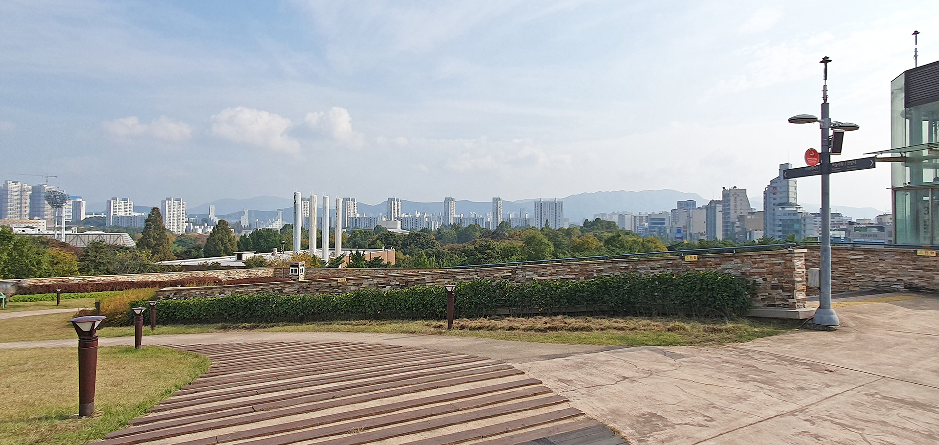 한성백재박물관의 신축공사 중에 실시하는 안전점검에 참여하였었다. 골조공사가 진행 중일 때 몇 번 방문하였기에 친근감이 느껴진다. 점심시간을 이용하여 가볍게 왔으니 옥상이나 둘러보기로 하였다.
