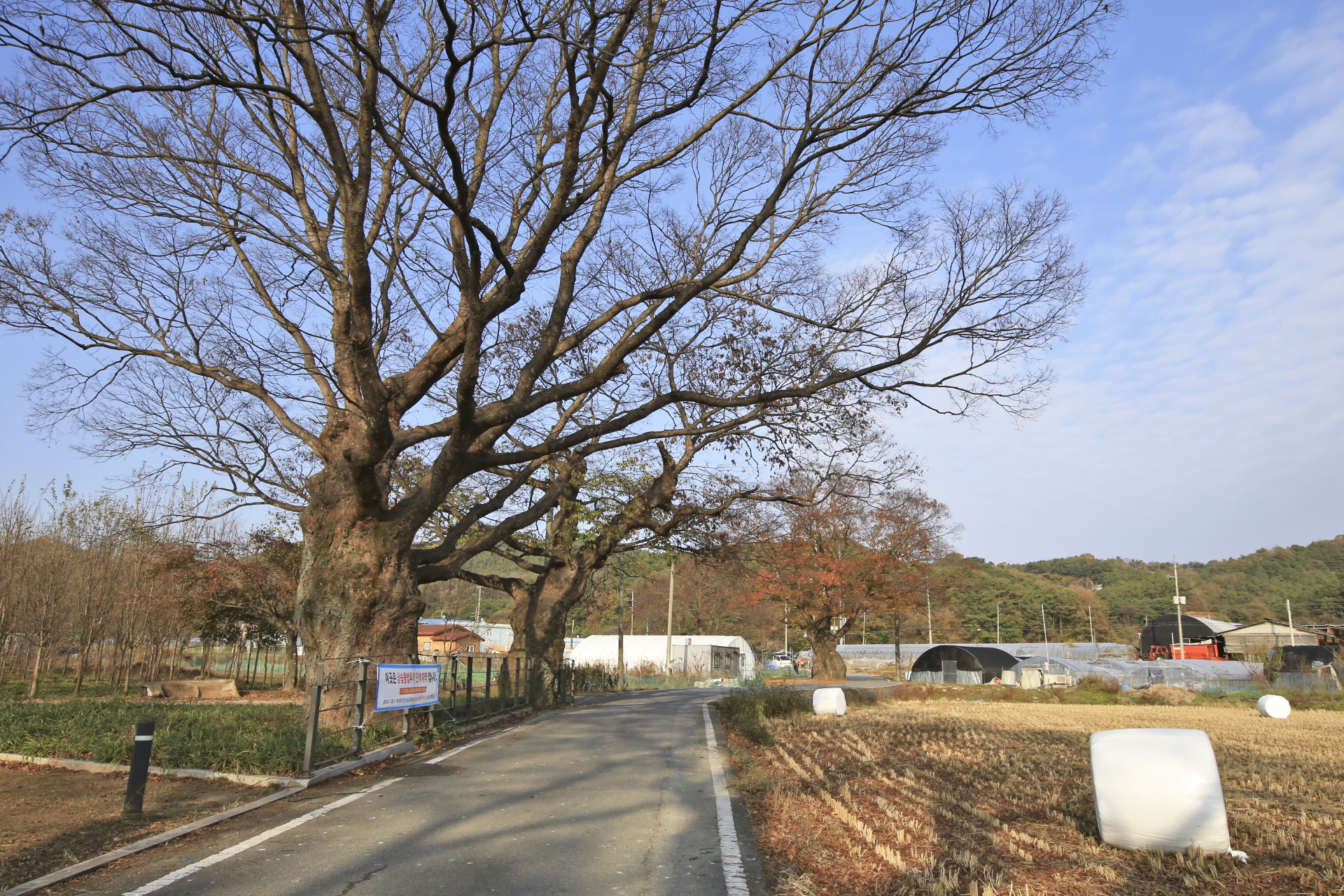 고향친구 강ㅇ덕과 전화통화하며 요즈음 무슨 일하는지 물어보니 오전에는 서리 때문에 일을 할 수 없고 오후에는 비닐하우스에서 일 한다고 한다. 그럼 오후에 비닐하우스로 찾아가겠다고 했었다. 집에서 겨울준비를 하다가 오후에 카메라 들고 웃둥구나무 부근에 있는 비닐하우스로 갔는데 인기척이 없다. 어쩐 일일까 전화해 보았더니 급한 일보러 시내에 갔단다. 이웃 밭에서 무를 뽑고 있는 김ㅇ택 형과 잠시 이야기하다가 온 길에 둥구나무거리를 둘러보게 되었다. 보름 전에 둘러 볼 때와는 달리 단풍은 한물지나갔고 낙엽이 많이 떨어졌다.