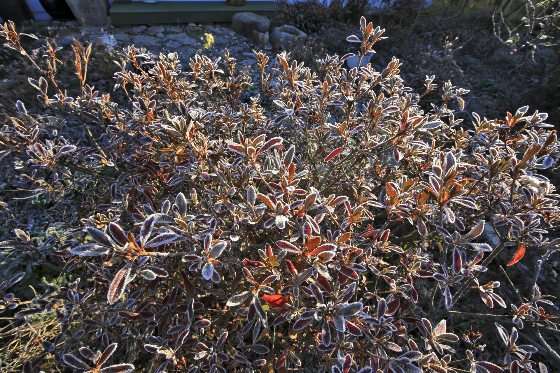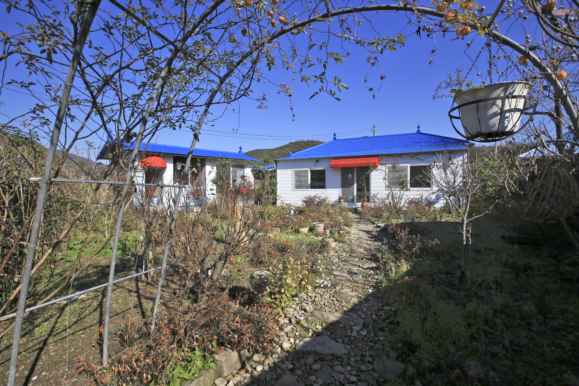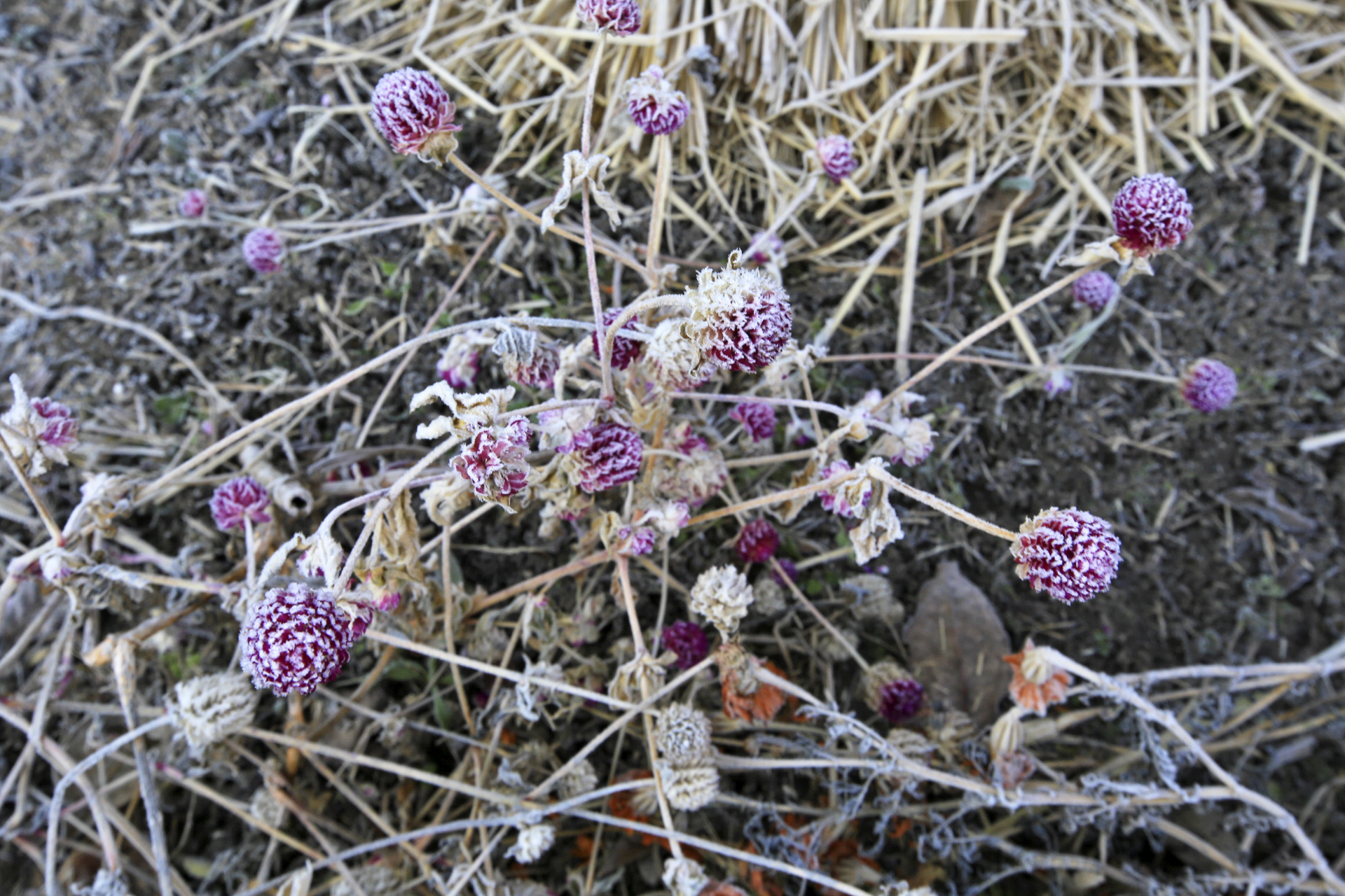 울안 꽃밭에는 시들어가는 국화와 마른 꽃 상태의 메리골드가 남아있다. 패랭이꽃이 몇 송이 남아있기는 하지만 눈에 띄지도 않는다. 얼었다가 녹기를 반복해서 물렁해진 꽃사과와 대부분은 떨어졌지만 명자나무 열매가 조금 남아 있다. 일년생 화초는 서리가 내린 후 사라져가고 있지만 다년생 화초와 겨울을 나야 꽃이 피는 화초가 초록색을 띄고 있다. 가장 눈에 띄는 것은 뭐니 뭐니 해도 남천의 빨간 열매와 단풍이 든 잎사귀이리라.