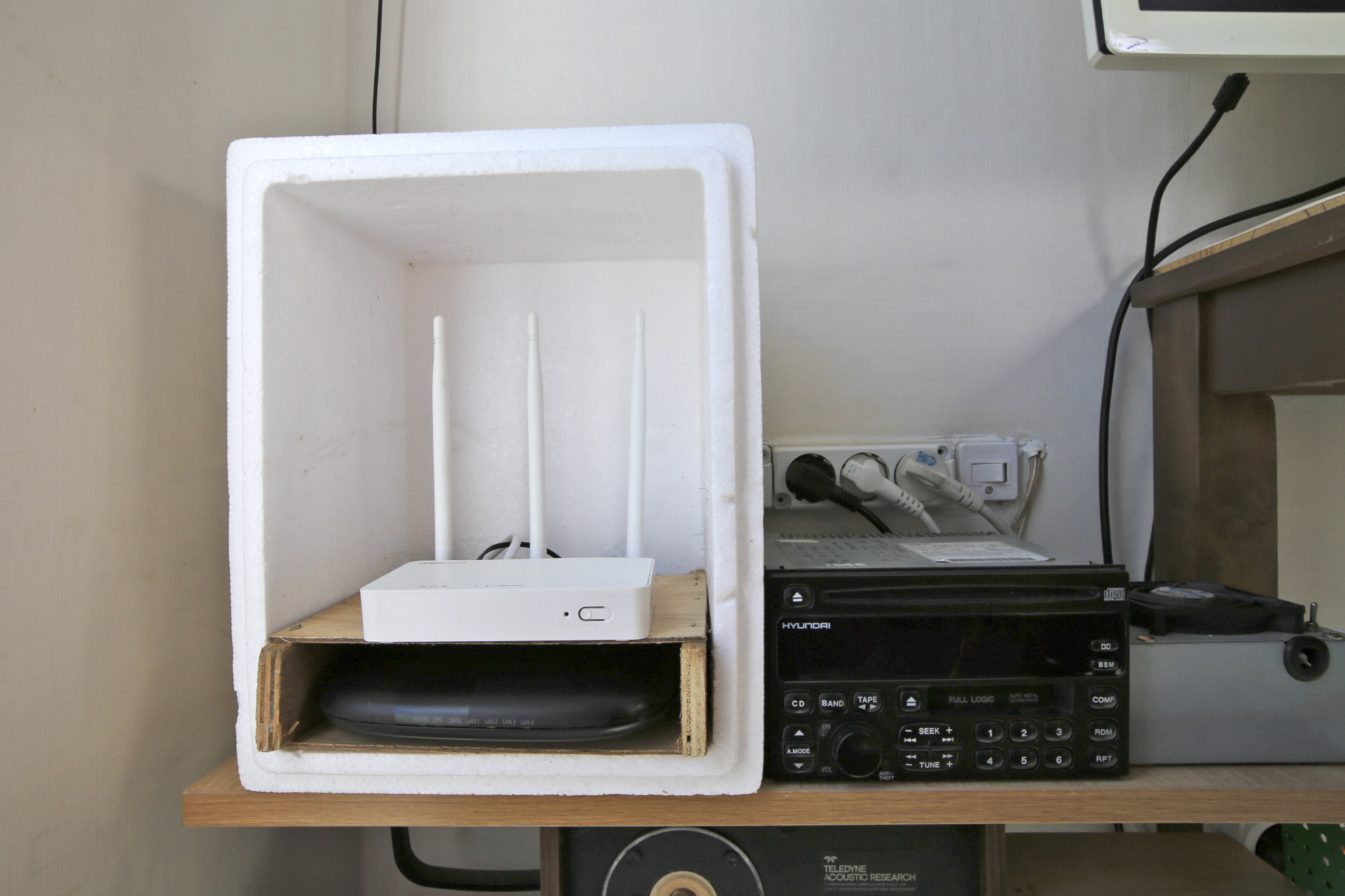 아래쪽에는 모뎀을 위쪽에는 무선공유기를 설치하고....