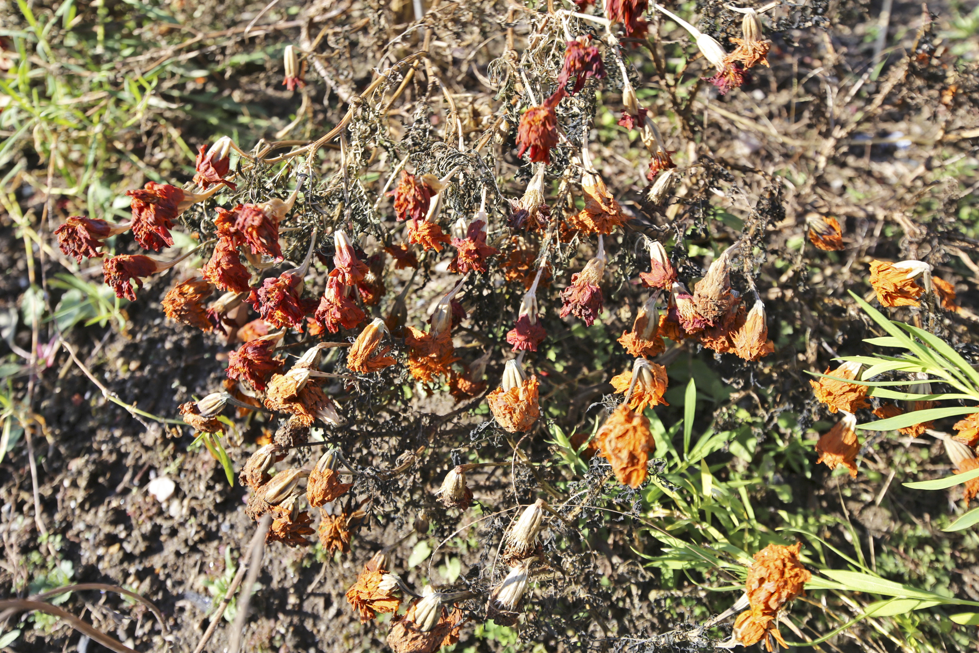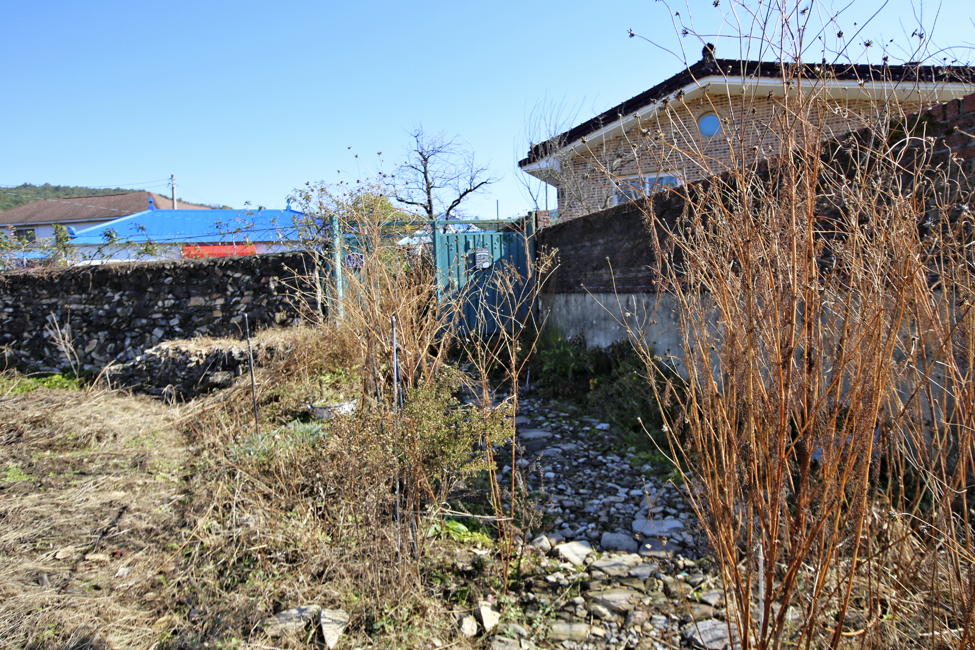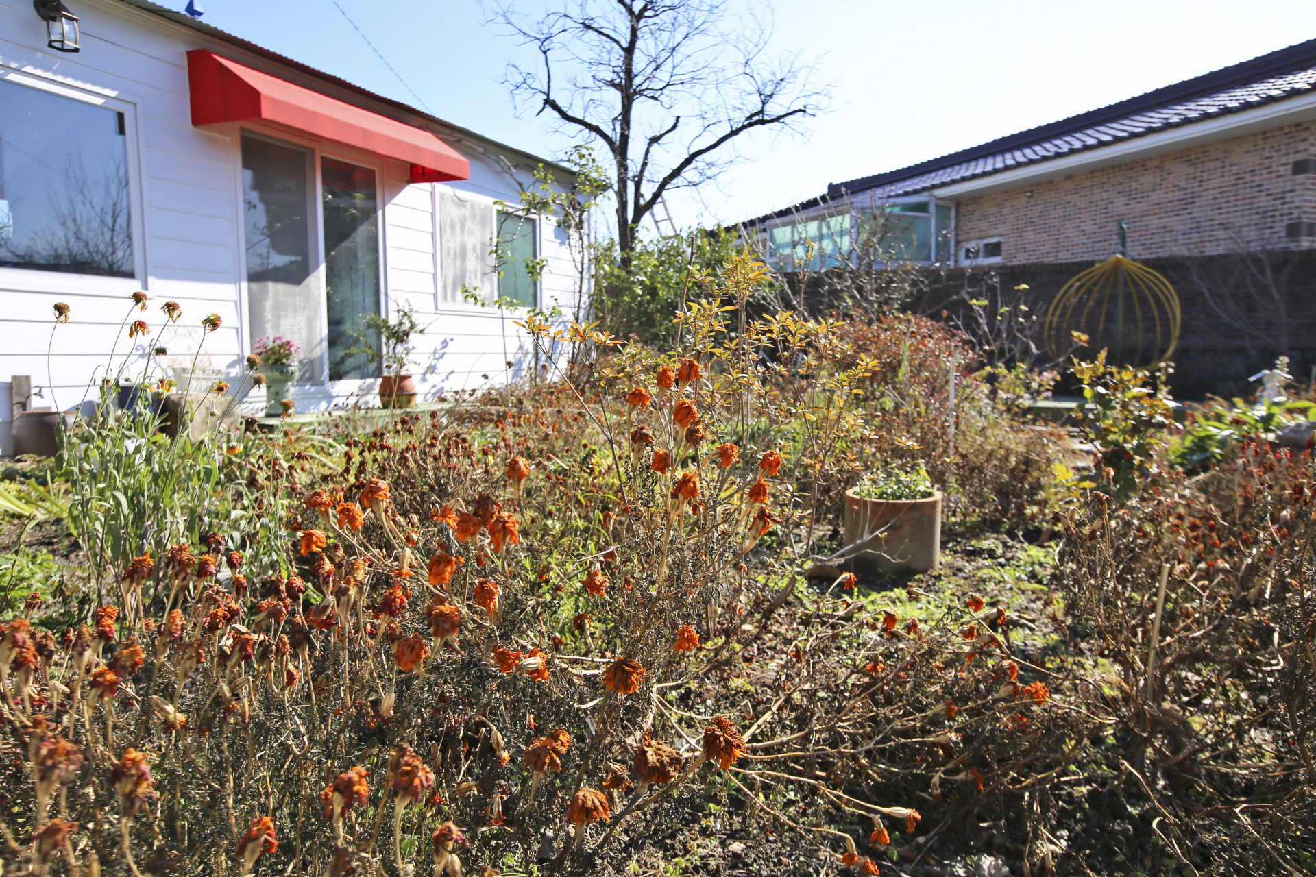 코스모스 등의 꽃이 진 마른 꽃대가 출입하는데 거치적거린다. 꽃이 있을 때에는 불편하더라도 조심스럽게 피해 다녔는데 이제는 시간 내서 제거해야 하겠다.