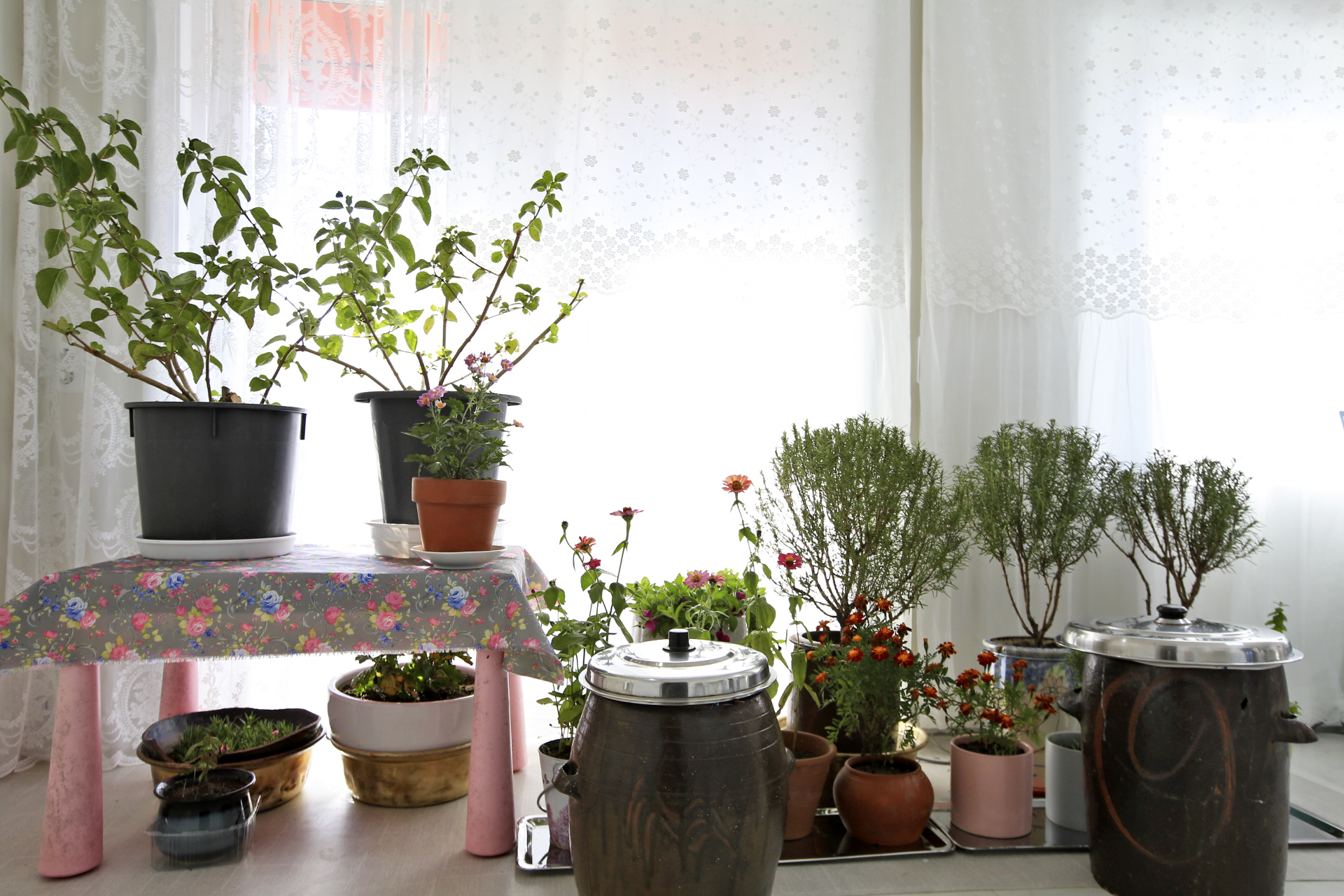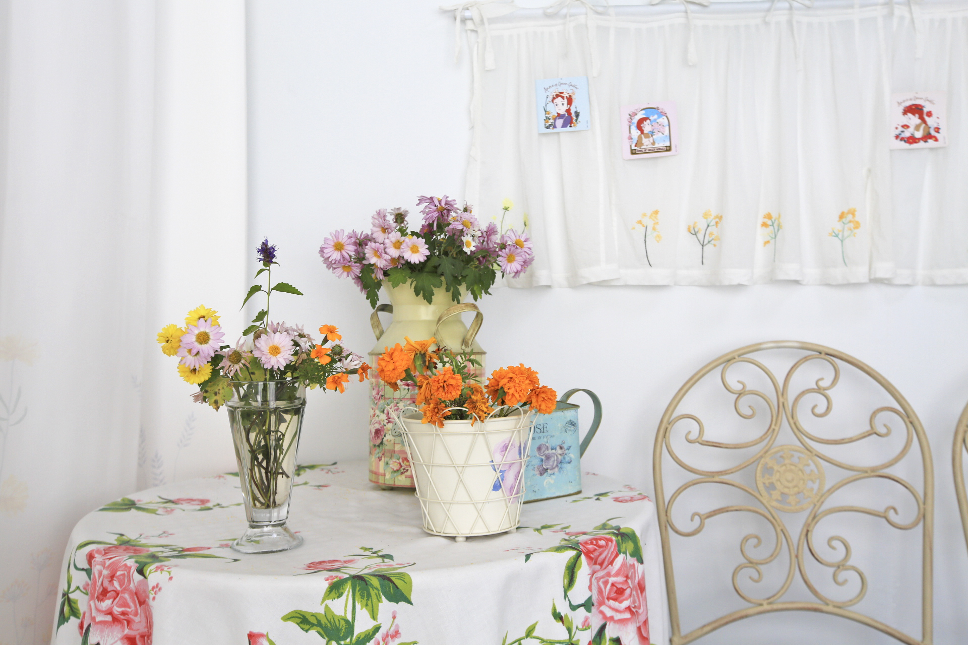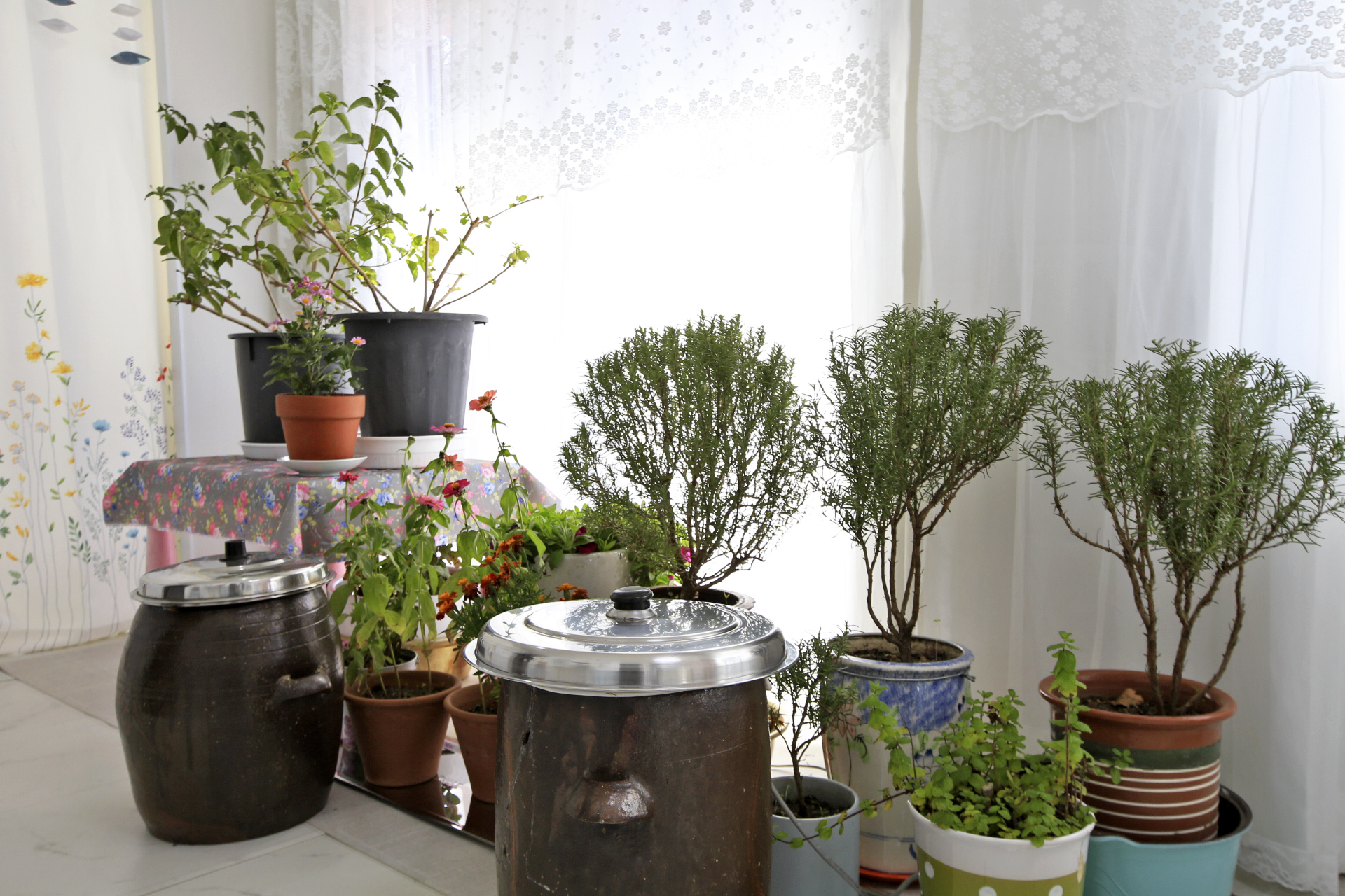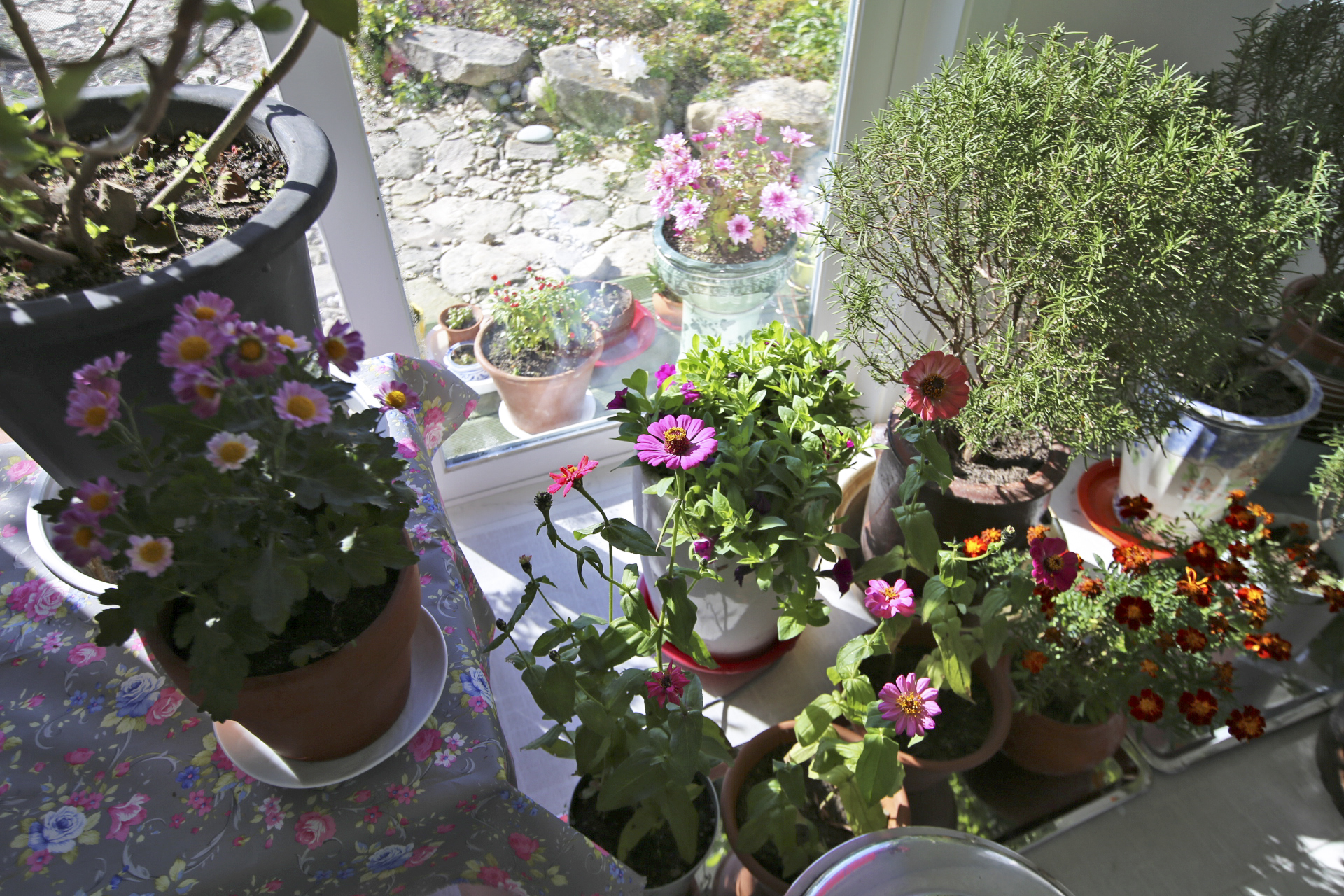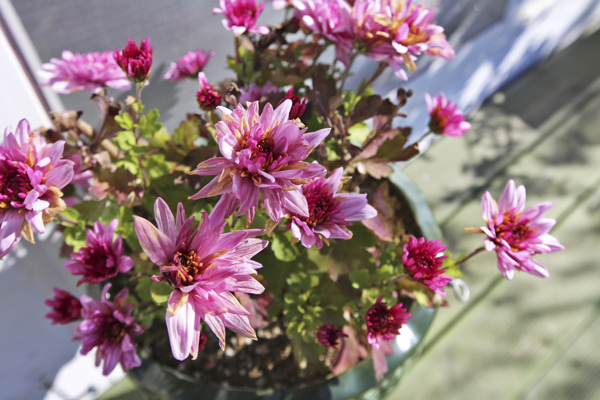 전실에 들여놓은 국화와 백일홍.....