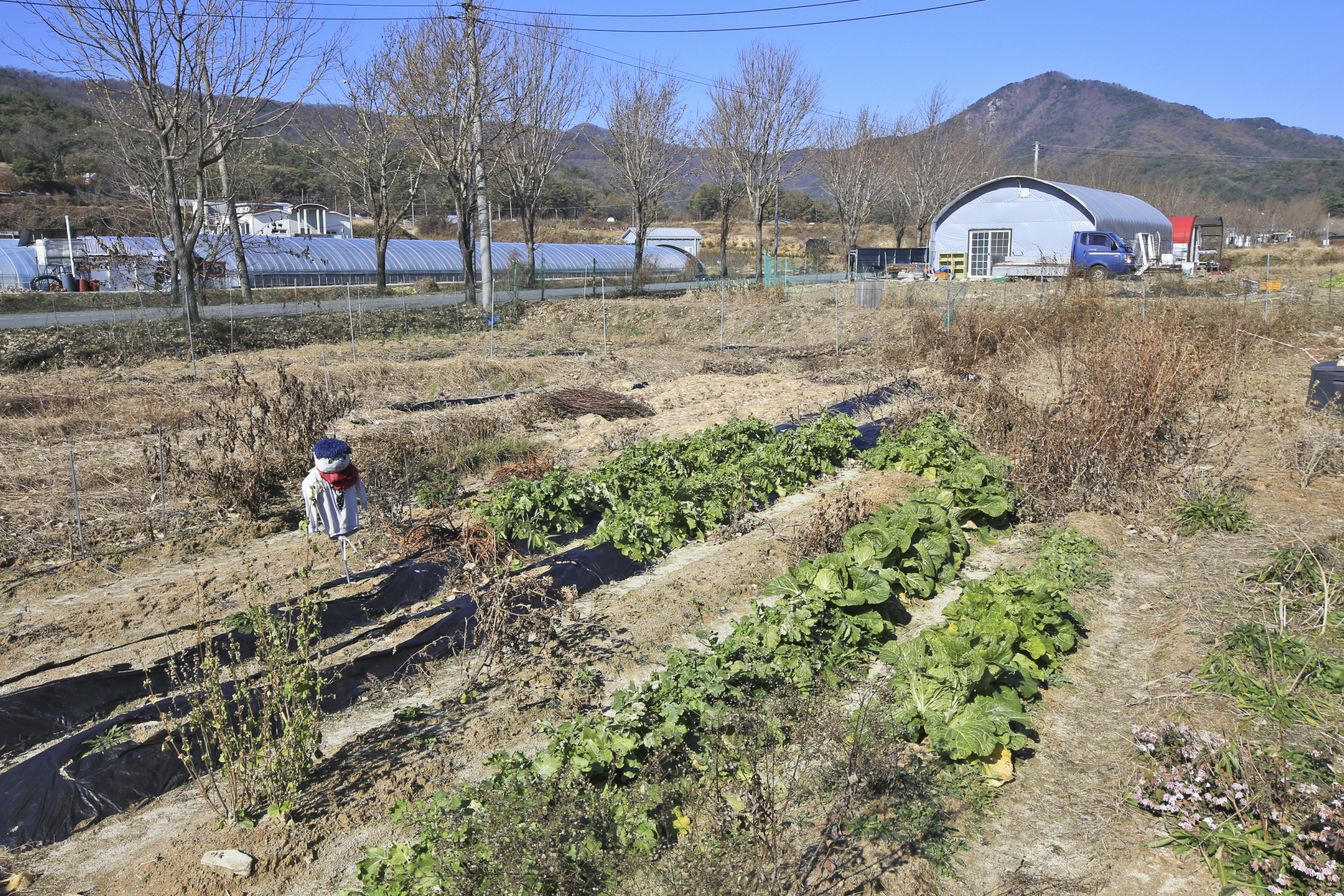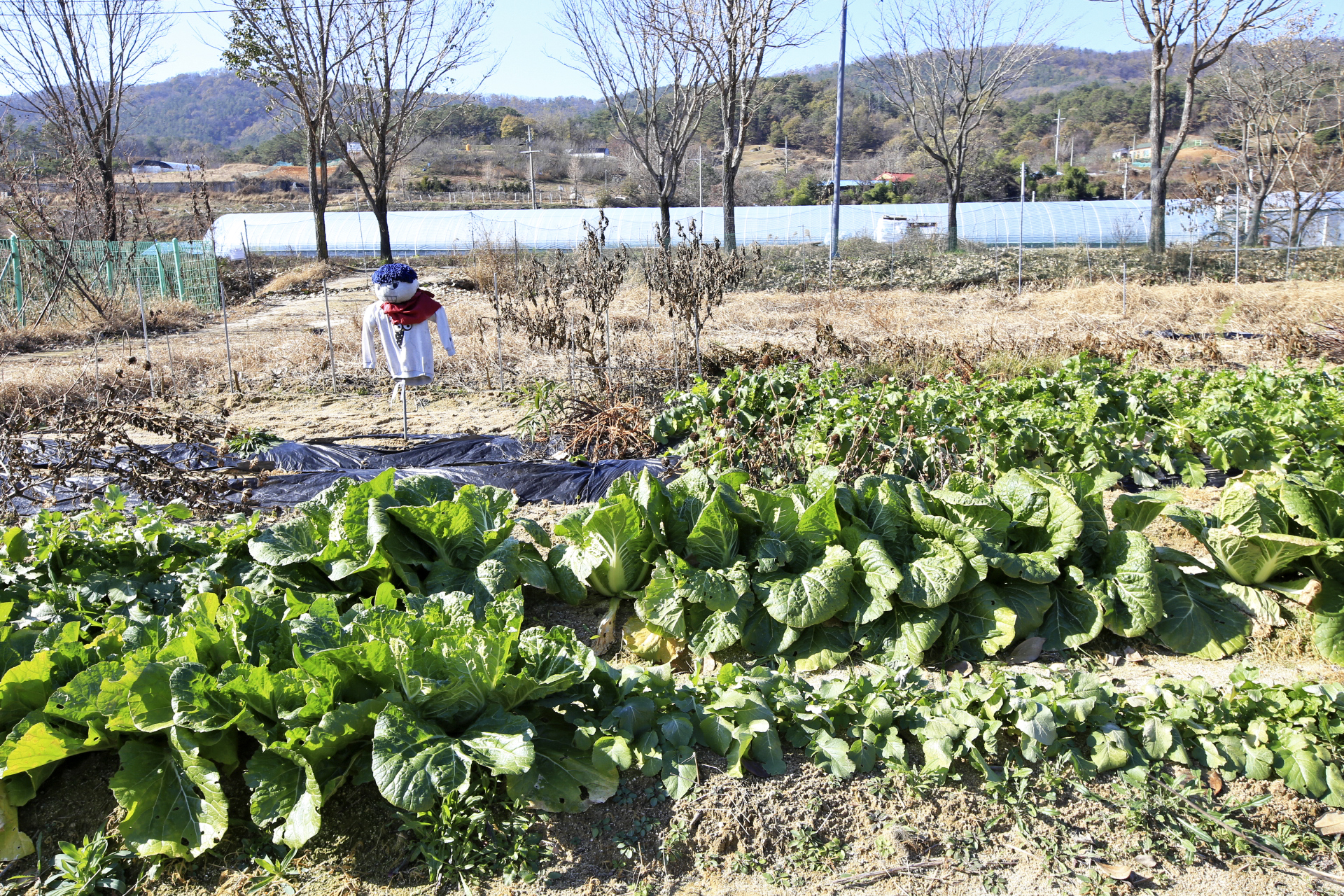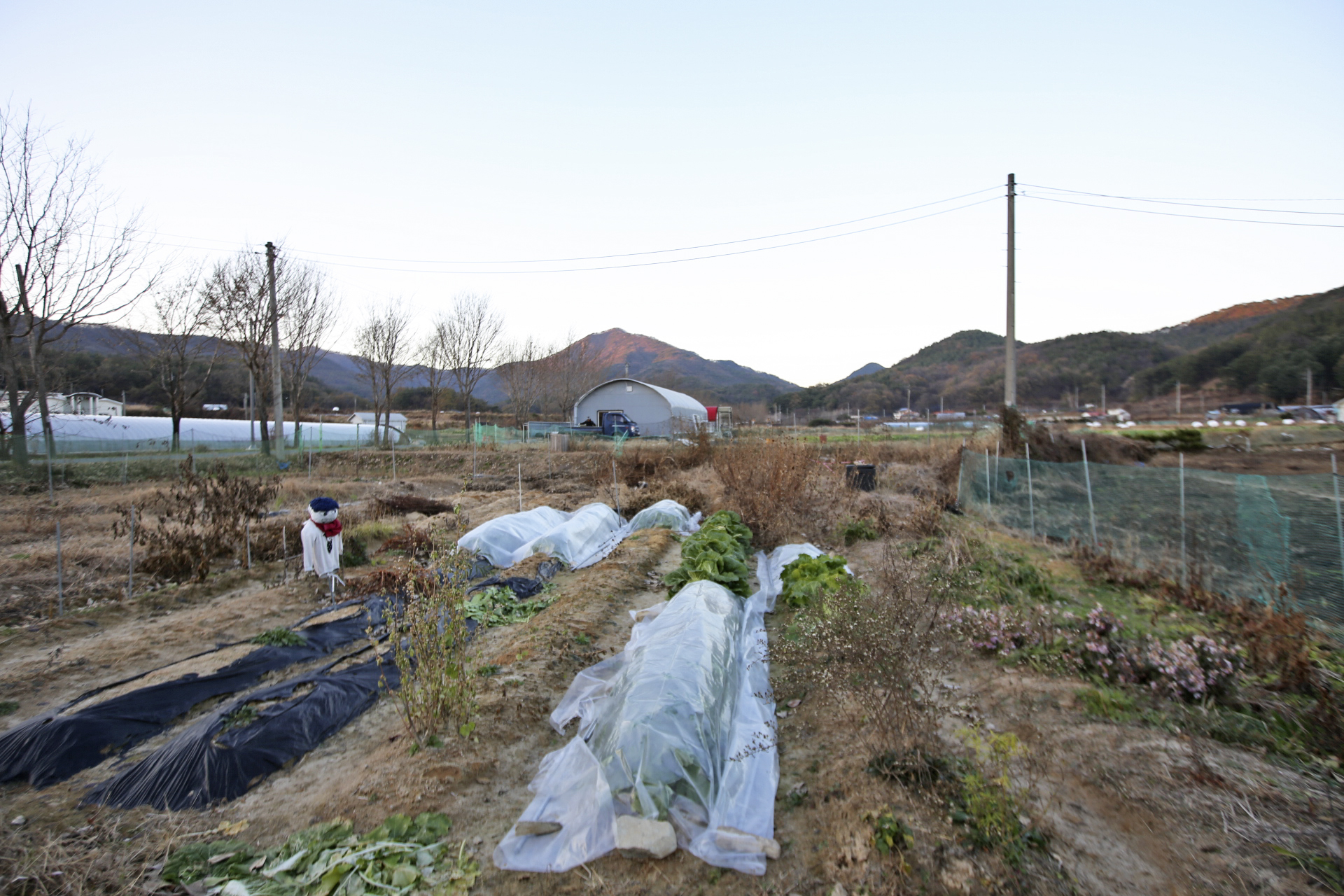 배추보다 추위에 약한 무를 비닐로 덮어 씌웠다. 배추는 날씨를 보아가면서 덮을 예정이다.