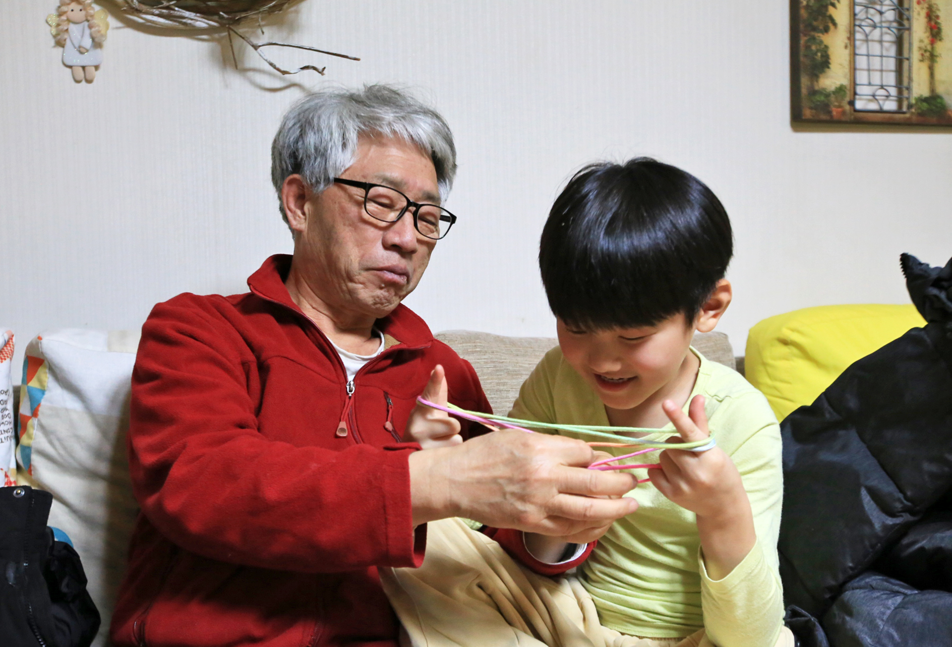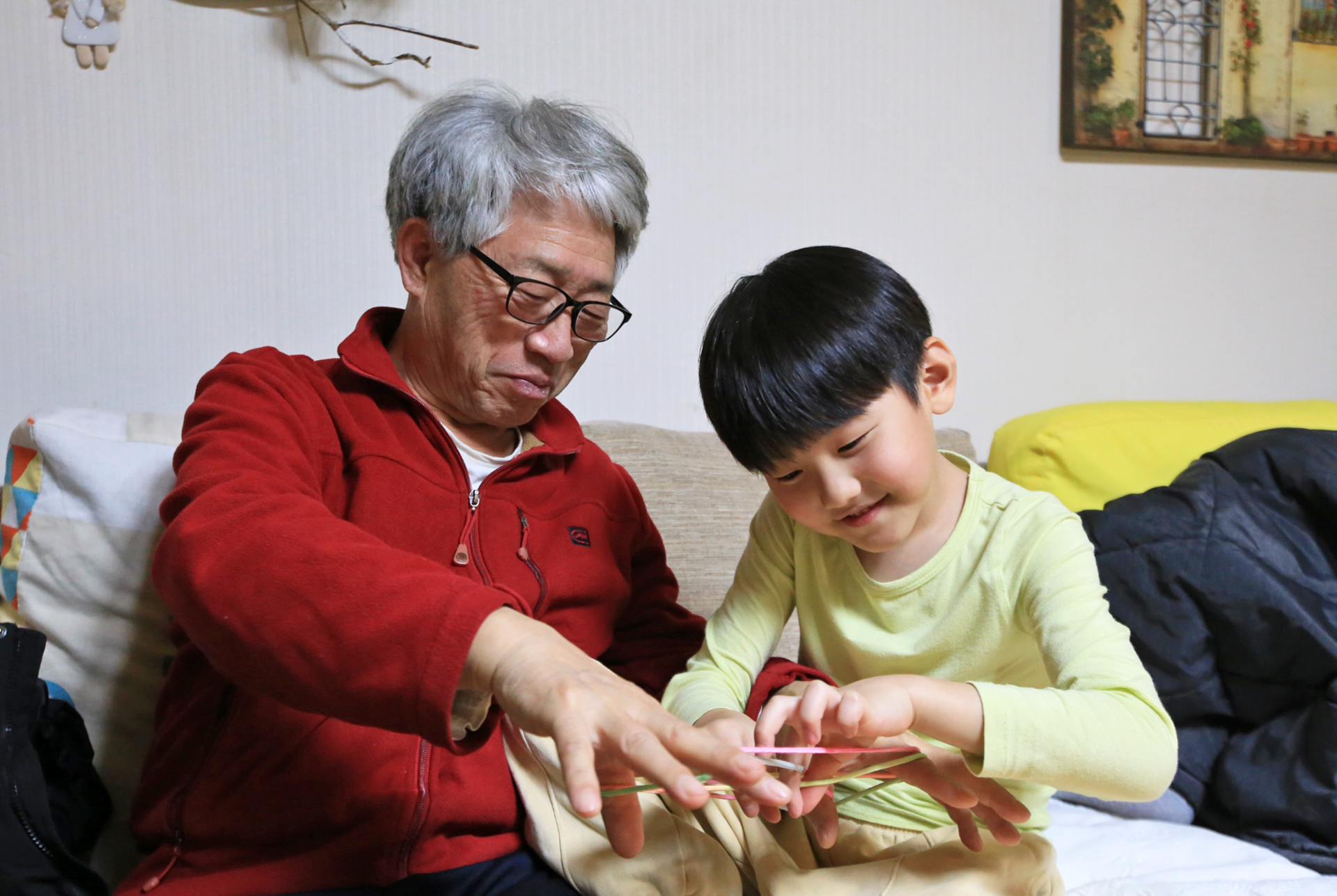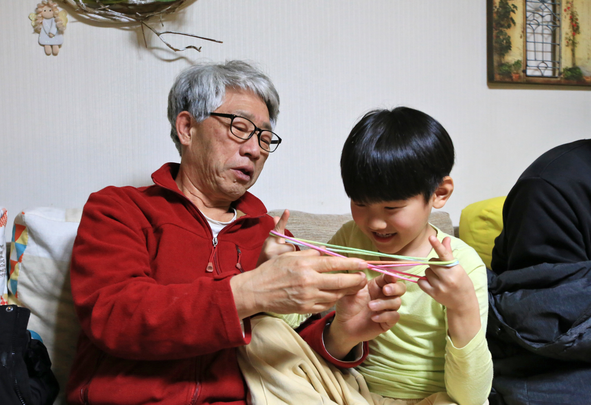 Jun이 길다란 끈을 가지고 왔는데 무었인지 짐작도 못하고 있는데 손에 감는 모양을 보고 실쓰기라는 것을 순간적으로 알아차렸다. 까맣게 잊고 있었는데 손자 덕분에 오랜만에 실뜨기를 해 본다. Jun이 나보도 한 수 위이다. 모르는 것은 손으로 교대한 다음에 Jun이 다음 단계로 넘어가기도 하였다.