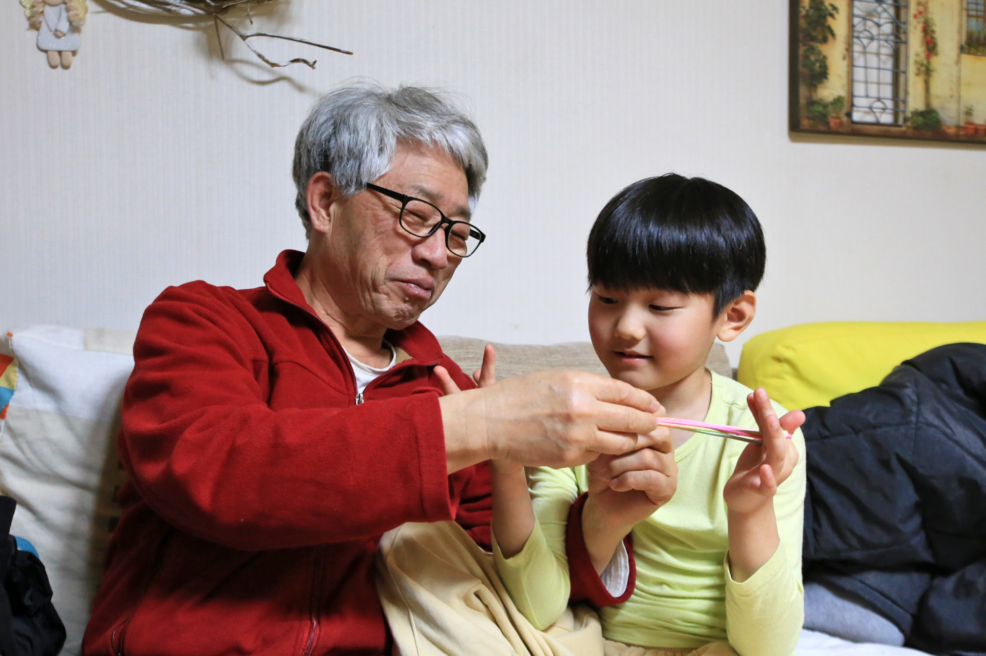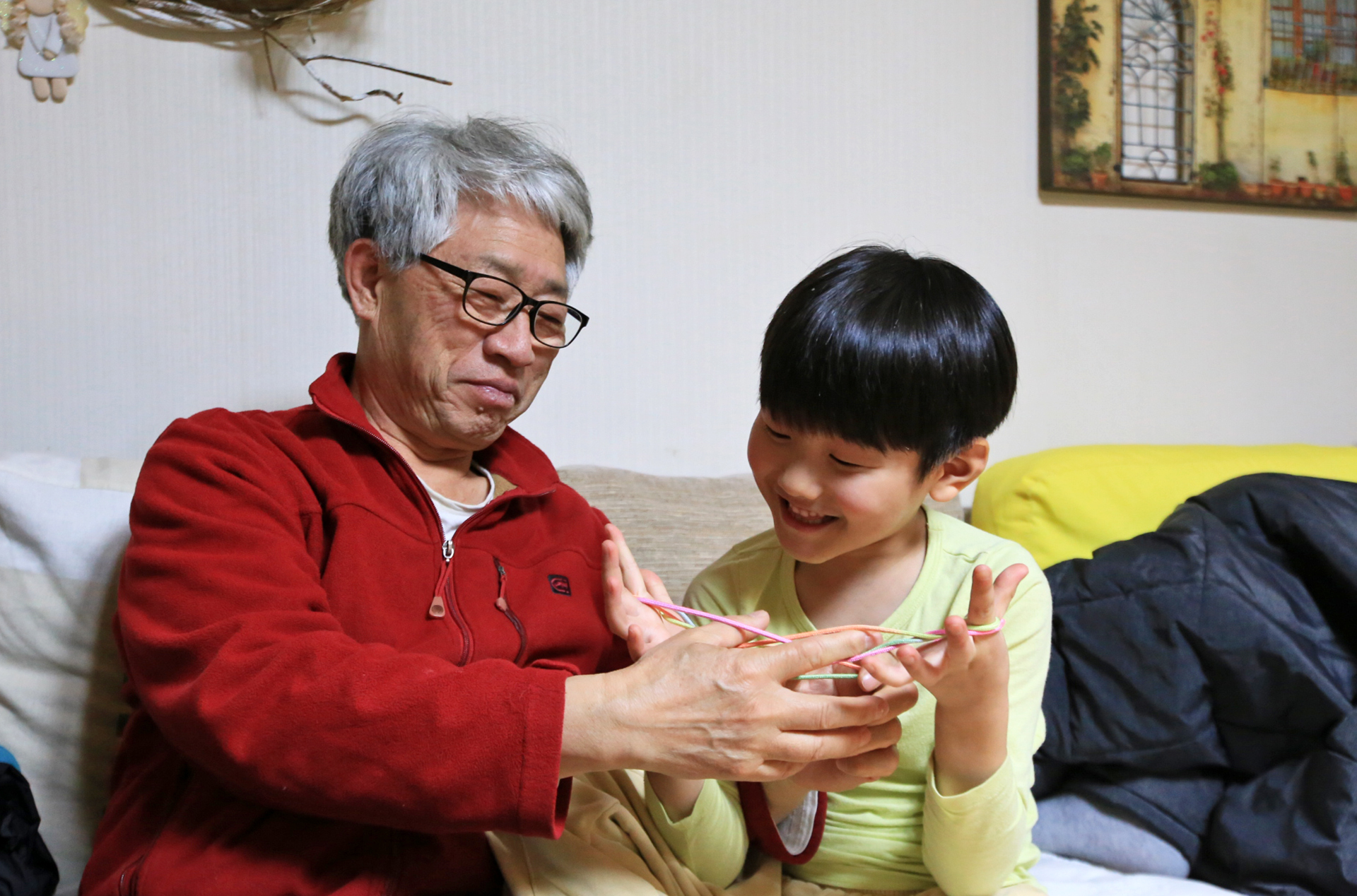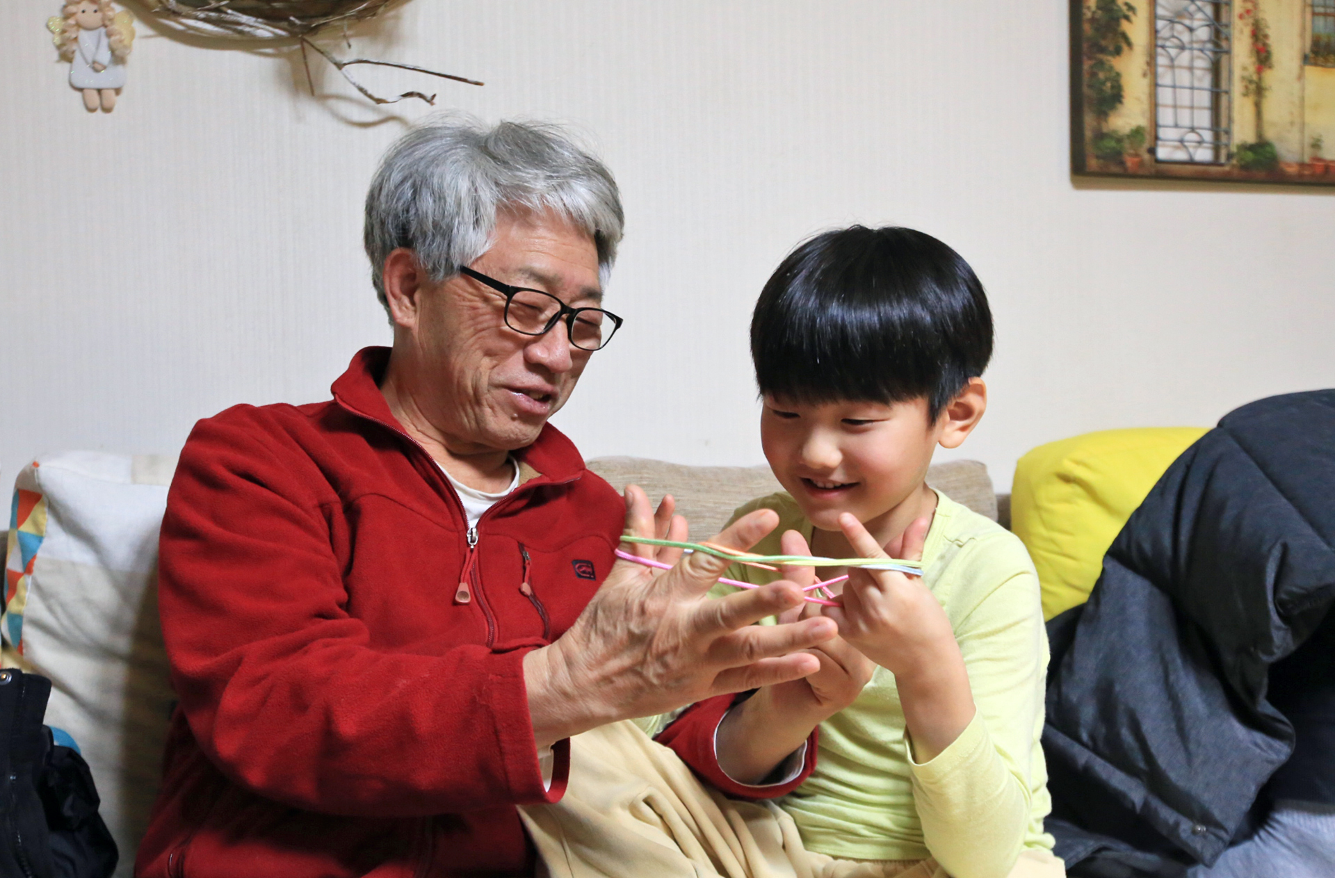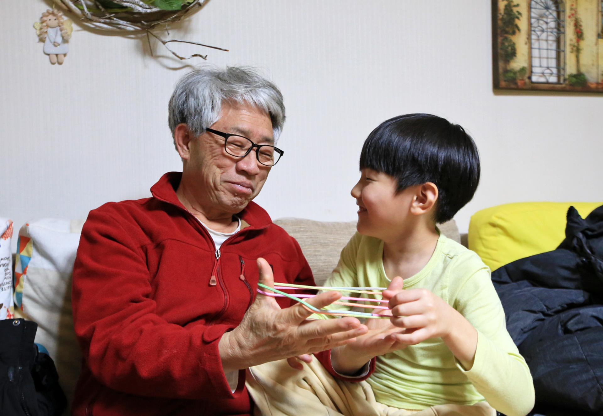 Jun이 길다란 끈을 가지고 왔는데 무었인지 짐작도 못하고 있는데 손에 감는 모양을 보고 실쓰기라는 것을 순간적으로 알아차렸다. 까맣게 잊고 있었는데 손자 덕분에 오랜만에 실뜨기를 해 본다. Jun이 나보도 한 수 위이다. 모르는 것은 손으로 교대한 다음에 Jun이 다음 단계로 넘어가기도 하였다.