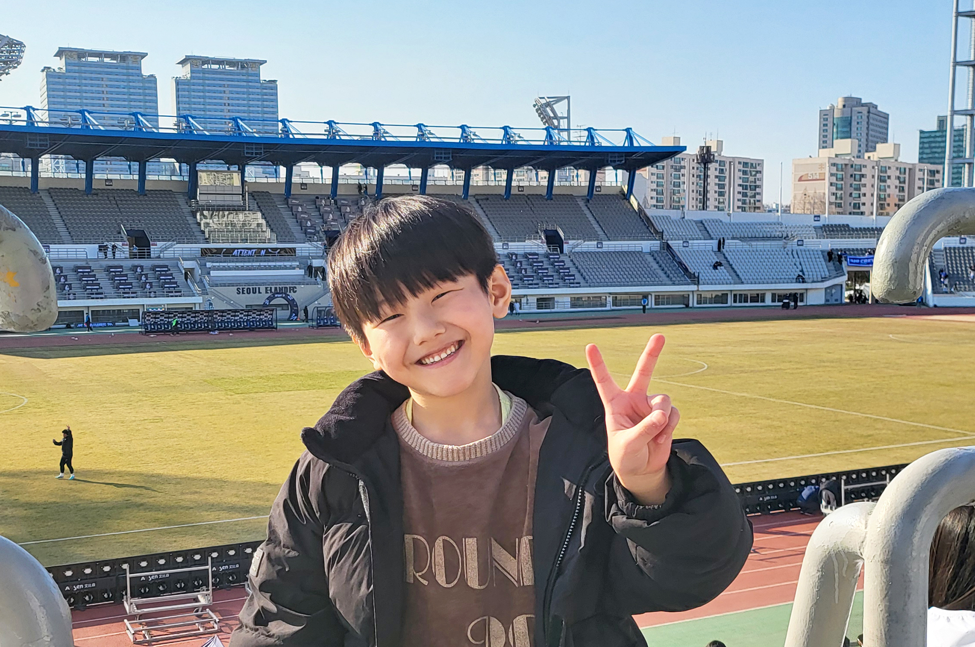 축구를 좋아하는 Jun은 아비와 함께 목동종합운동장에서 K리그 2 서울이랜드FC와 수원삼성블루윙즈의 축구 경기를 관람하고 왔다. 원정팀 좌석도 거의 만석일 정도로 성황을 이루었다는데 Jun이 응원한 서울이랜드FC 팀이 2:1로 이겼다고 좋아한다.