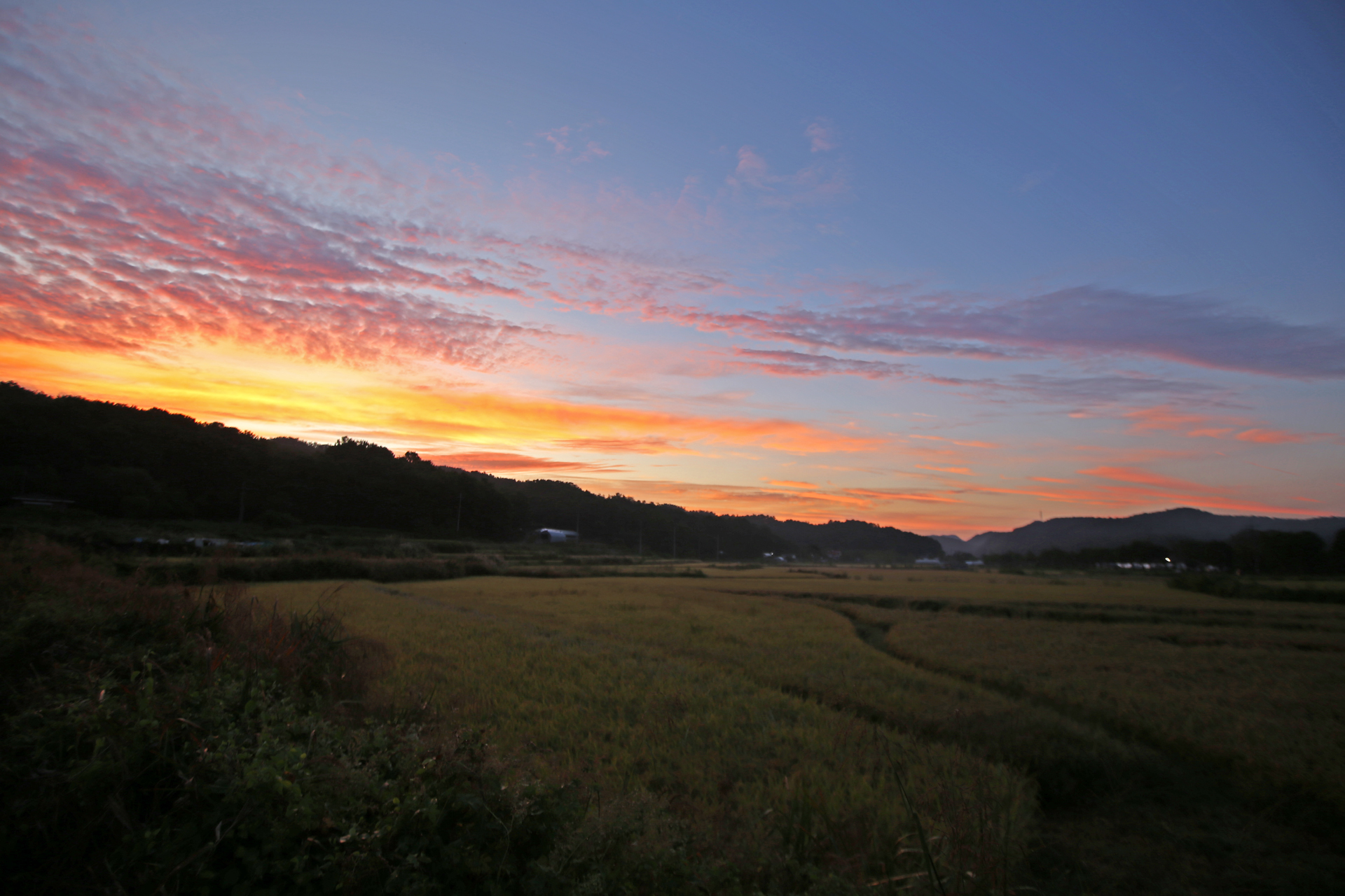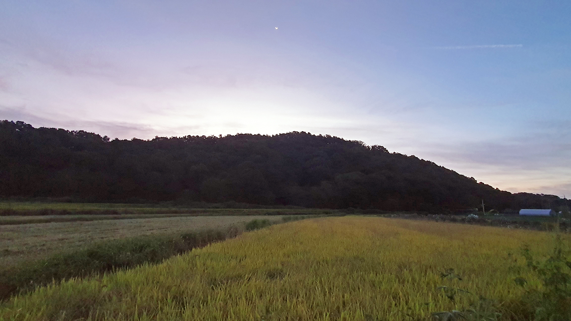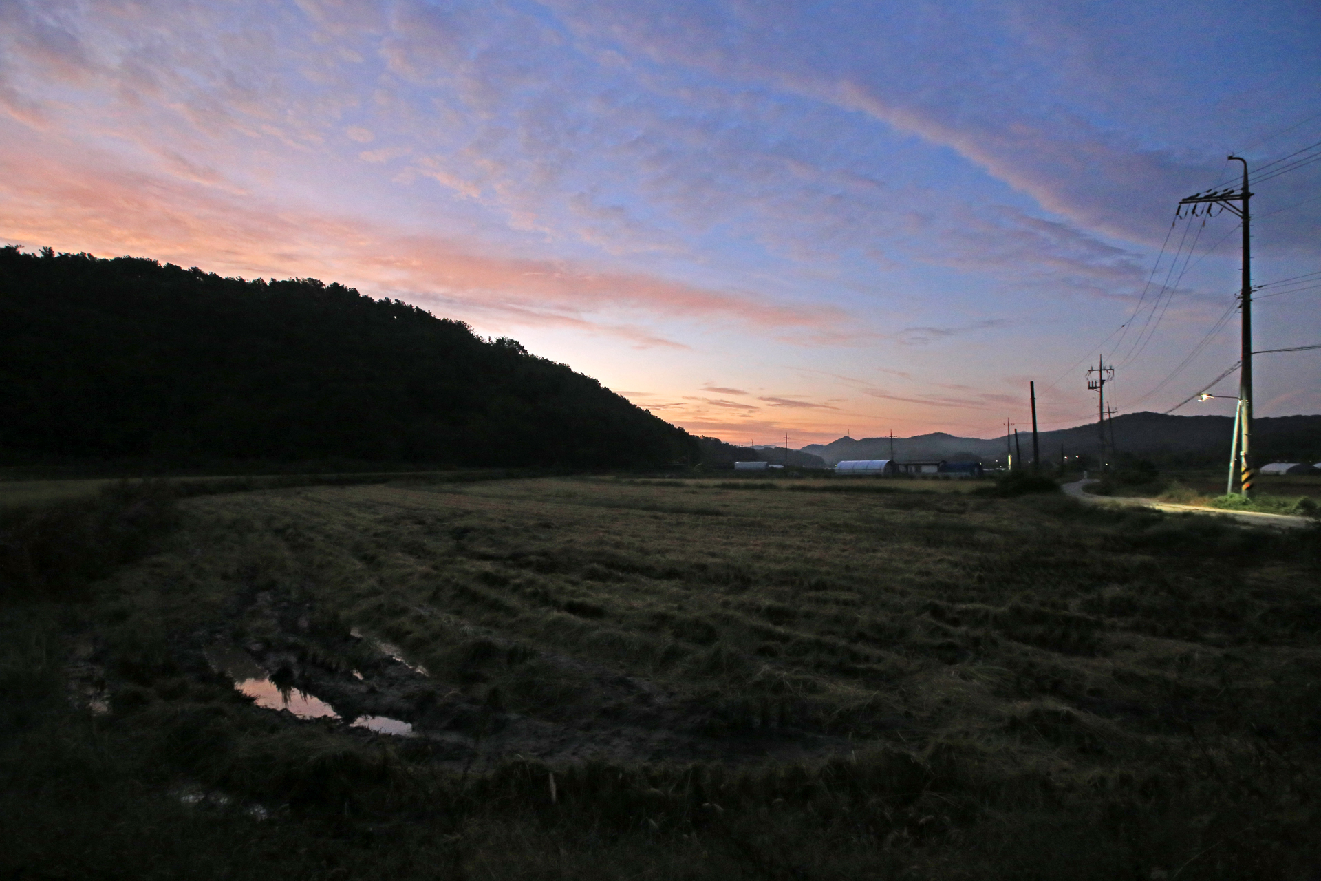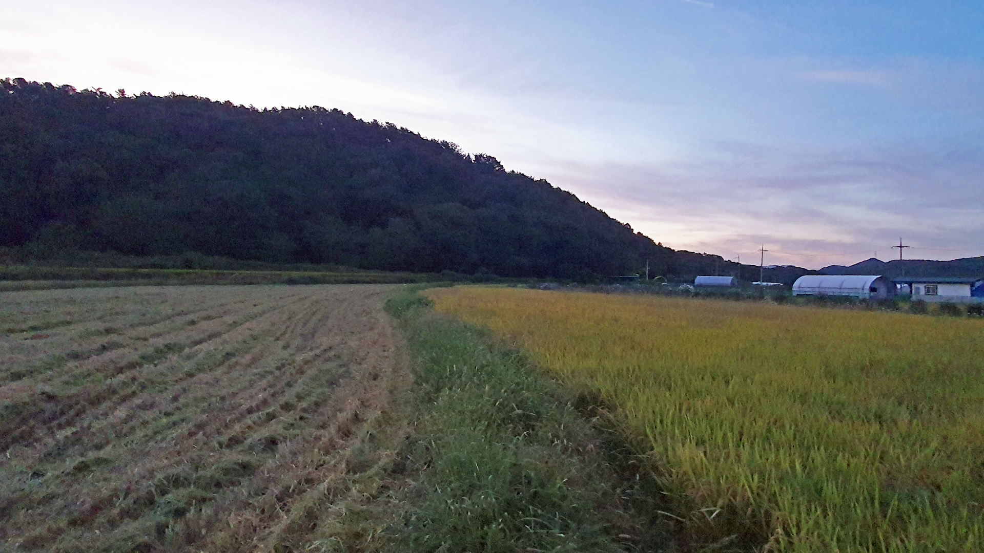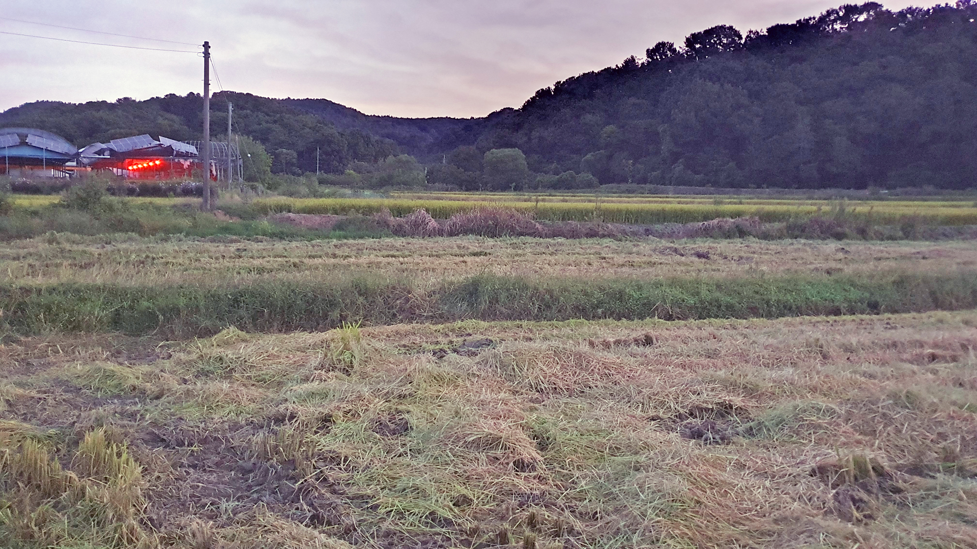 올 들어서 벼농사 추수한 것을 처음 보았다. 어제 새벽(아래 사진)에도 벼가 있었다.