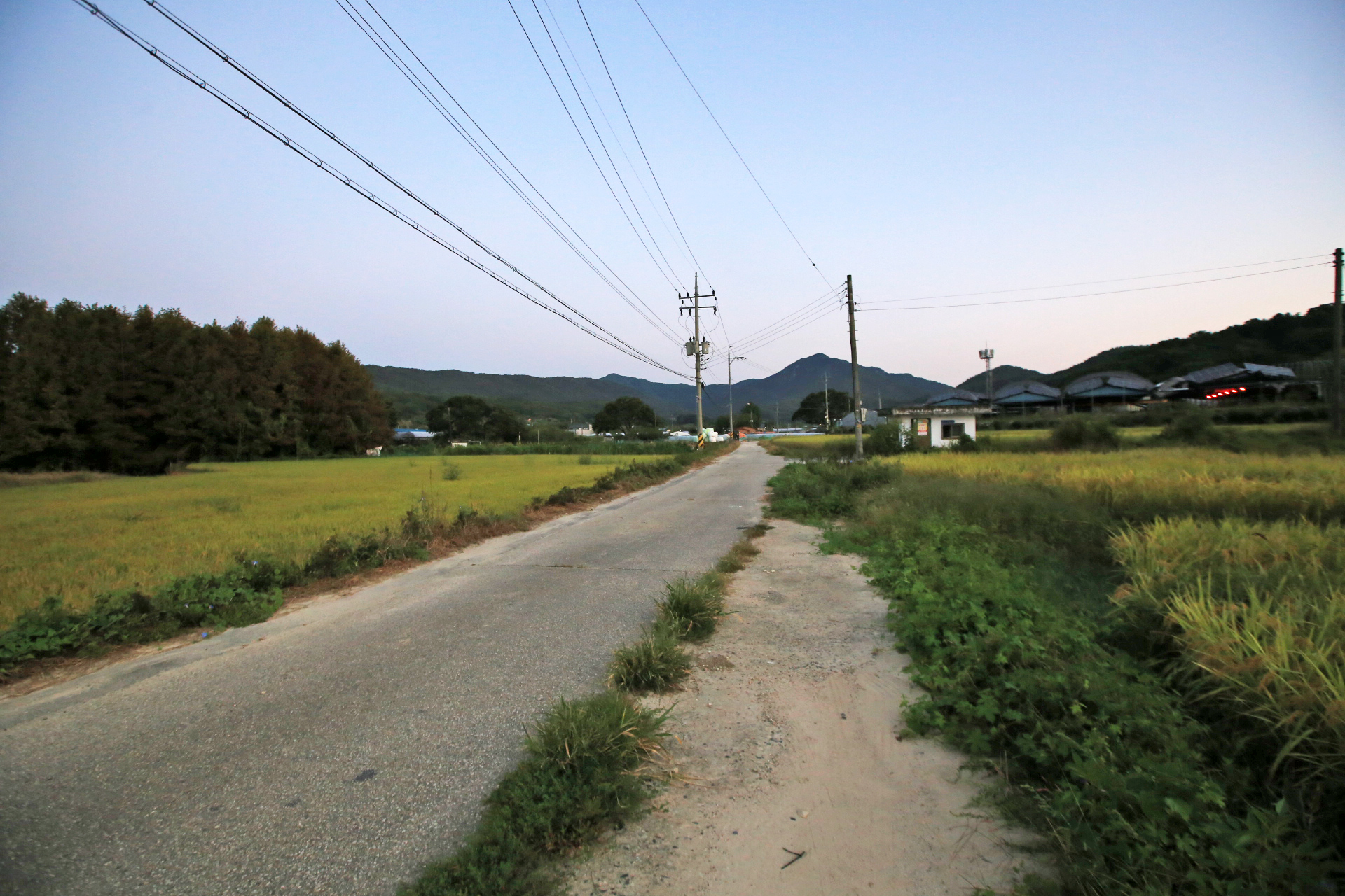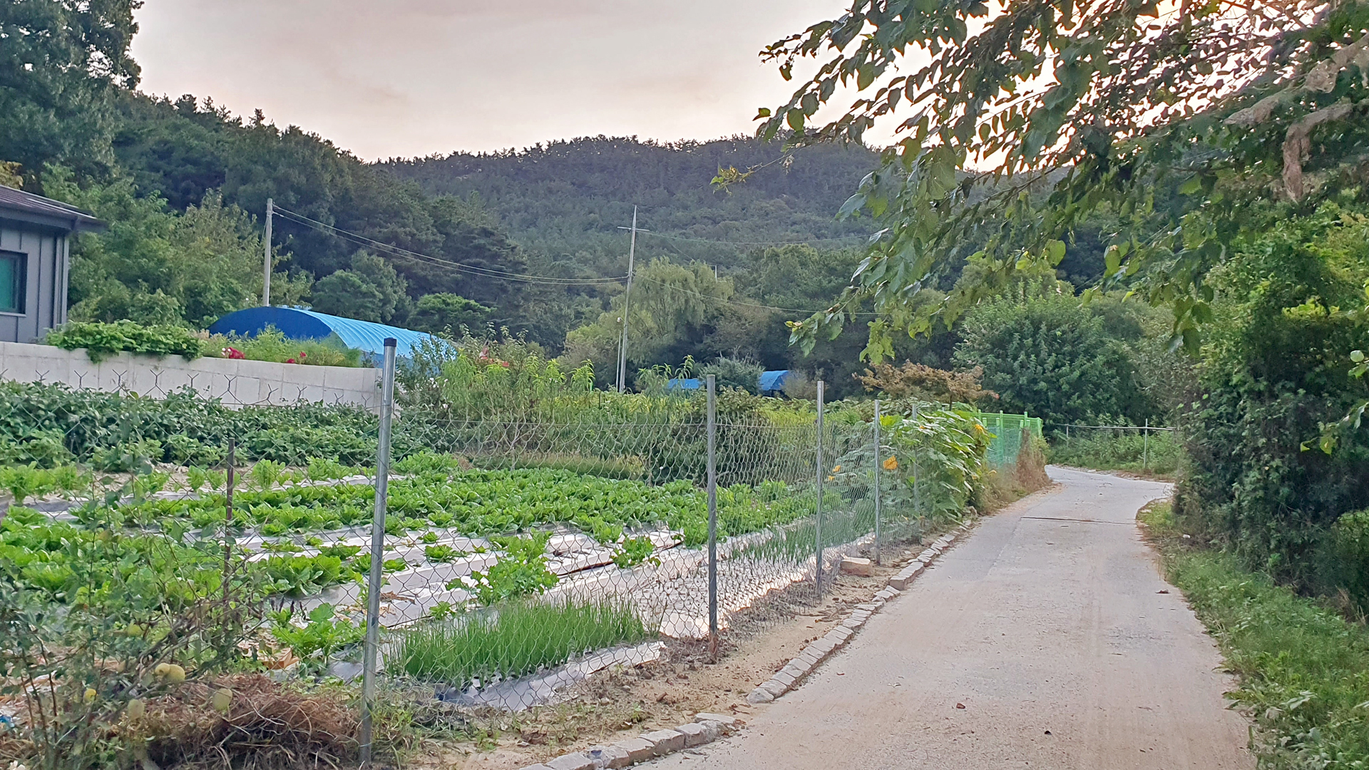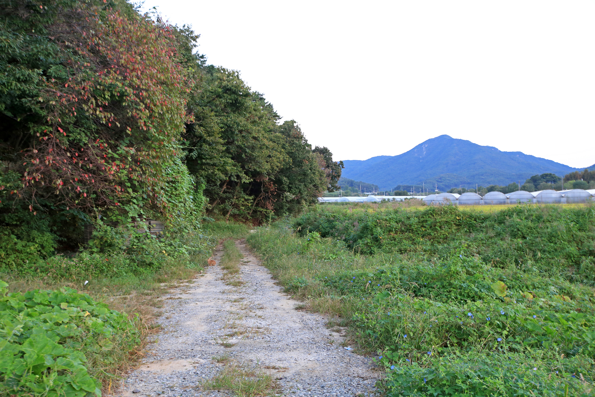 아침마다 아내와 함께 동네 산책을 나갈 때에는 거추장스러워도 큰 카메라를 메고 나간다. 스마트폰으로 촬영하면 초록색이 강조되거나 빛바랜 사진이 되어서 사진 보정작업을 하더라도 어색하기 때문이다. 매일 거기가 거기인 사진인데 오늘도 어제처럼 구름이 끼었기에 카메라를 두고 나왔다. 마을회관을 거쳐 구 도로를 이용하여 국립대전숲체원 쪽으로 가다가 되돌아왔다.