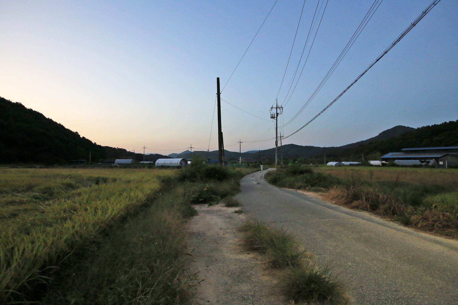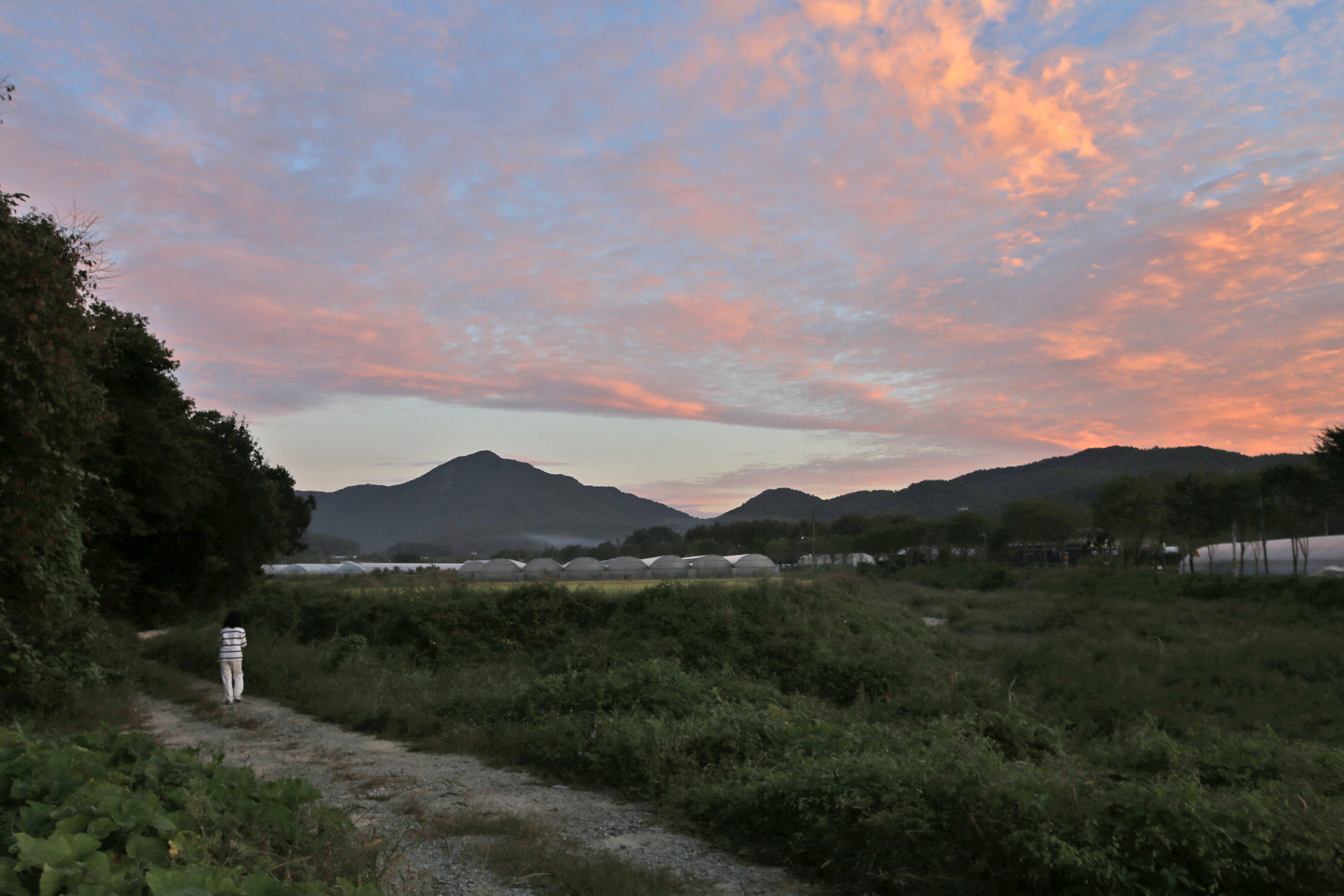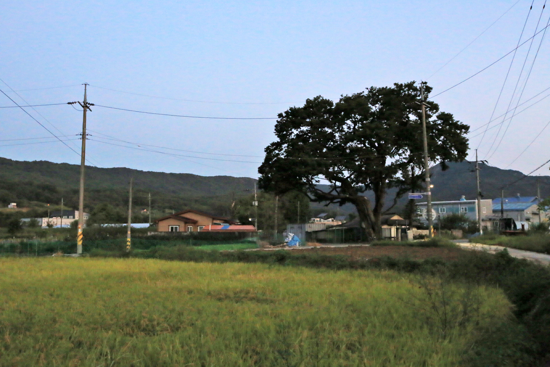아침마다 아내와 함께 동네 산책을 나갈 때에는 거추장스러워도 큰 카메라를 메고 나간다. 스마트폰으로 촬영하면 초록색이 강조되거나 빛바랜 사진이 되어서 사진 보정작업을 하더라도 어색하기 때문이다. 매일 거기가 거기인 사진인데 오늘도 어제처럼 구름이 끼었기에 카메라를 두고 나왔다. 마을회관을 거쳐 구 도로를 이용하여 국립대전숲체원 쪽으로 가다가 되돌아왔다.