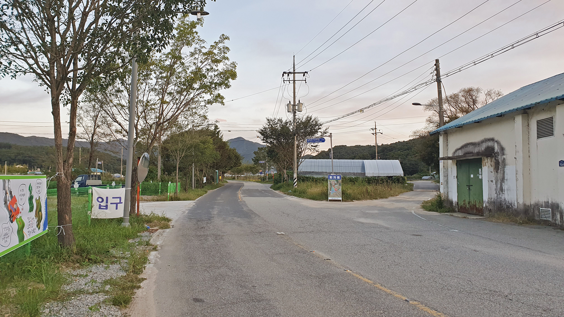 옛 백H기네 집 앞을 거쳐서 주막거리(가운데둥구나무)에서 구 도로로 굿개말로 향하였다.