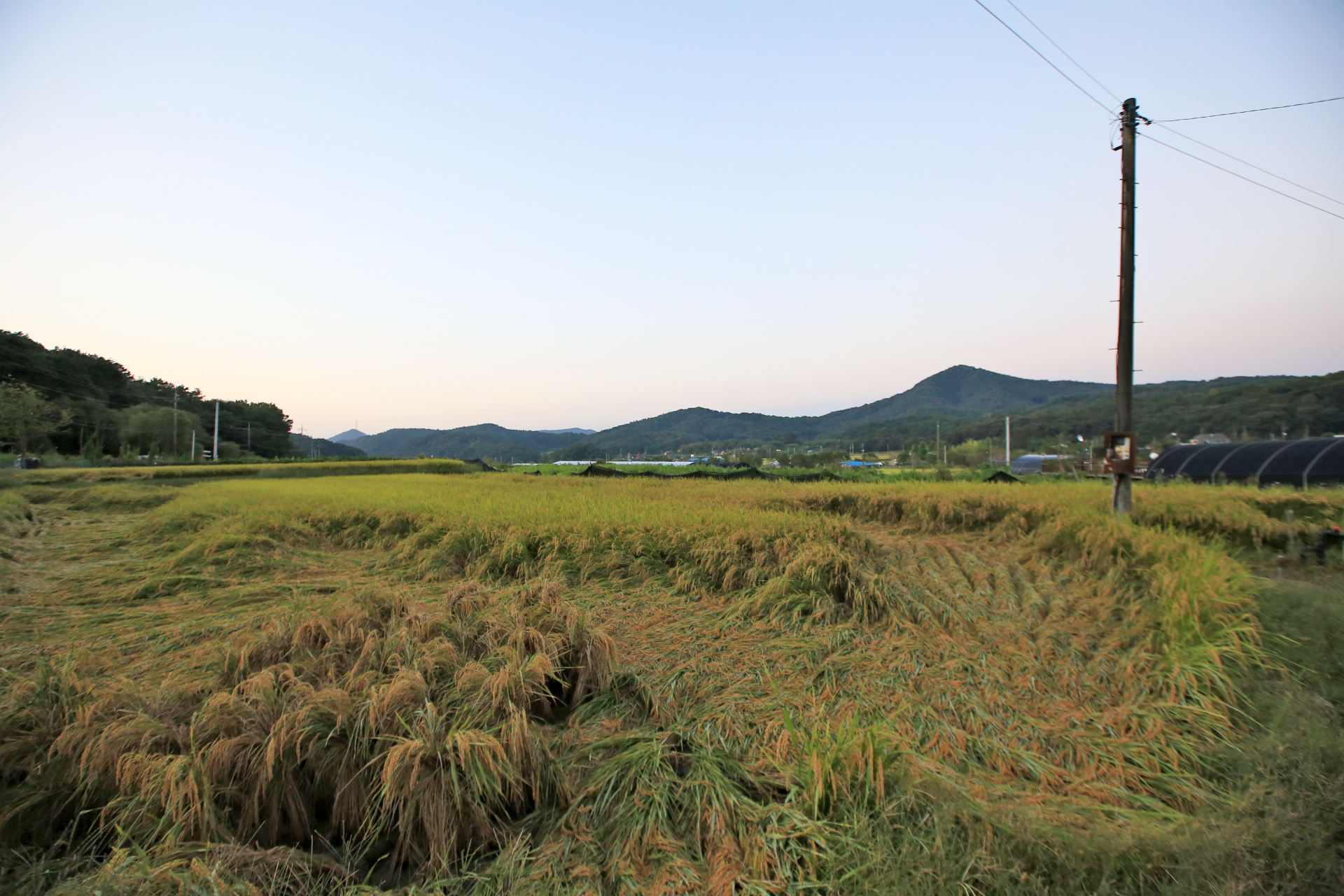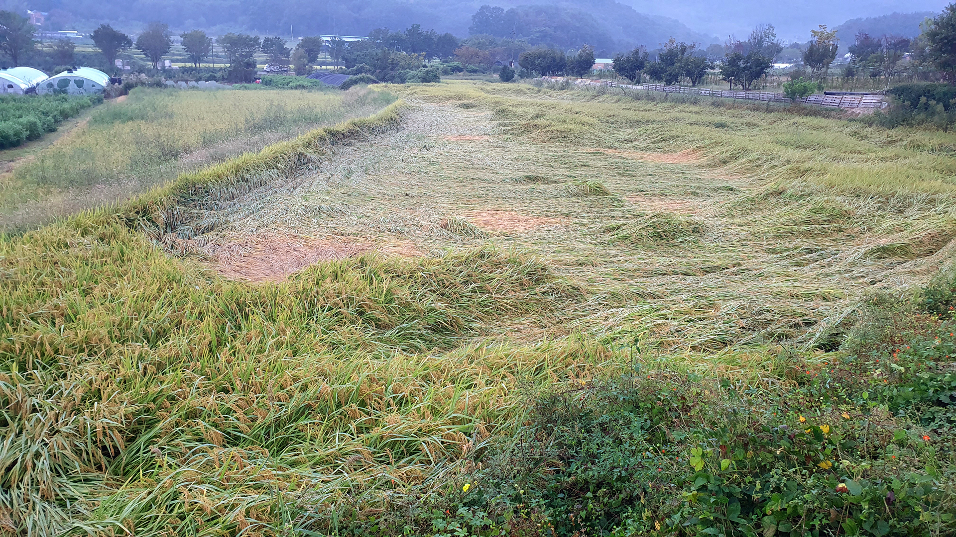 벼가 많이 쓰러졌다.