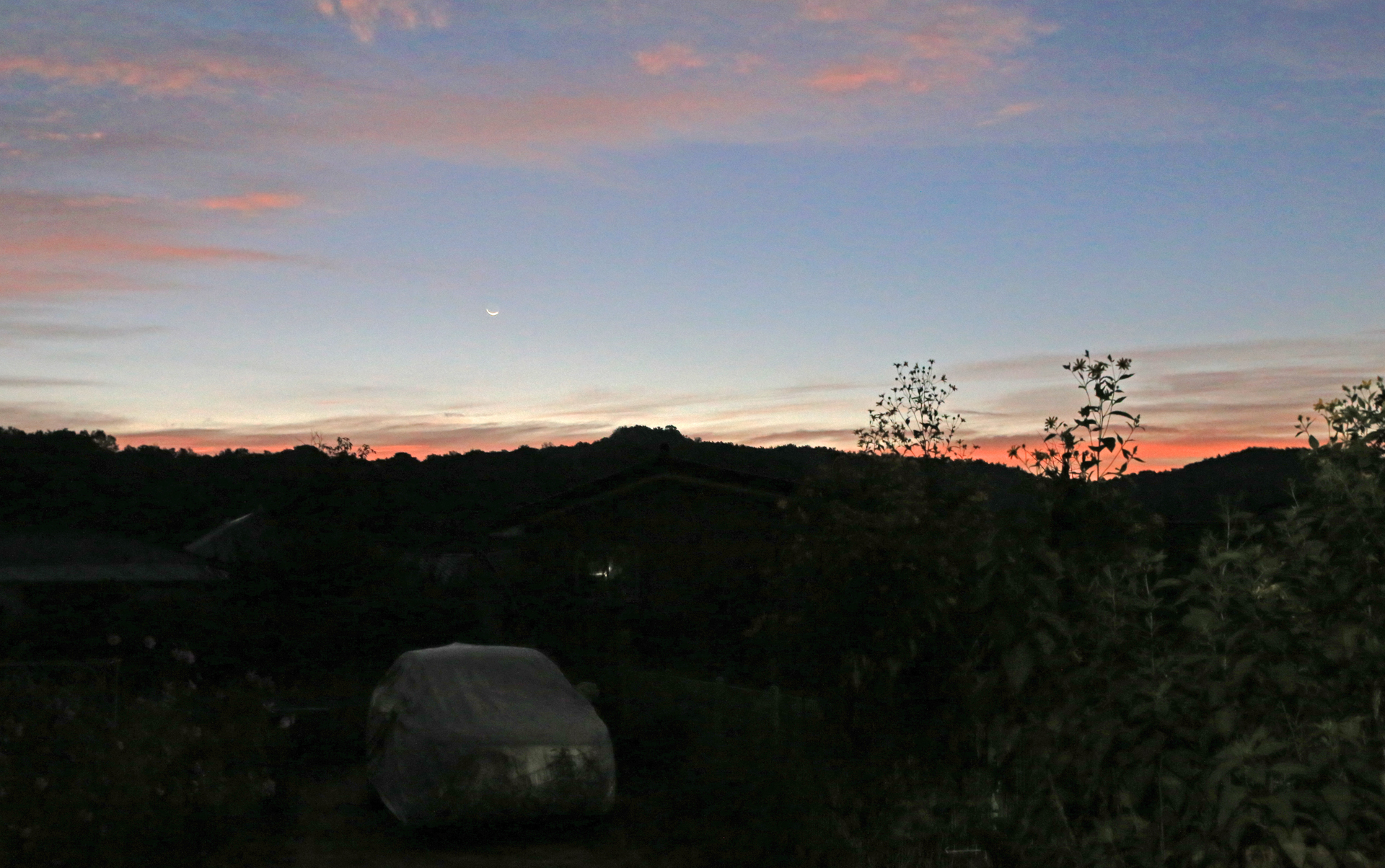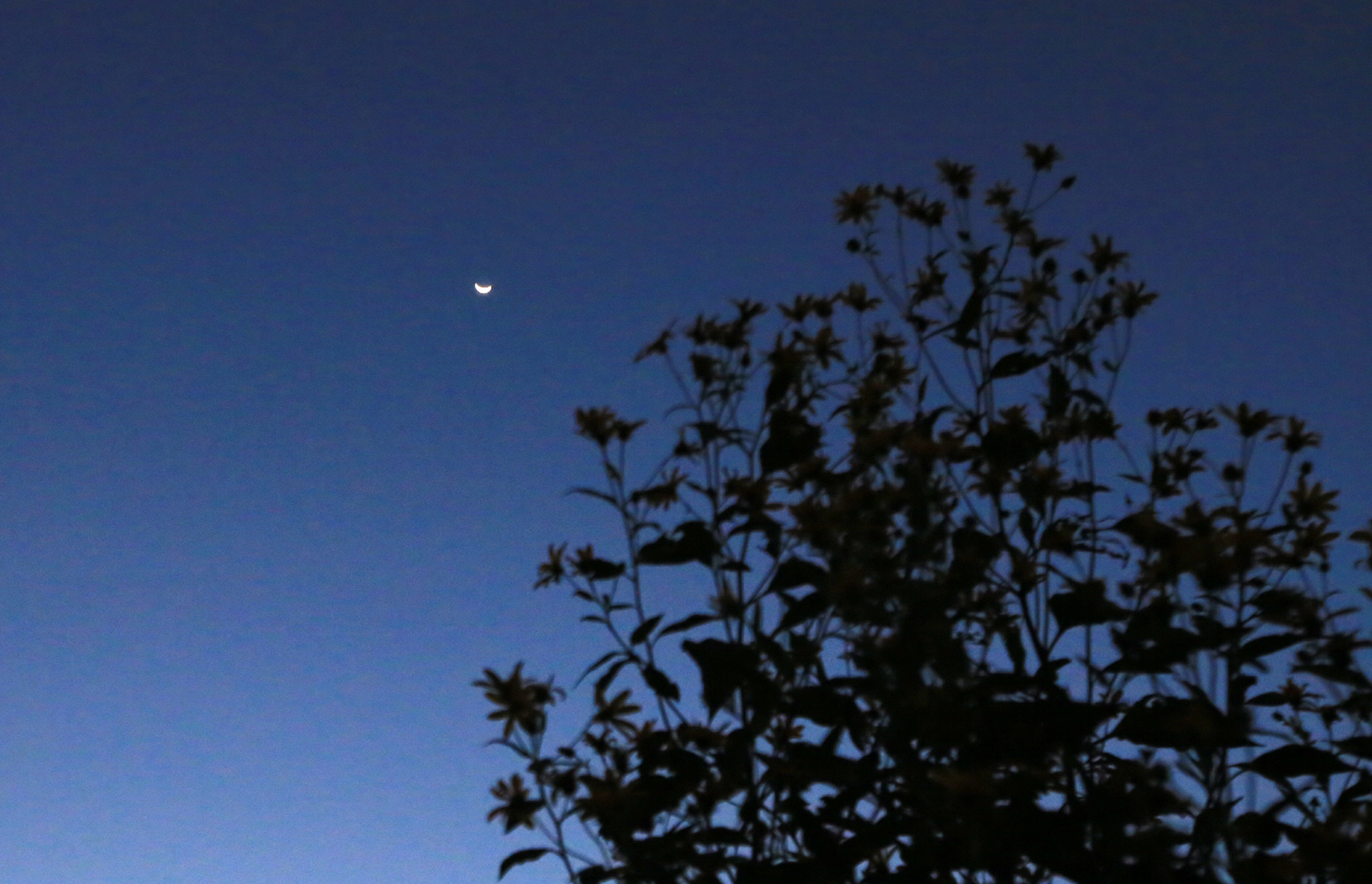 날이 많이 샜는데도 그믐달이 보인다.