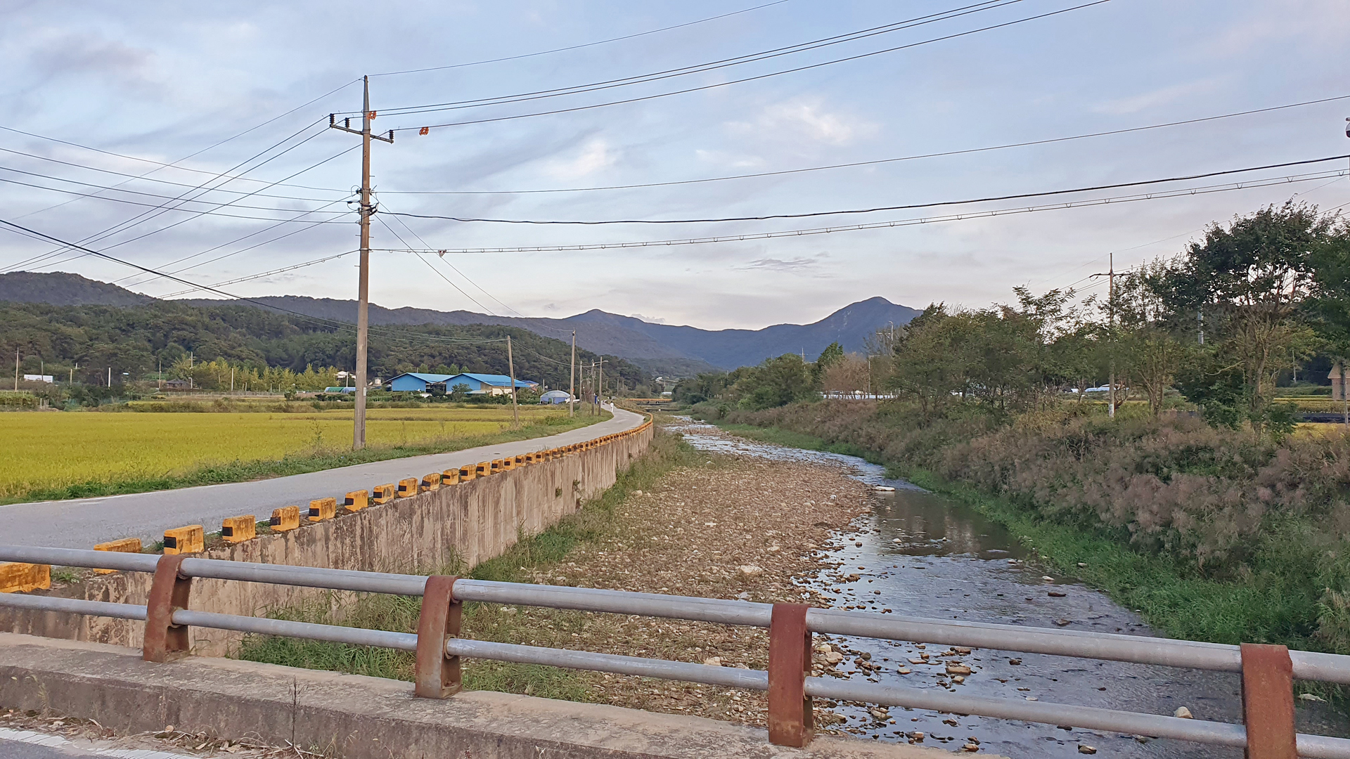 산정이천을 건너서도 추수한 논이 있다.