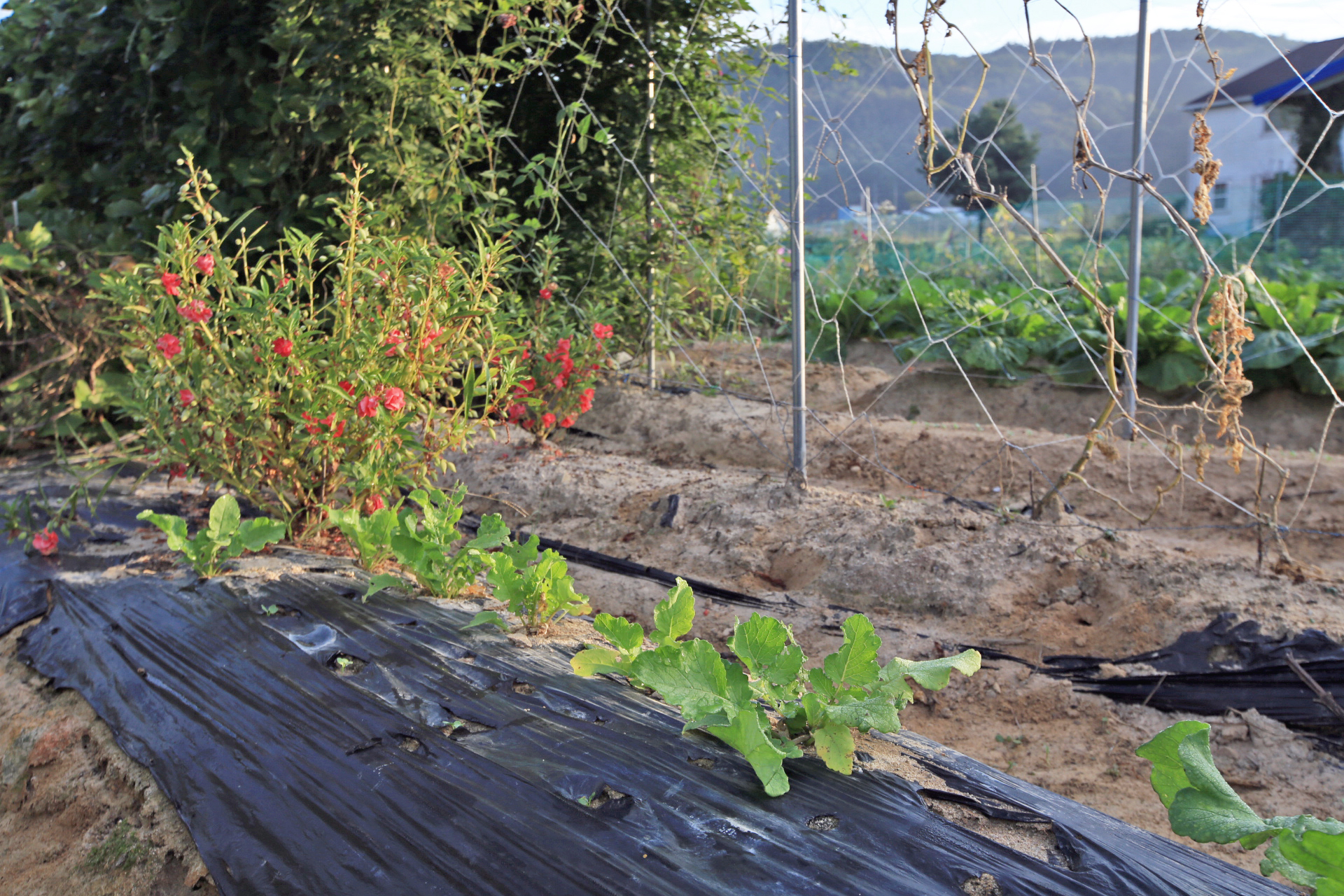 배추벌레 피해가 커서 큰 이파리는 구멍이 숭숭하고, 일부는 생장점까지 파먹었지만 하루가 다르게 커간다.