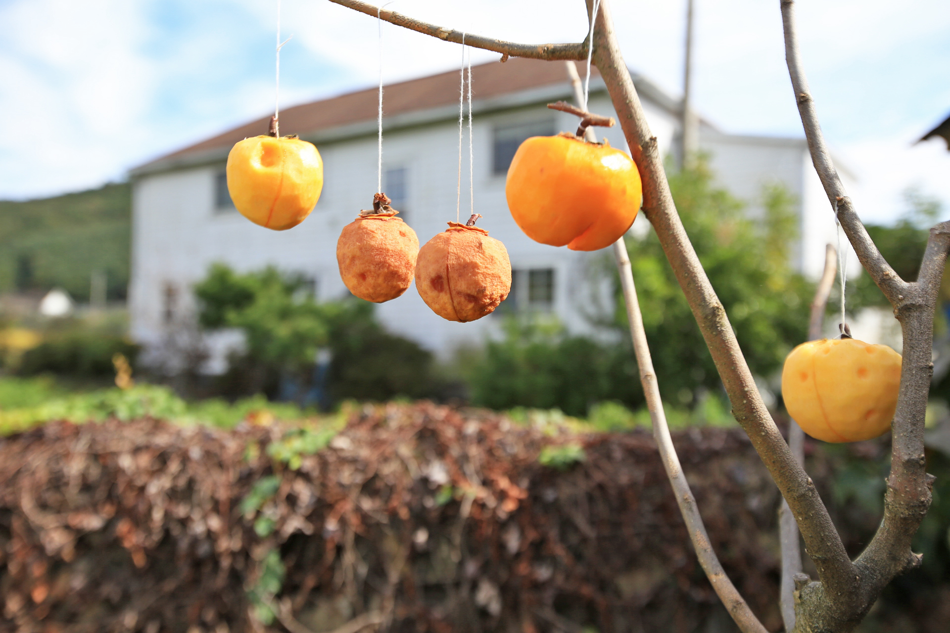 아내가 땡감을 깎아서 곶감을 만들고 있다.