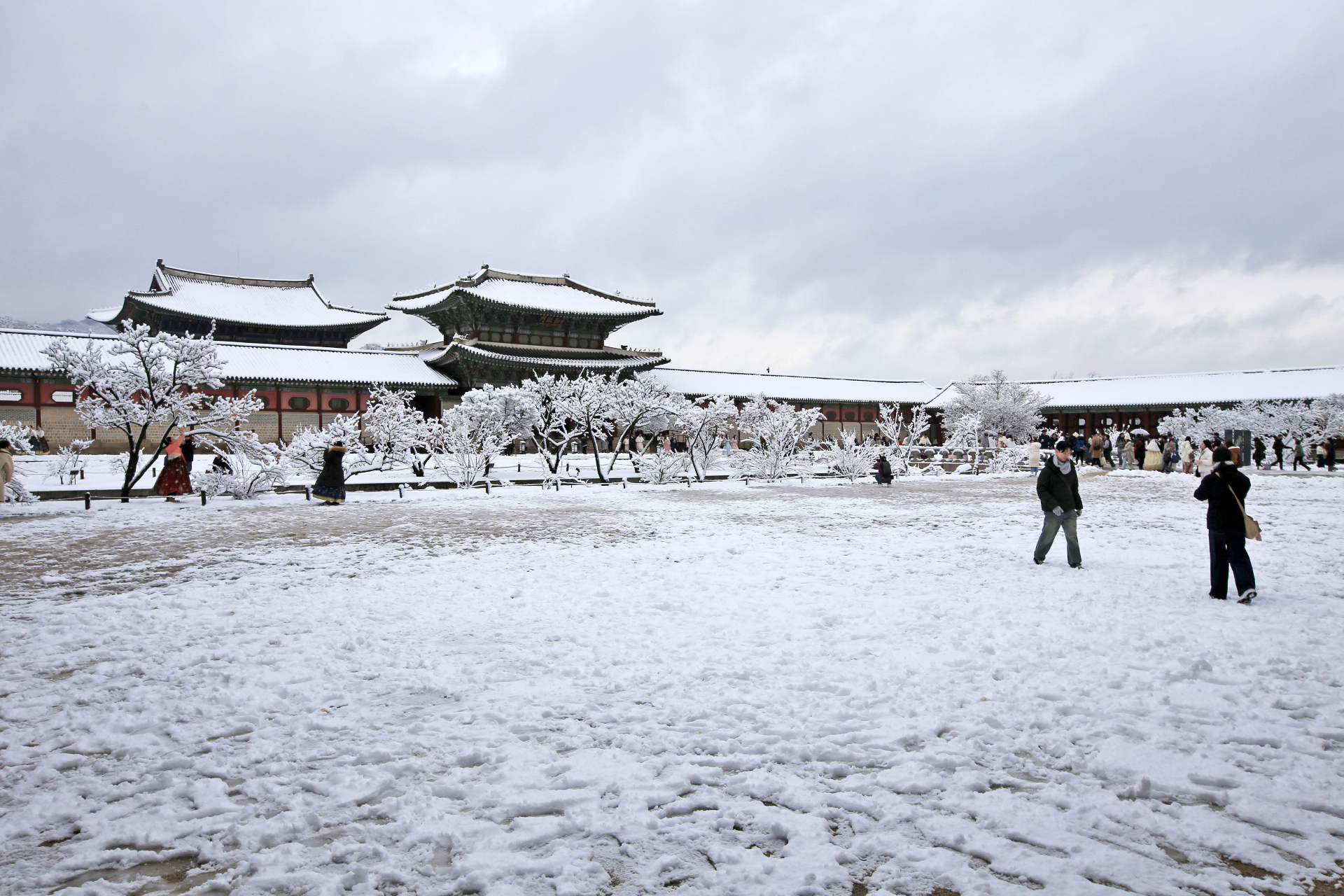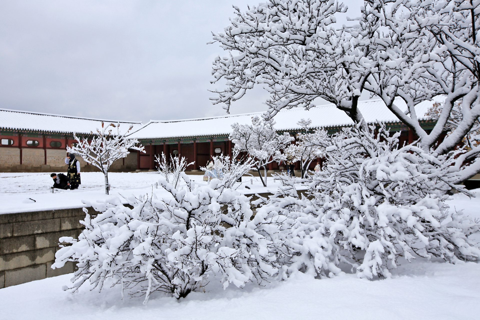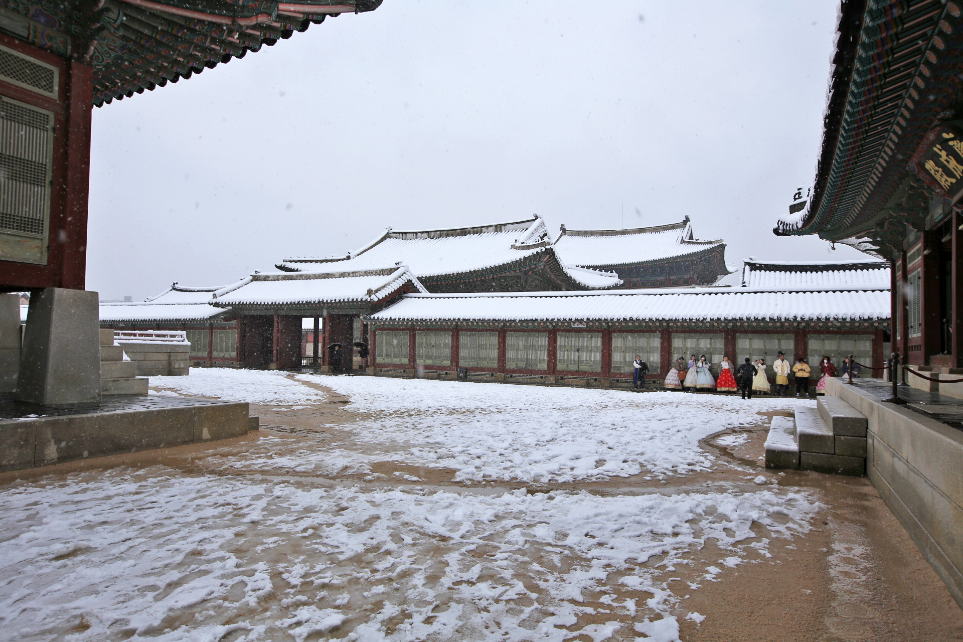 경복궁에 머무는 동안 눈이 내렸다 그치기를 반복하였다.