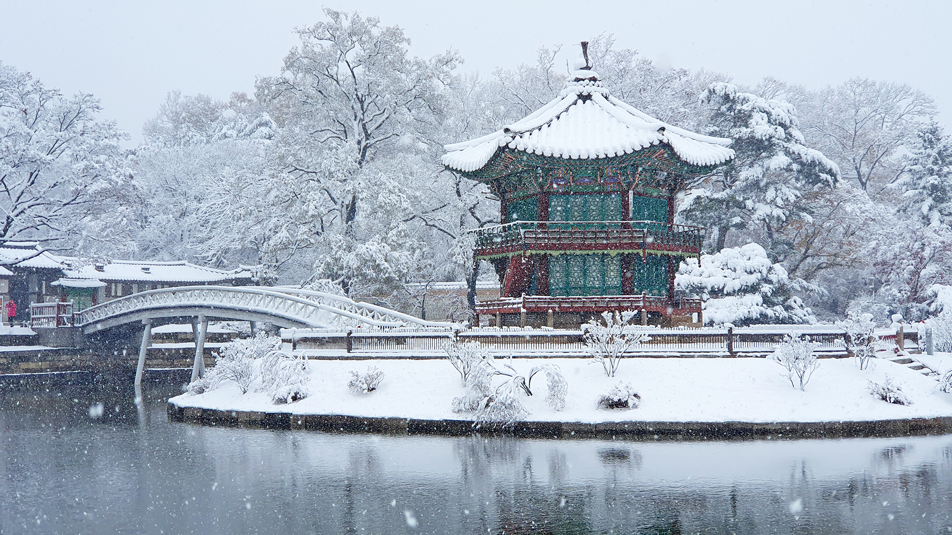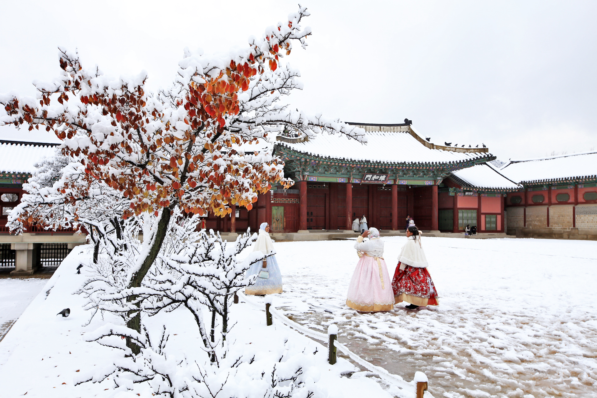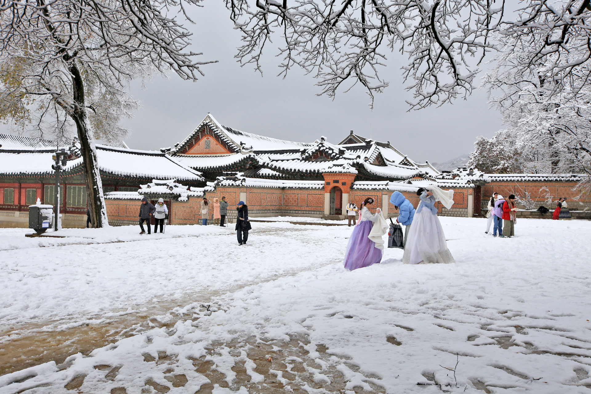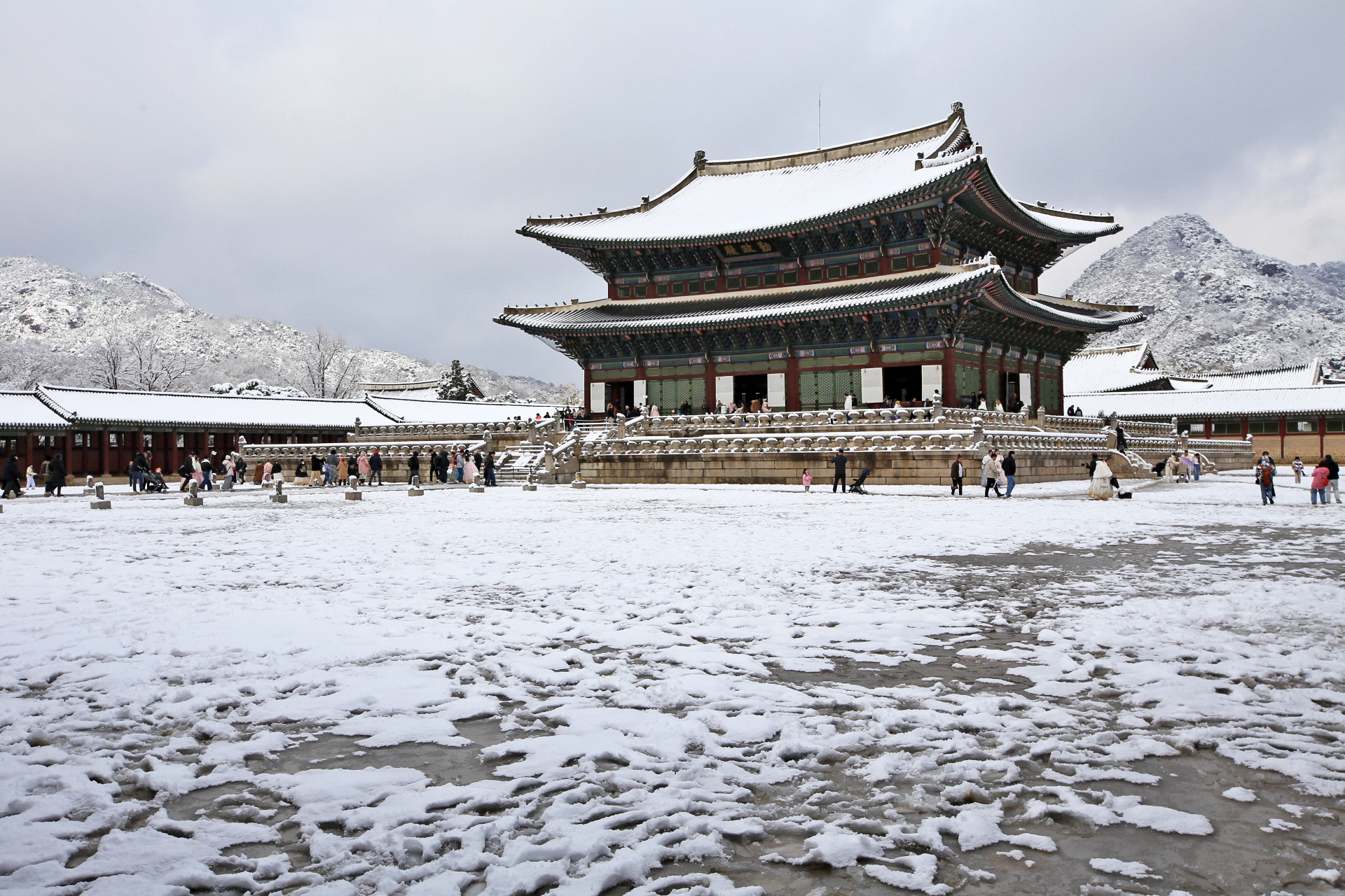 경복궁에 머무는 동안 눈이 내렸다 그치기를 반복하였다.