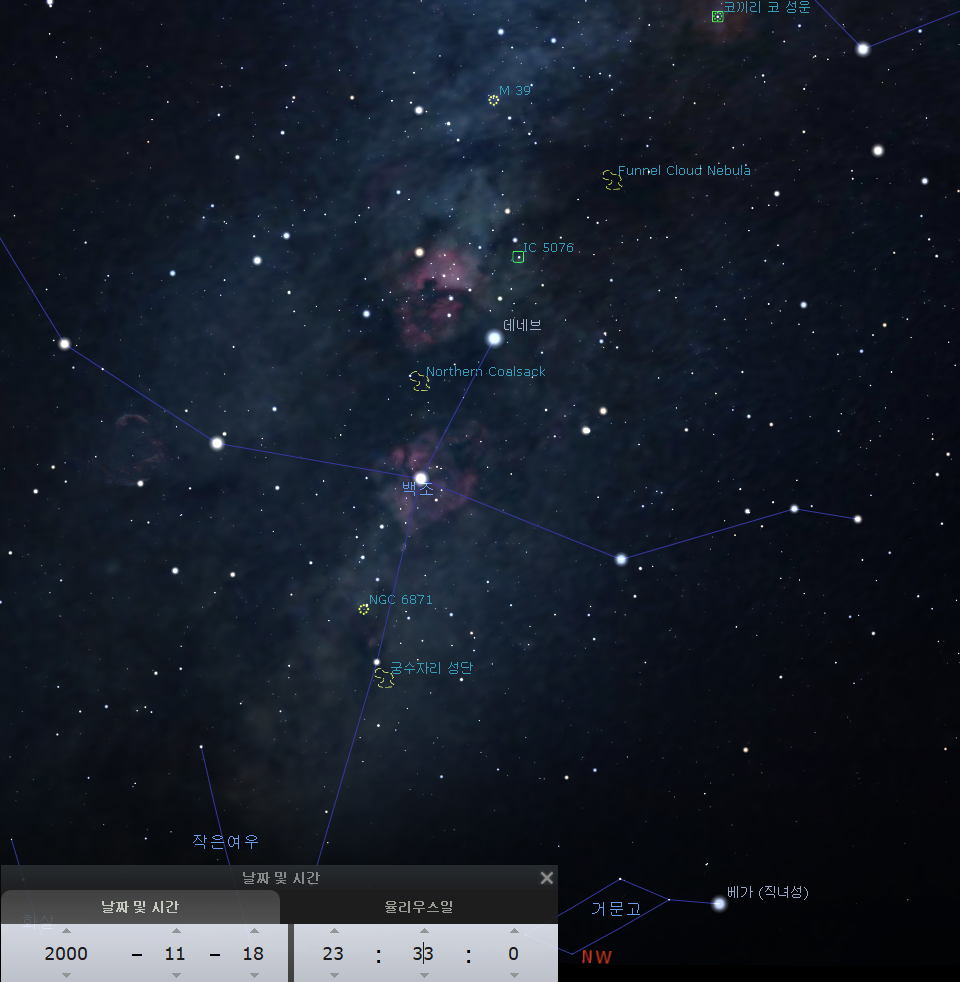 백조자리의 북아메리카성운(데네브 12시 방향)