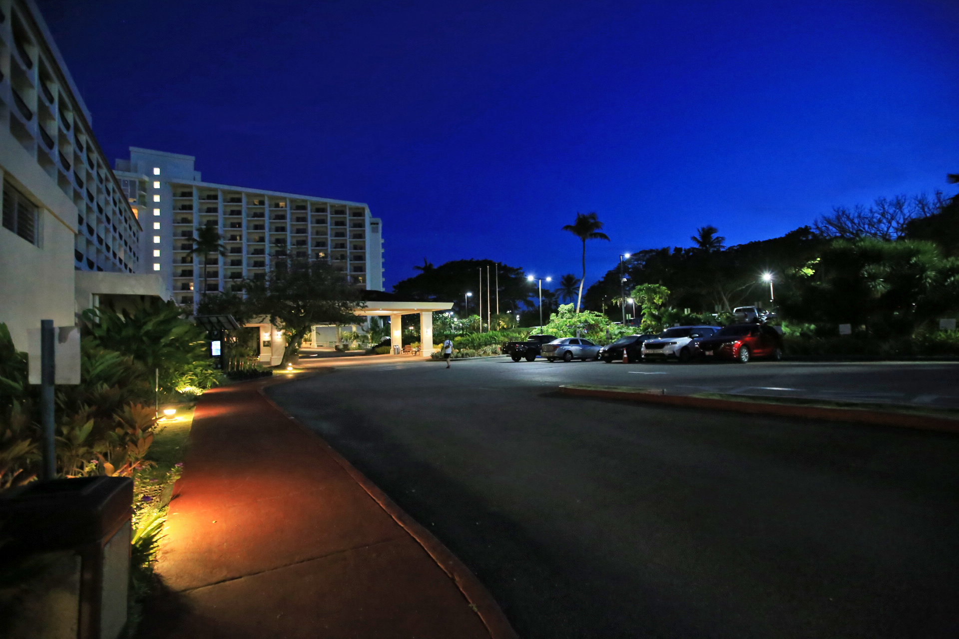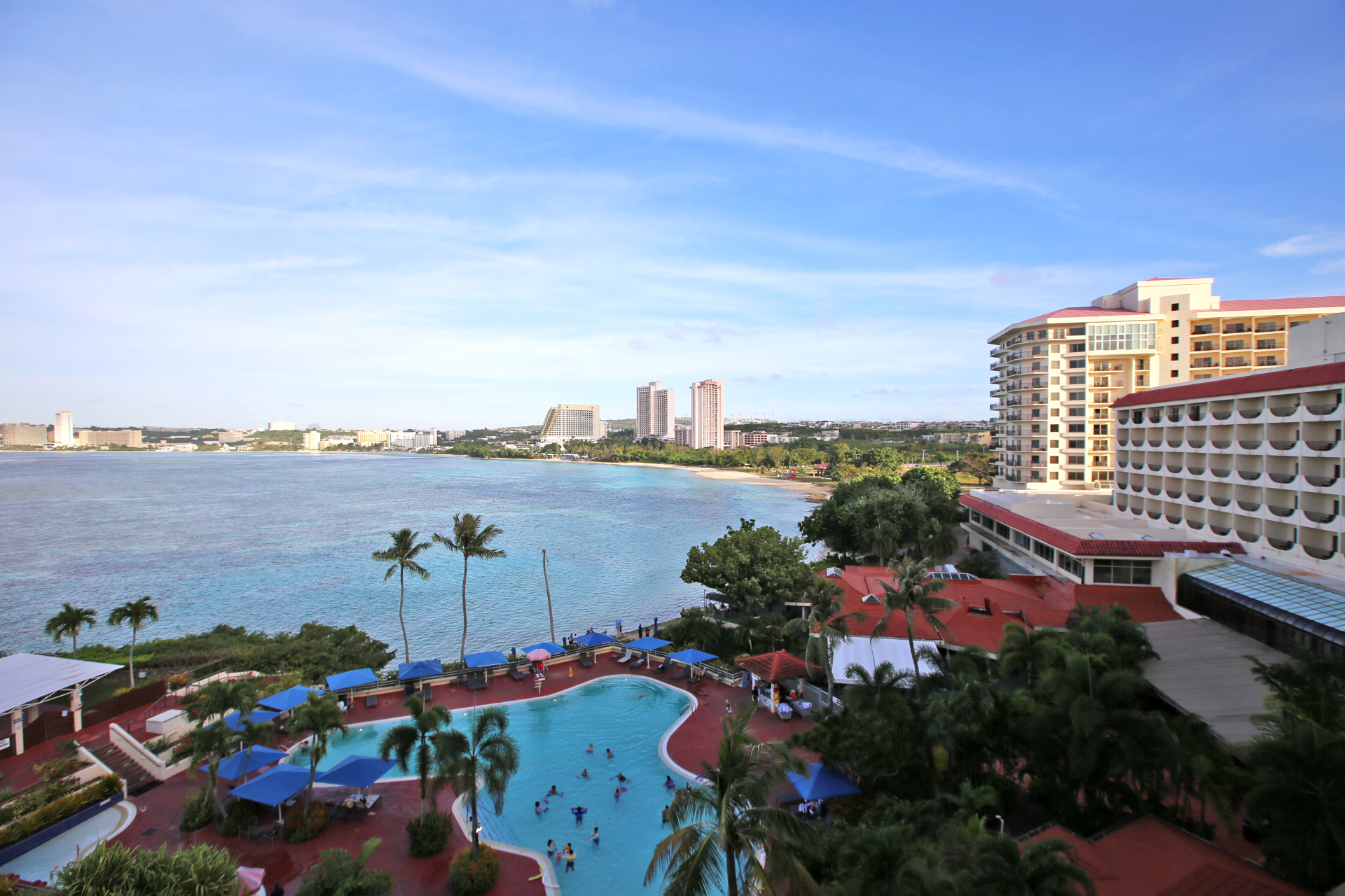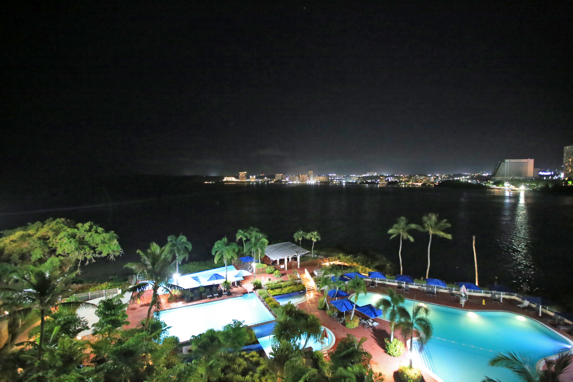 숙소(Hilton Guam Resort & Spa) 6층 침실 발코니에서 내다보이는 투몬만(Tumon Bay)의 오후(17:35) 풍경이다. 3박 4일 머무는 동안 시간이 날 때마다 같은 장소에서 여러 번 촬영하였다.