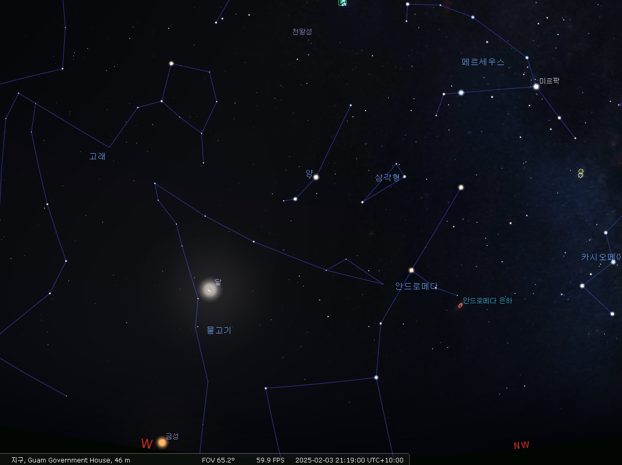 초승달이지만 워낙 밝아서 둥글게 퍼져 보인다.