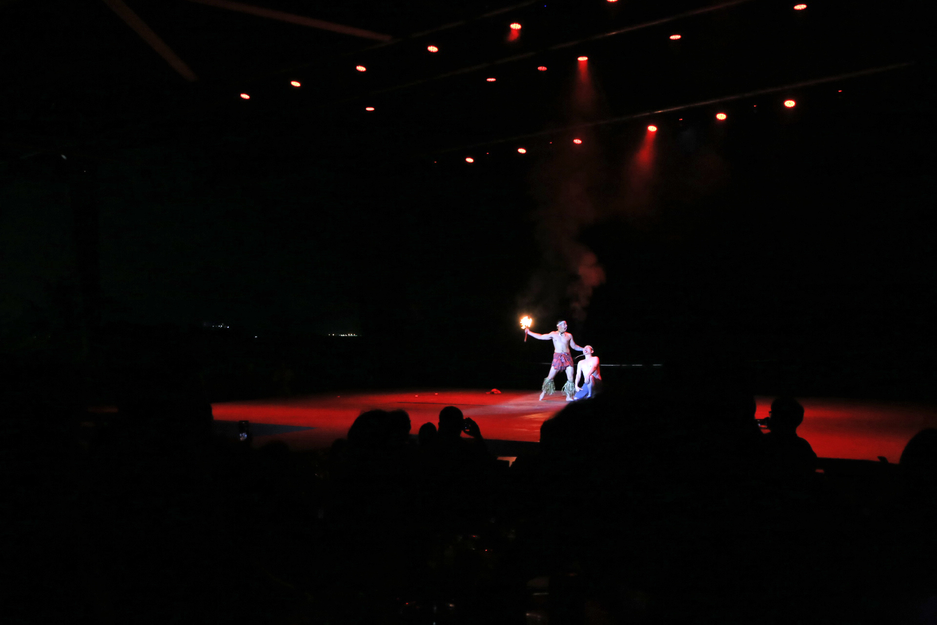 관람하던 임직원 중에서 한 분을 선택하여 양손에 바쳐 든 대나무를 칼로 내려쳐서 두 동강내기를 반복하였다. 마지막에는 2~30cm 쯤 되는 것을 이마에 대란다. 기합을 지르고 달려가더니 칼을 들지 않은 다른 손으로 치는 시늉을 한다. 간 떨어지겠다.