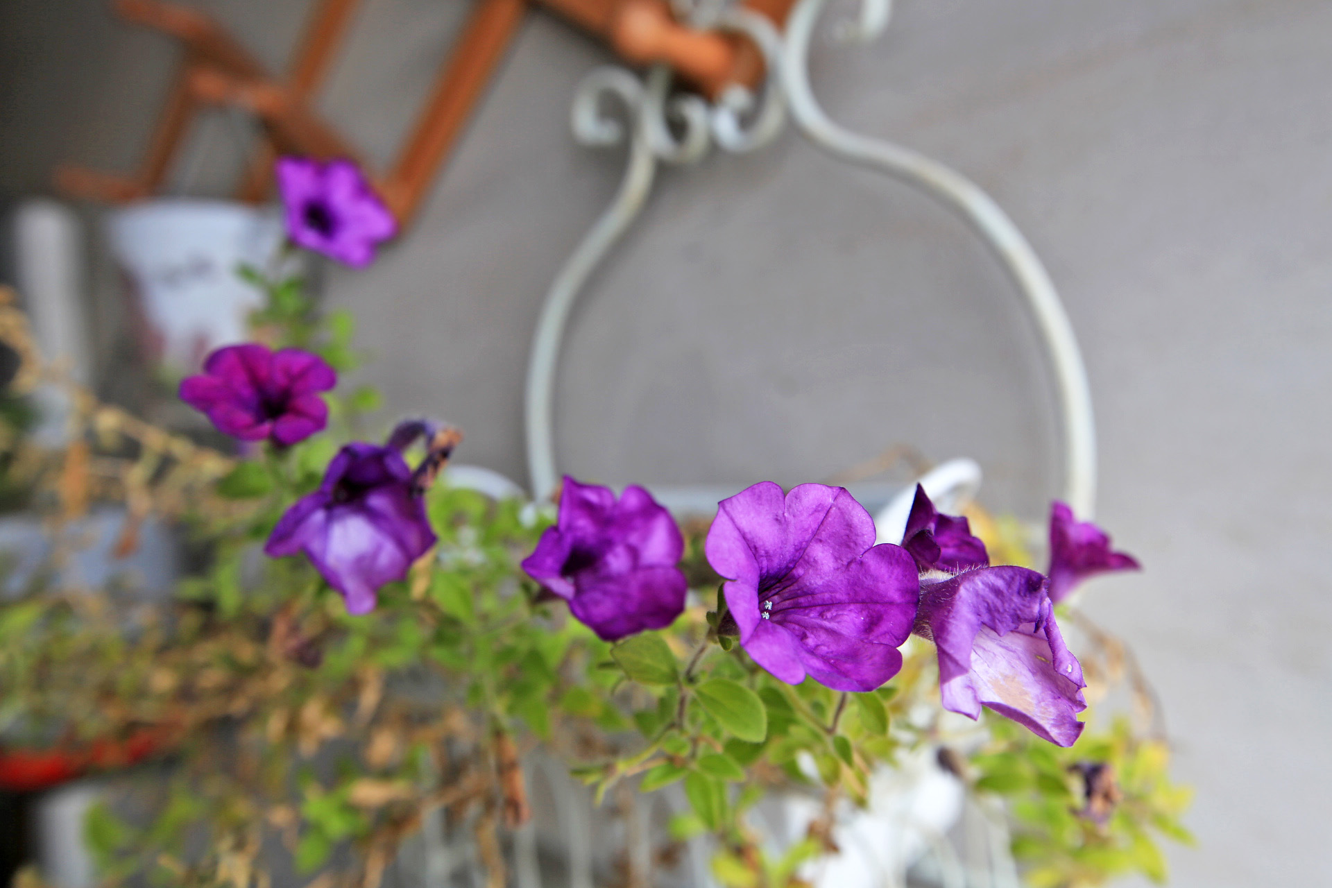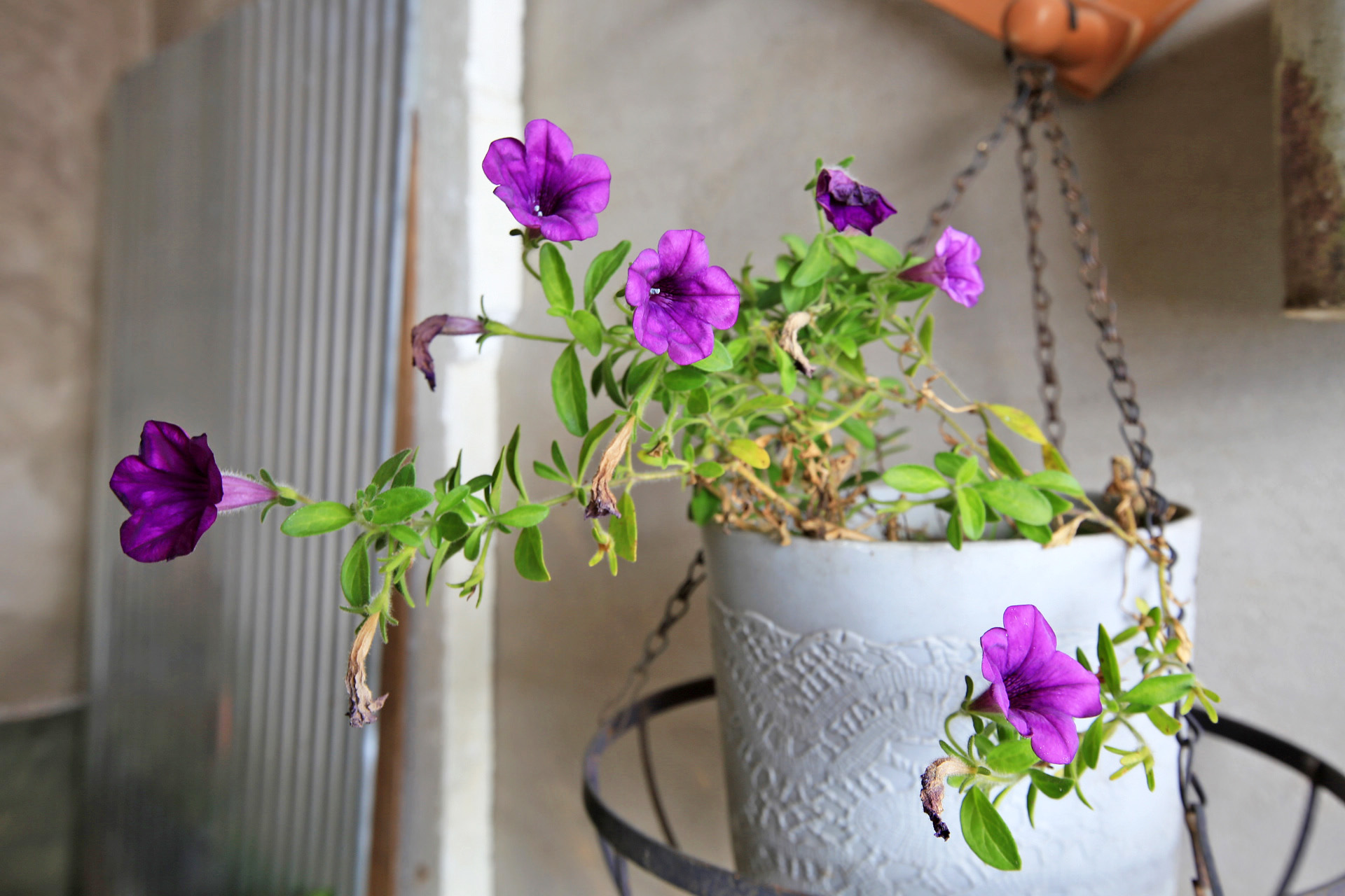 사피니아는 꽃잎 색깔이 좀 변하기는 하였지만 꽃이 피어 있다.
