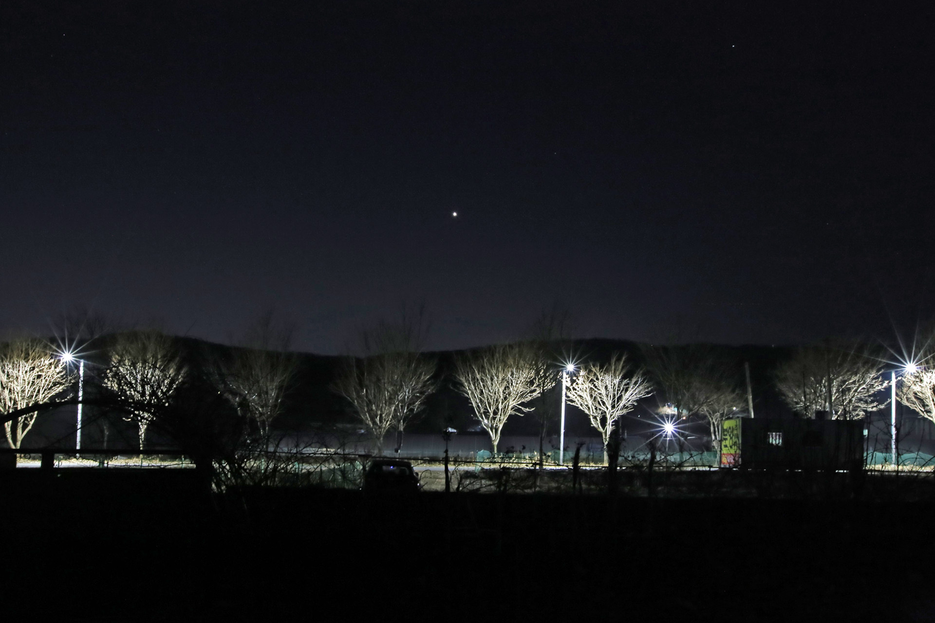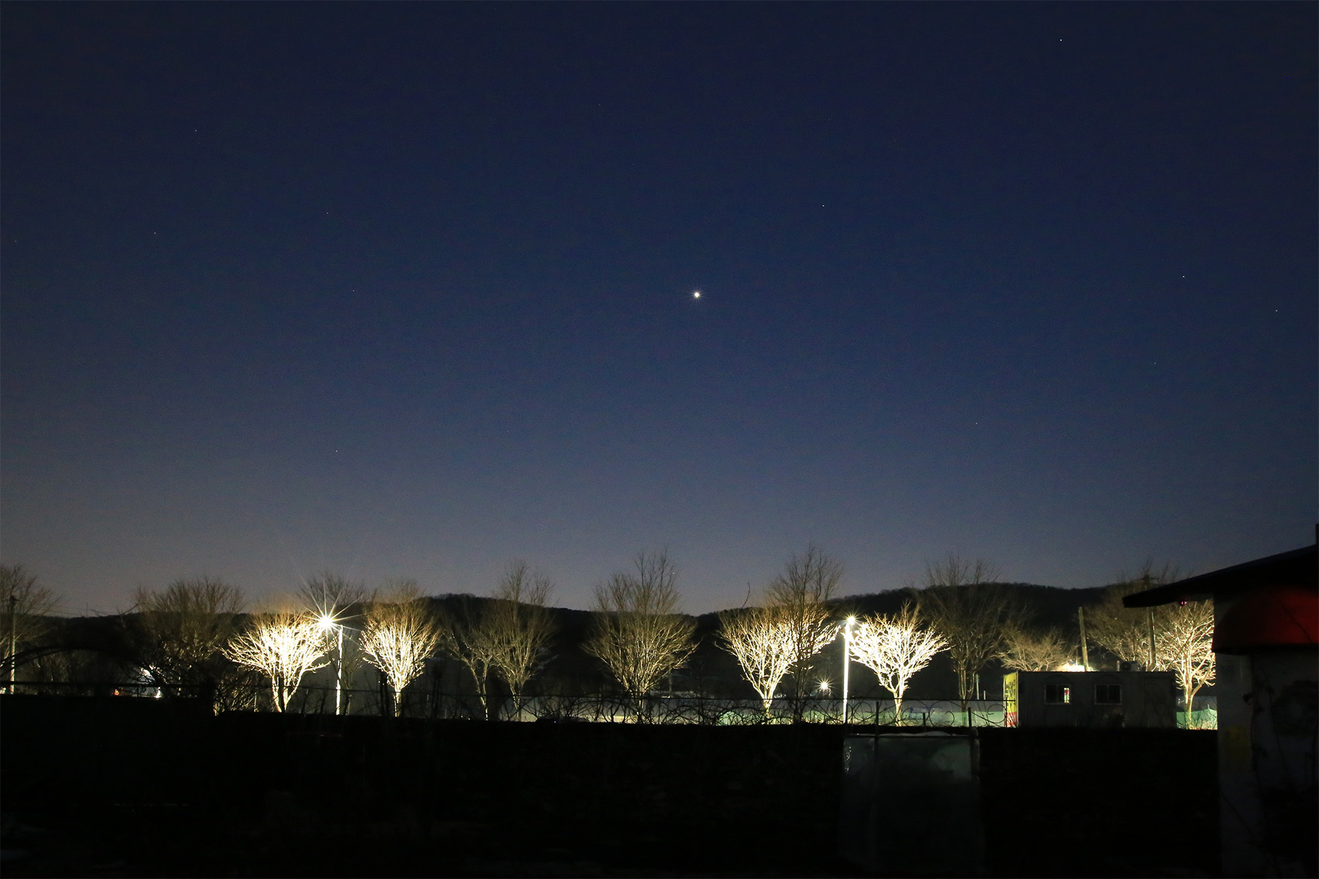 초저녁에 금성이 또렸하다. 별 사진을 촬영할 준비를 해 오지는 않았지만 타이머 기능을 활용하는 등 아쉬운 대로 촬영하였다.