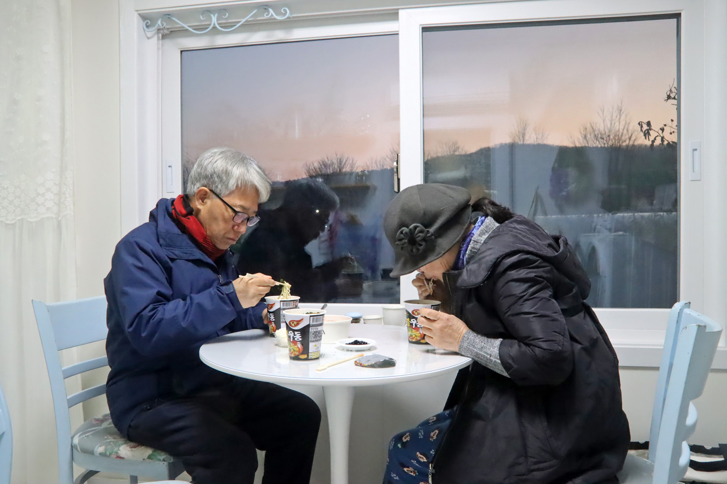 동계철수기간에는 동파방지를 위하여 모터펌프 가동을 중단하고, 수도배관을 모두 퇴수하였기에 미리 받아놓은 물을 사용해야 한다. 1박 2일 동안 사용할 물은 동계철수 전에 받아 놓았거나 서울집에서 PET병에 담아 왔다. 밥은 서울집에서 해왔으며 간단하게 컵라면을 먹기도 하였다.