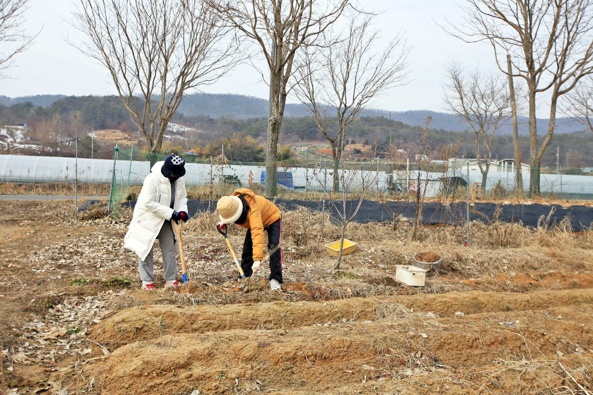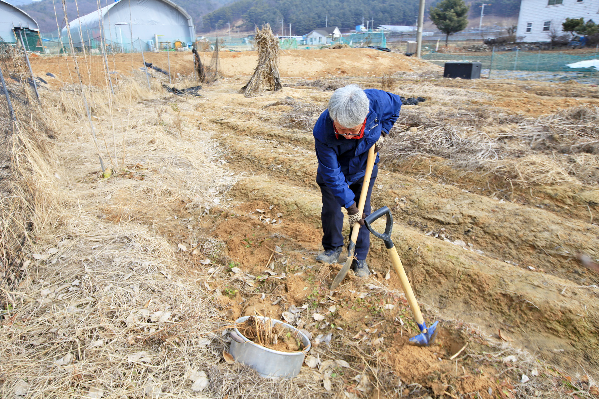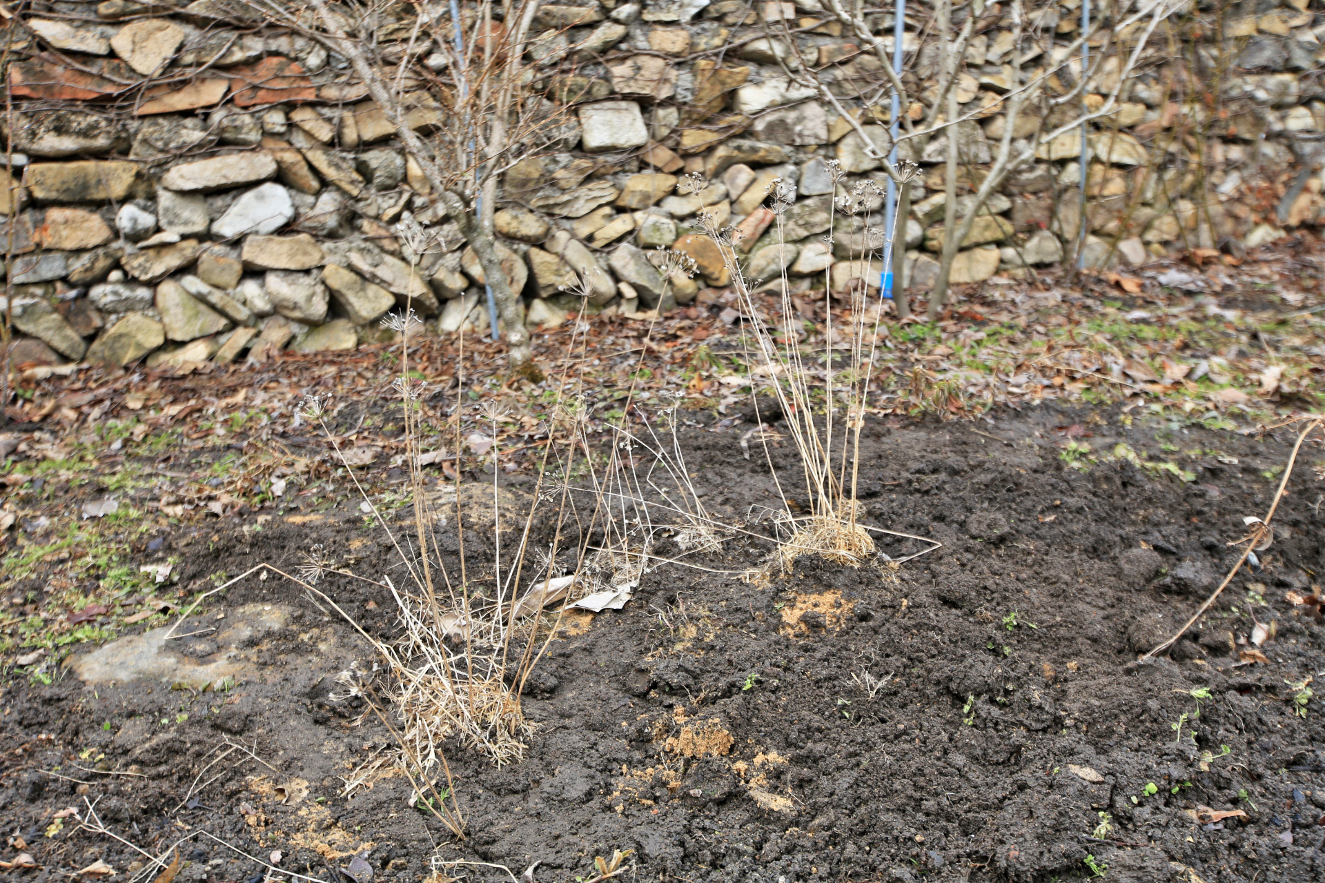 앞밭을 성토한다기에 겨울철이라서 이식할 때는 아니지만 아스파라가스와 부추를 꽃밭으로 옮겨 심었다.