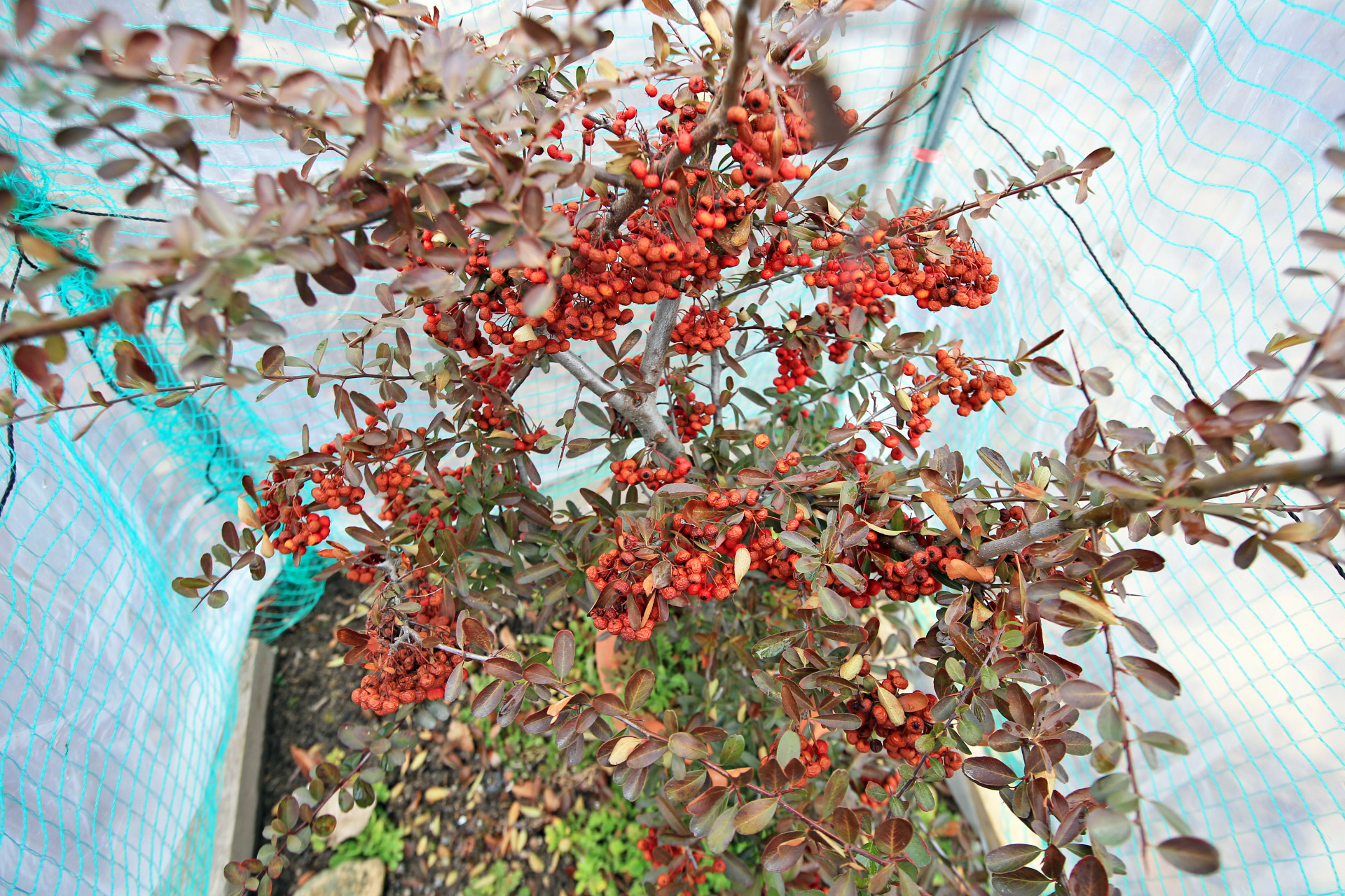 피라카타는 인천에서도 겨울을 나던데 훨씬 남쪽지방인 대전 성북동집에서는 동해를 입기에 화분에 옮겨서 들여 놓았었다. 올해는 노지에 비닐로 씌워주었다.