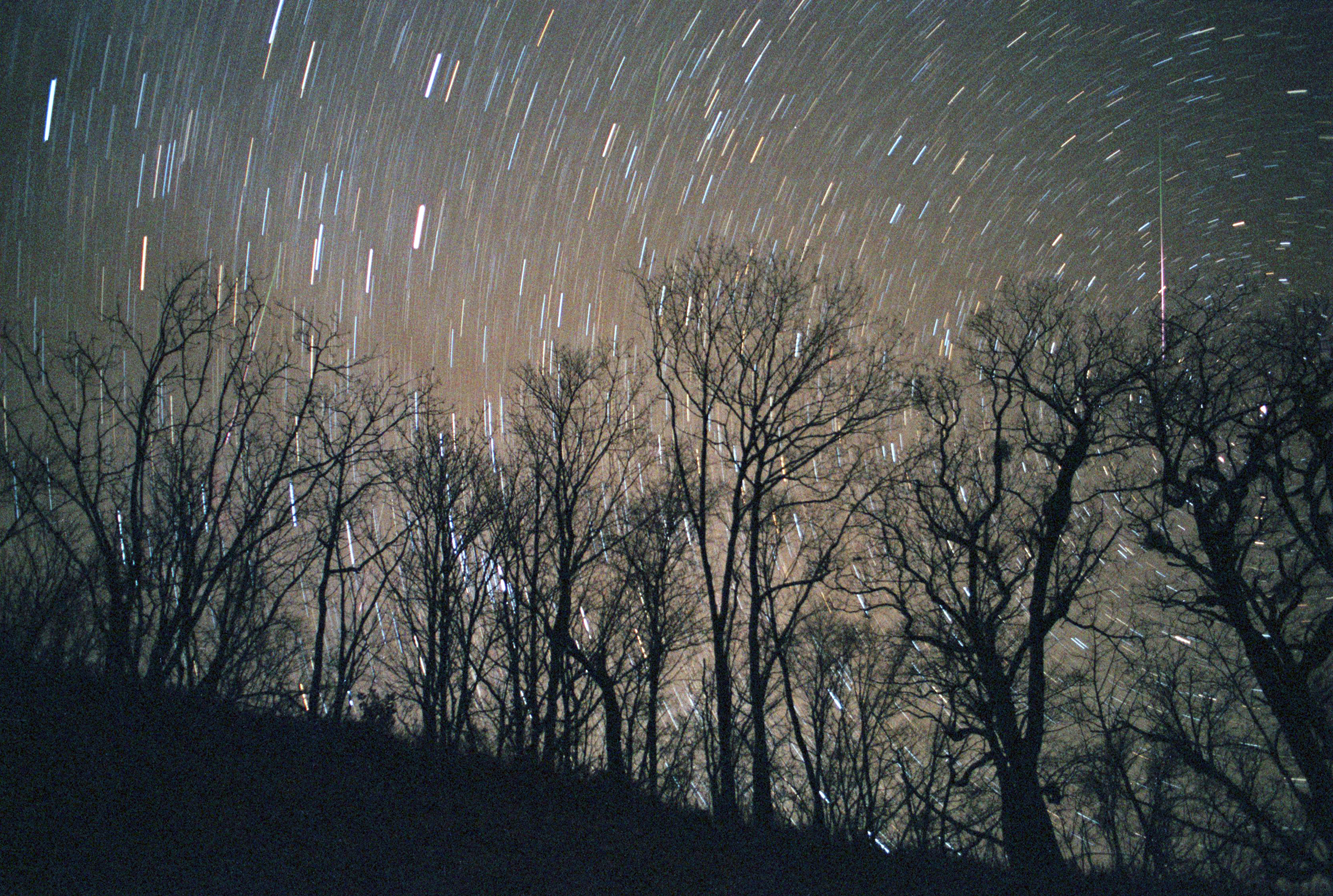 ● 유성은 언제 어느 위치에 나타날지 모르는 것이 특징이다. 어쩌다가 촬영하는 화각 안에서 상당히 밝게 보인 유성도 노출시간이 긴 사진에서는 보이지 않기도 한다. 요즈음(디지털카메라)에도 유성이 사진 귀퉁이에 조금 찍히기만 해도 대단하다는 생각이 든다. 24년 전(20011119)의 사자자리 유성우는 정말 대단했다.