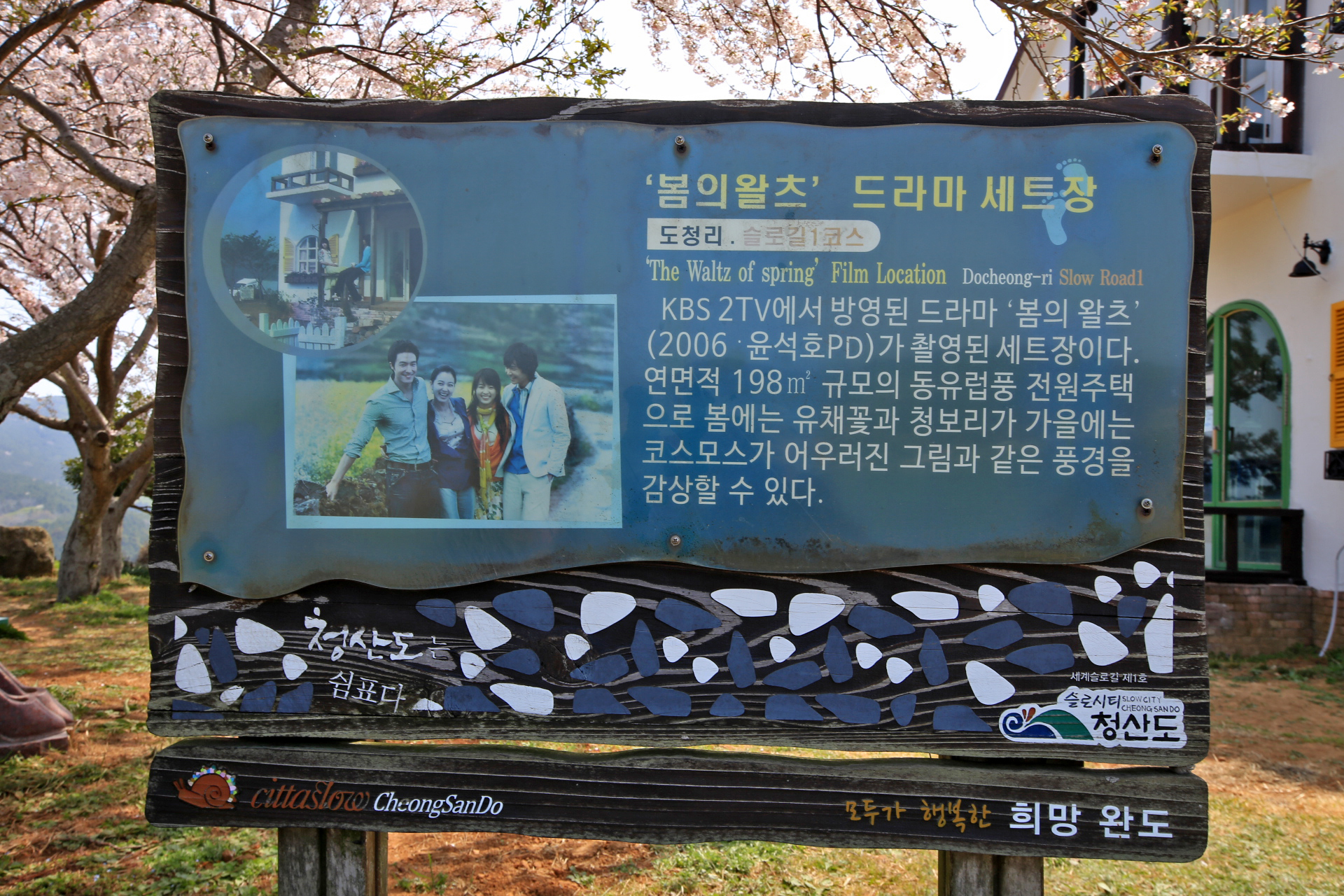 서편제 촬영지에서 유채꽃과 벚꽃이 화사하게 핀 능선 길을 따라가면 봄의 왈츠 촬영지가 나온다. 전에 왔을 때에도 다녀간 곳이기는 하지만 실내를 아기자기하게 꾸며놓은 모습이 아내가 좋아하는 스타일이다. '봄의 왈츠' 드라마를 보지는 못하였다.