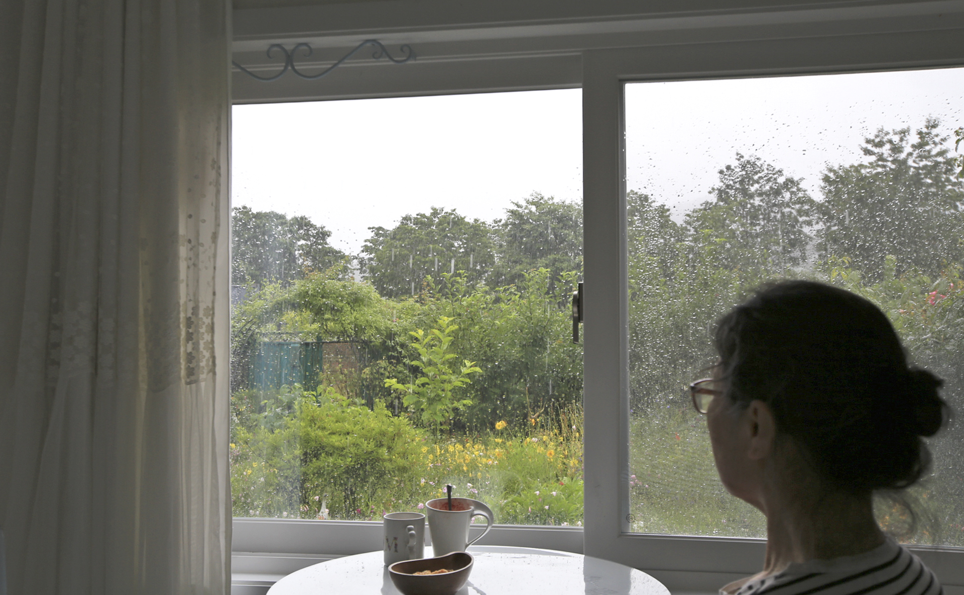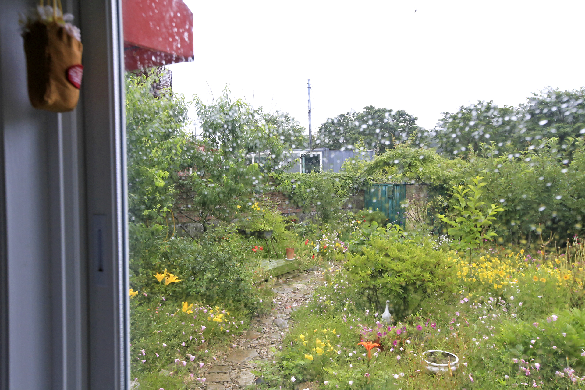 아파트인 서울집에서 비가 내리는지 확인하려면 빗소리가 들리지 않으니 창문 밖으로 지나가는 사람이 우산을 썼는지를 살핀다. 그렇지만 금속지붕인 성북동집에서는 빗소리가 실제보다 크게 들린다. 잠자리에서도 빗소리가 잘 들린다. 비가 내리는 정도에 따라서 소리가 달리 들리니 굳이 밖을 내다보고 확인할 필요가 없다. 비가 얼마나 내렸는지는 집앞 성북천에 나가보면 알 수 있다.