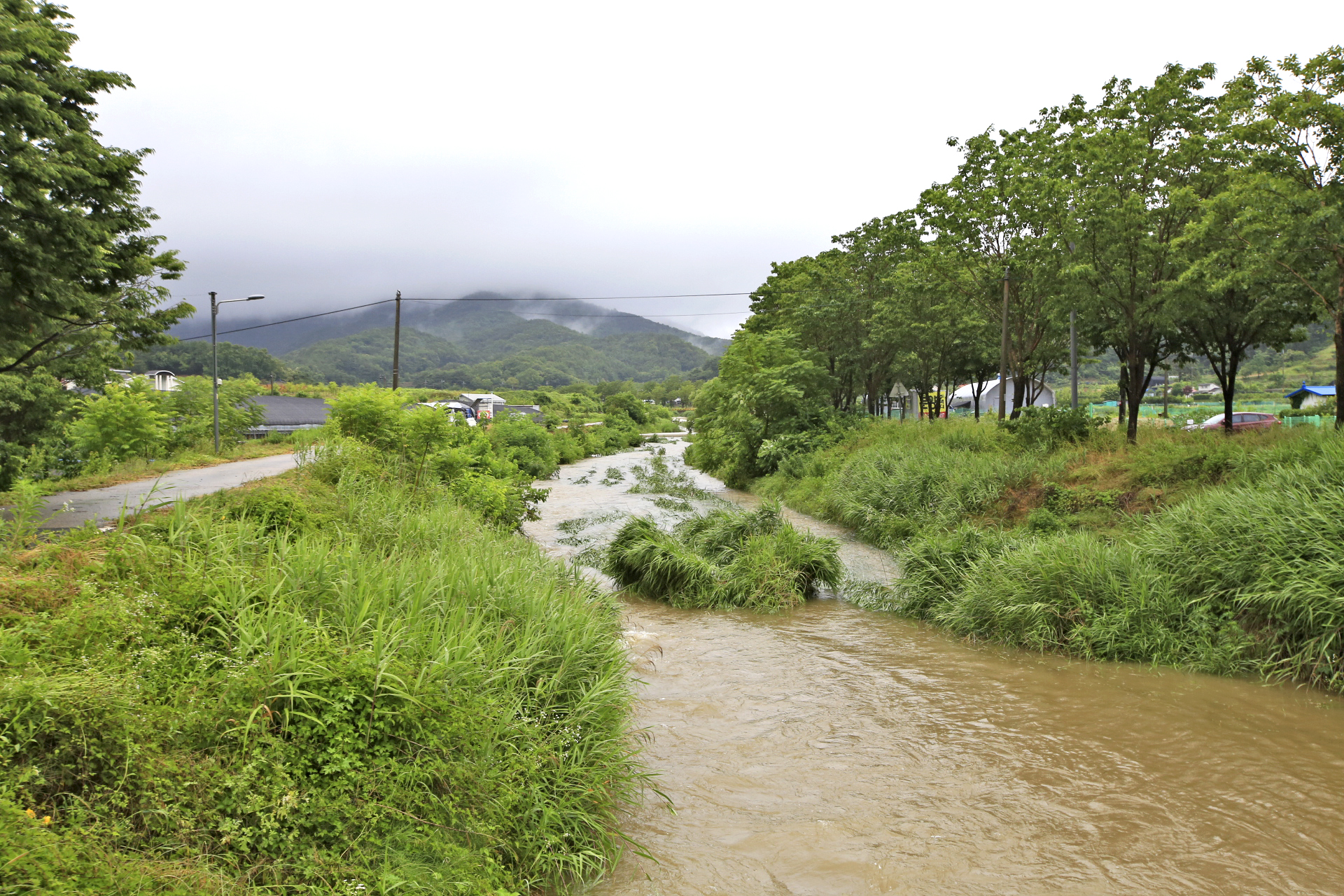 그저께(0619) 수해복구 한 진입로는 어제 내린 비에 별다른 문제없이 버텨냈다.