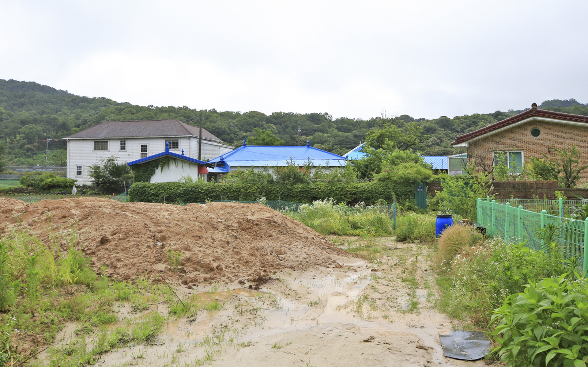 진입로의 수해복구 작업을 마쳤으나 아직은 흙이 다져진 상태가 아니라서 당분간은 다른 곳에 주차해야 할 듯하다.