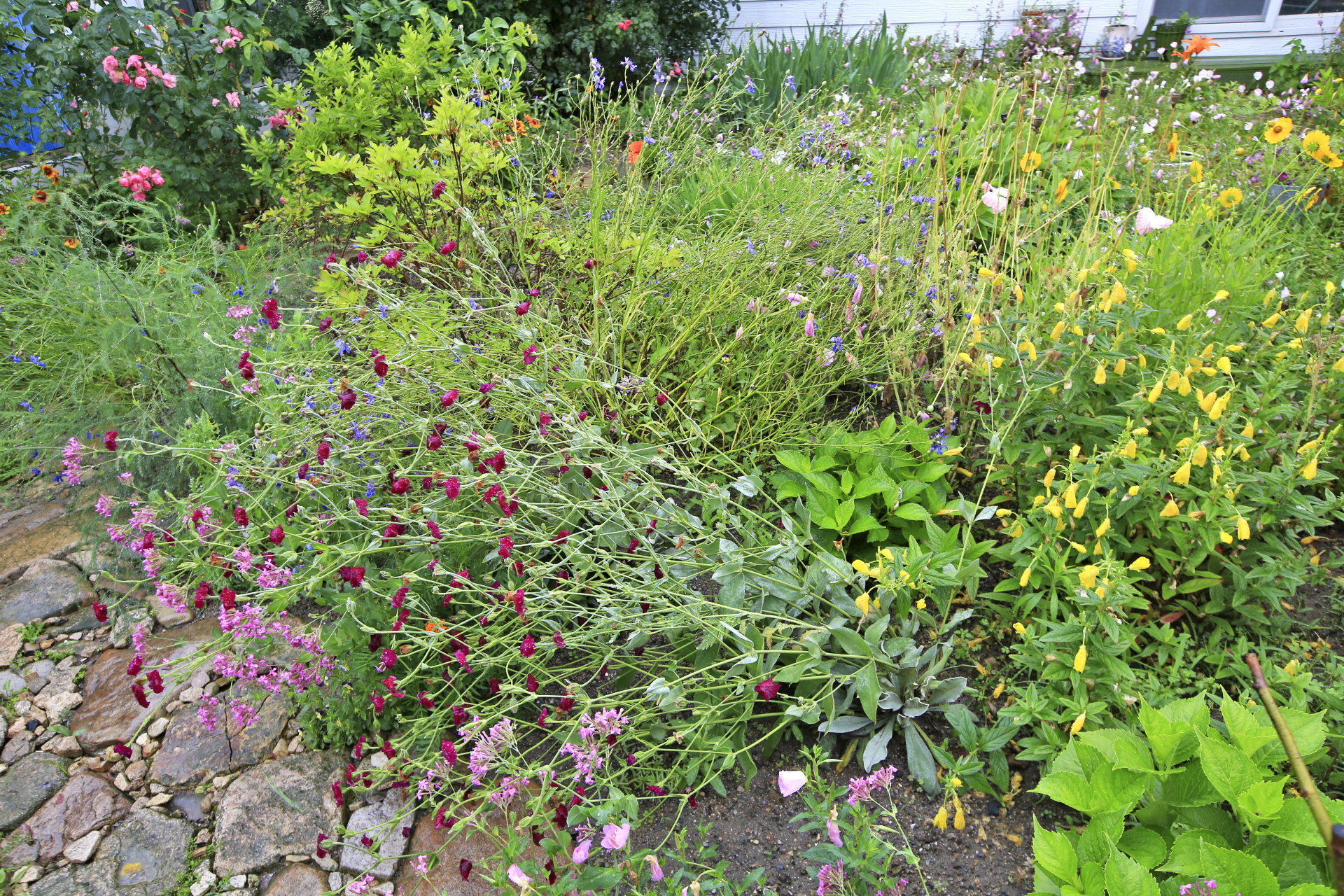 우단동자와 끈끈이대나물과 수레국화도 쓰러지고....