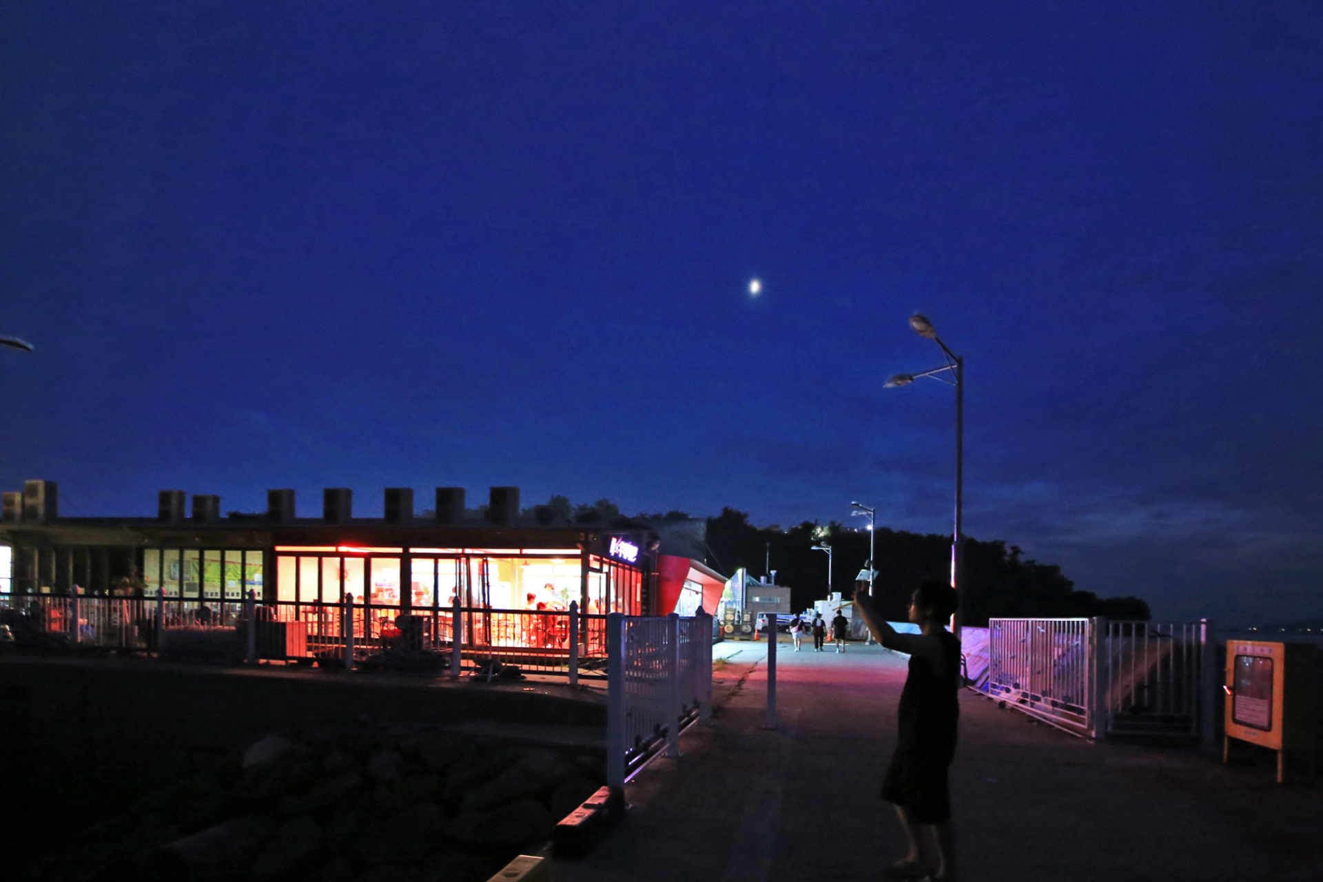 저녁을 먹고 나왔더니 많이 어두워졌다.