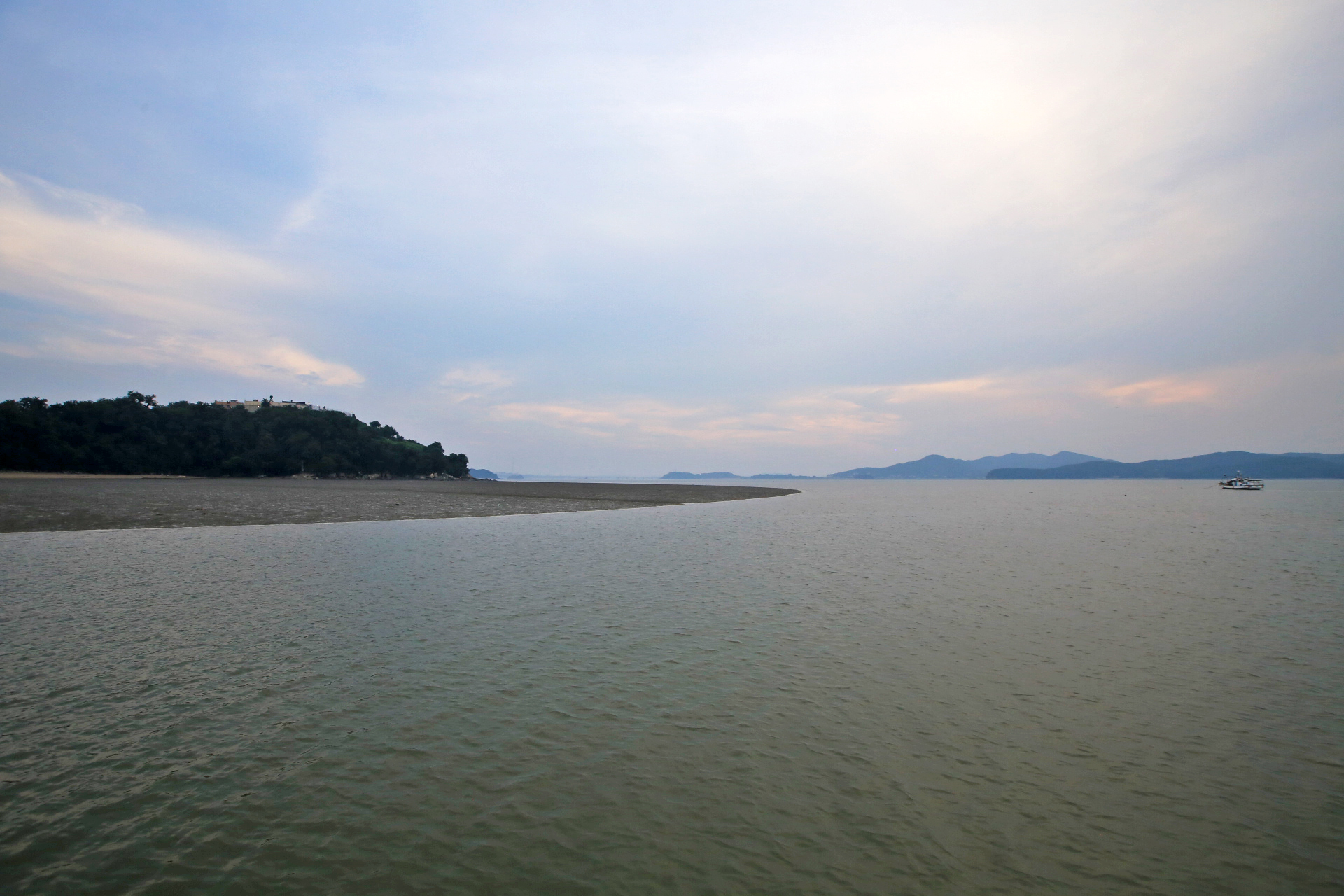 멀리 흐릿하게 보이는 곳은 강화도의 마니산(중앙 좌측 높은 산)과 길상산(우측)이다.