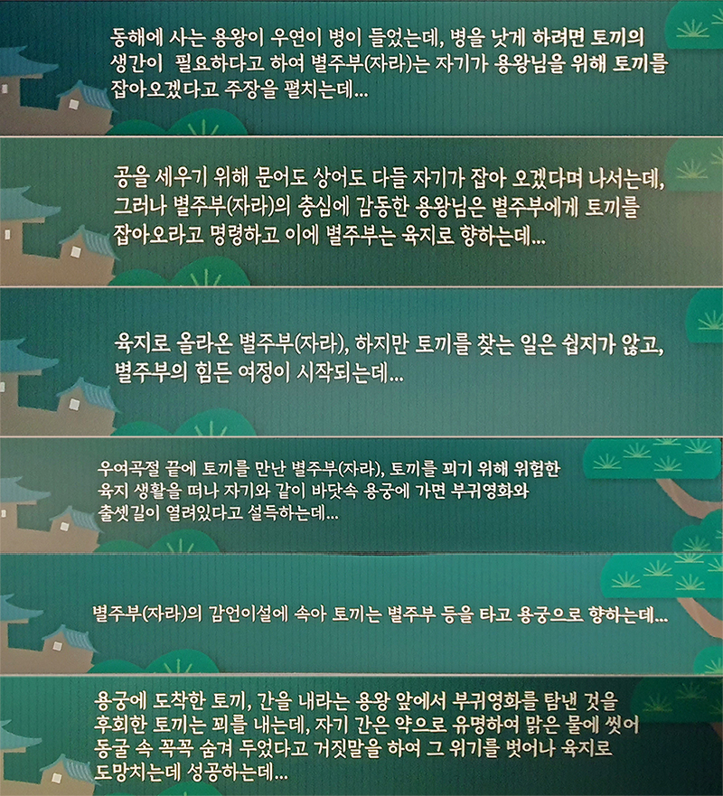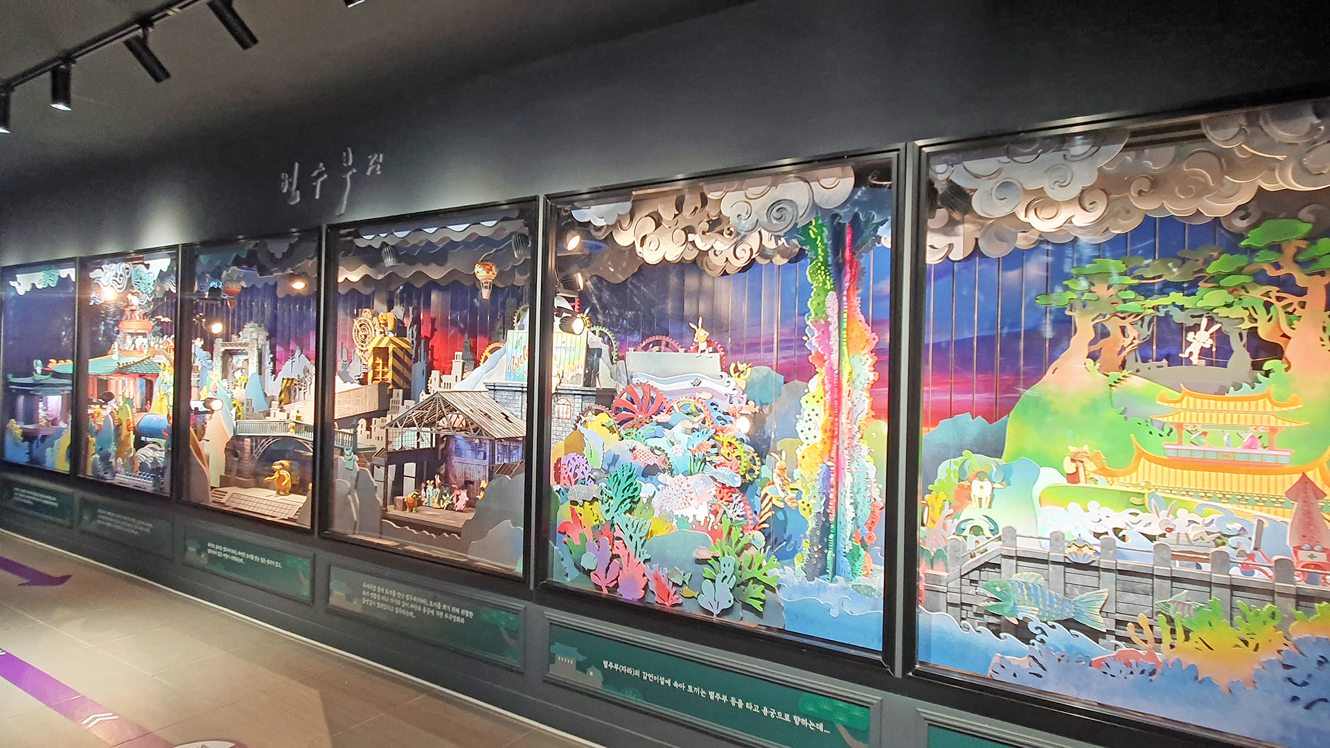 역사 이름이 '용궁역'이라서 인지 역사 내부의 '별주부전' 이야기가 있다. 오토마타(automata)??