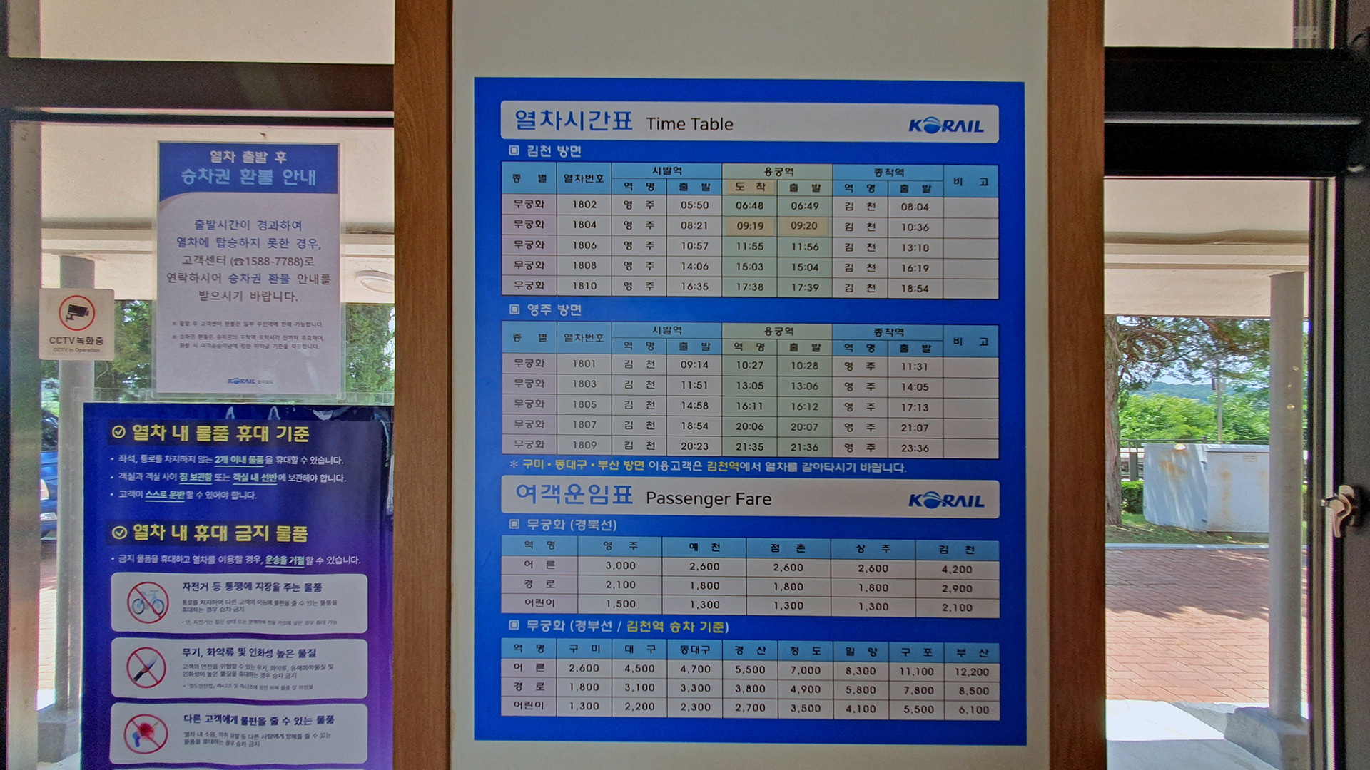 김천방면 및 영주방면으로 각각 하루 5회 무궁화호 열차를 이용할 수 있다.