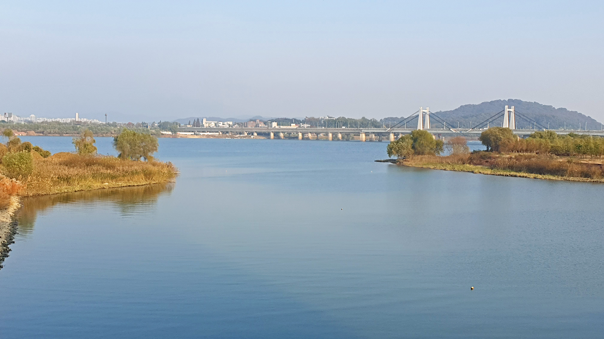 10여일 운전하지 않고 집에서만 지내다가 차를 움직여 줄 겸 한강변의 단풍이 물든 상태도 확인할 겸 아라한강갑문에 나왔다. 오는 길에 보니 강서한강공원과 행주산성 및 전호산 등 아라한강갑문에서 보이는 풍경은 단풍이 들기 이전의 상태이다.