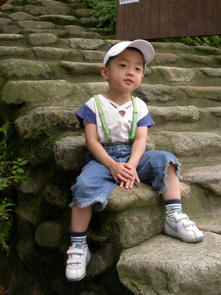17년 전에 손자도 아들과 같은 38개월 차에 같은 계단에서 촬영하였다. 전 해 가을(20071107)에 전등사에 갔을 때 같은 계단에서 촬영하며 기왕이면 아들과 같은 38개월 차에 촬영하기로 했던 것이다. 웃옷은 삼촌이 입었던 옷이고, 바지와 신발과 모자는 비슷한 것으로 했다. 사진을 가지고 가서 똑같은 돌에 앉혀서 촬영하려고 하였으나 돌계단 중간에 계단참이 생기고 출입문이 생기며 돌계단이 변형되어 찾지 못하였었다.