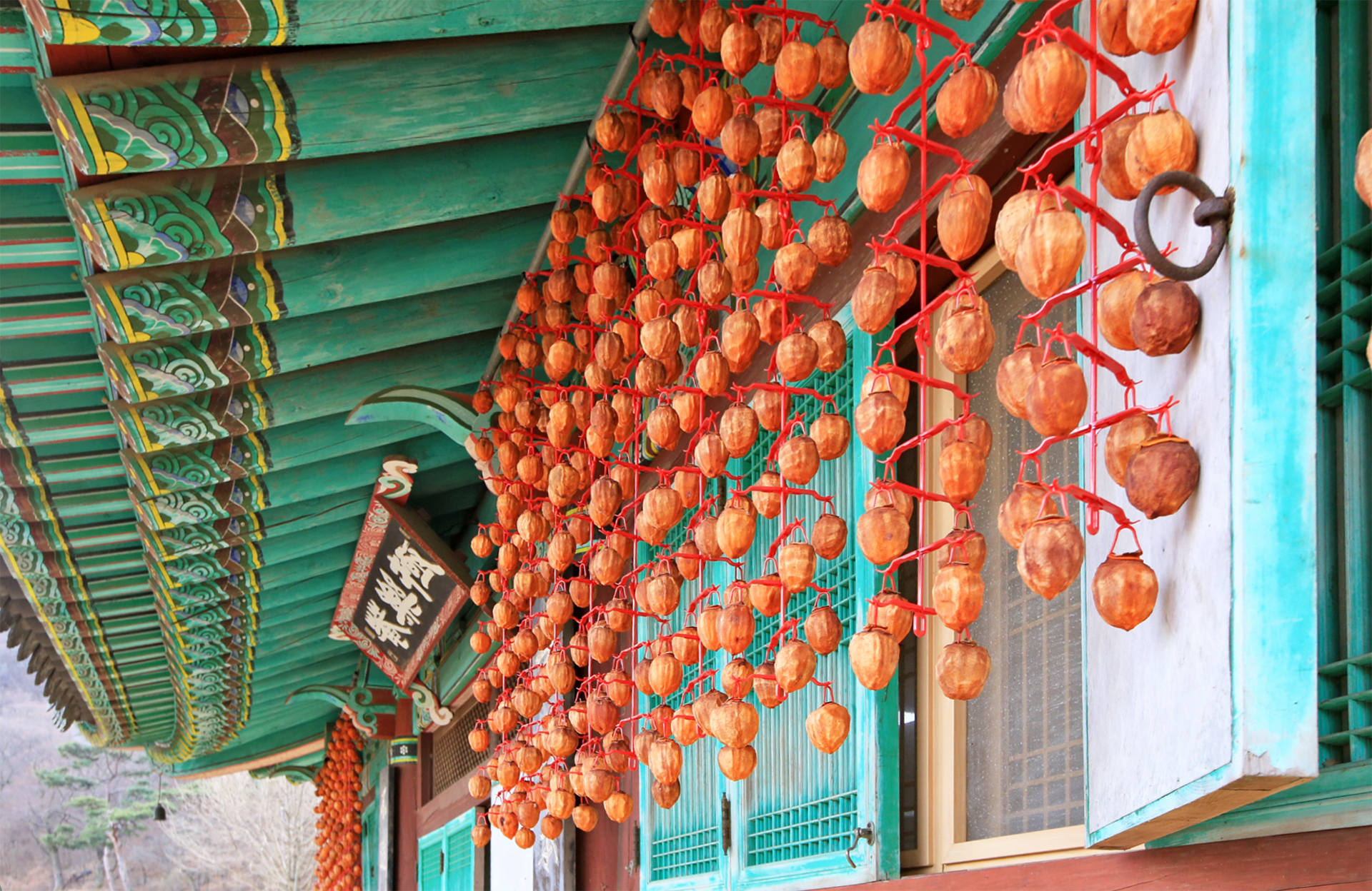 올해는 감이 풍년인지 곶감을 매달아 놓은 곳이 몇 군데 있다.