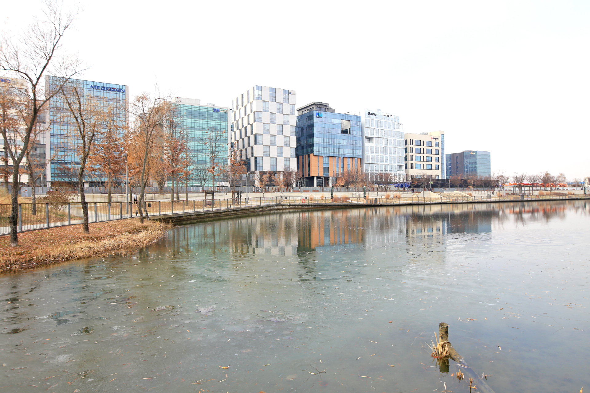 호수가 좀 얼었다.