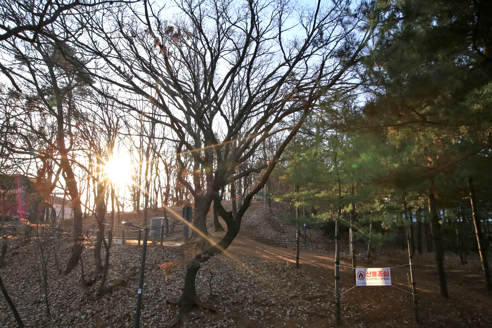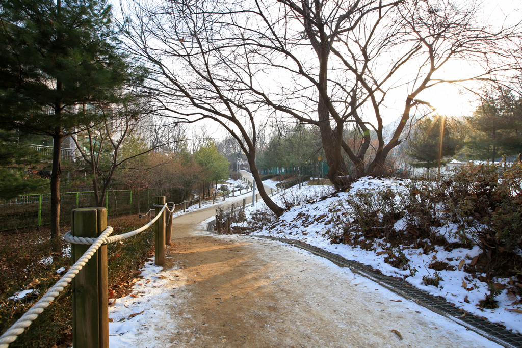 내일은 낮 시간이 가장 짧다는 동지인데 출근해야하므로 귀룽나무는 사라졌지만 그 자리에서 사진을 촬영하기 위하여 아침에 다녀왔다. 일출 시각(07:44)에는 숲 속이라 해가 보이지 않으므로 90분 쯤 지나서 출발하였다. 어제는 날이 푹했는데(최고기온 11.1℃) 오늘은 바람이 차갑다.